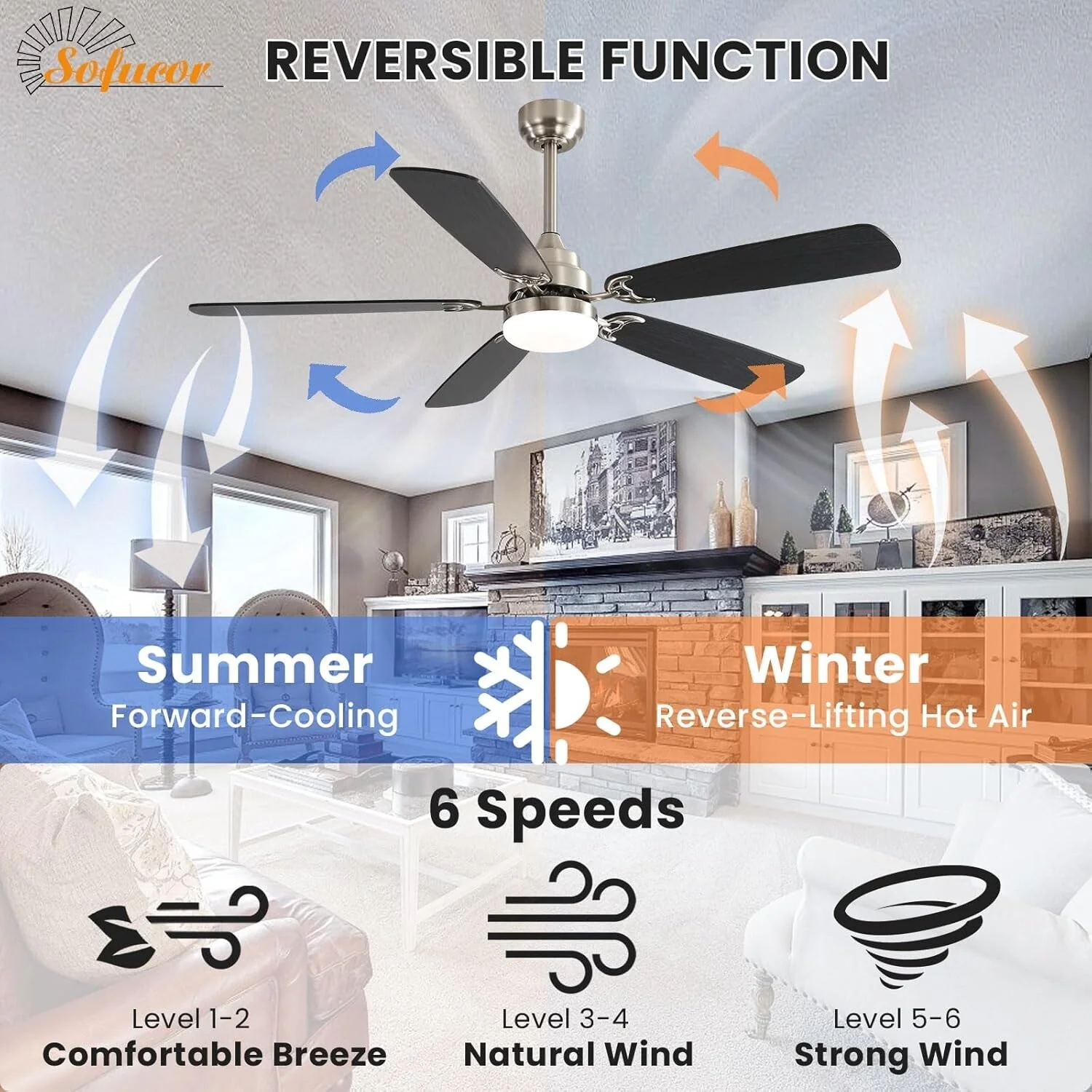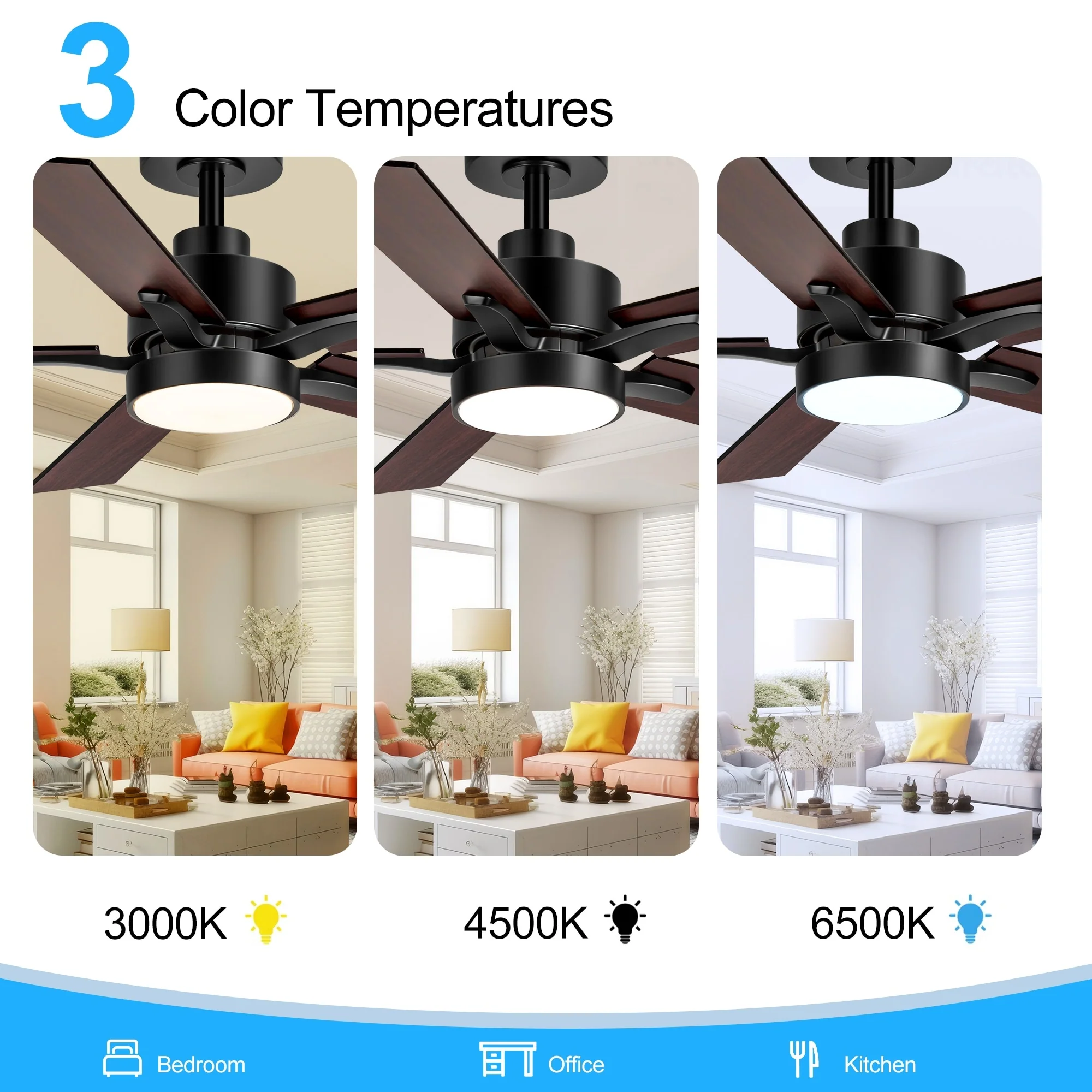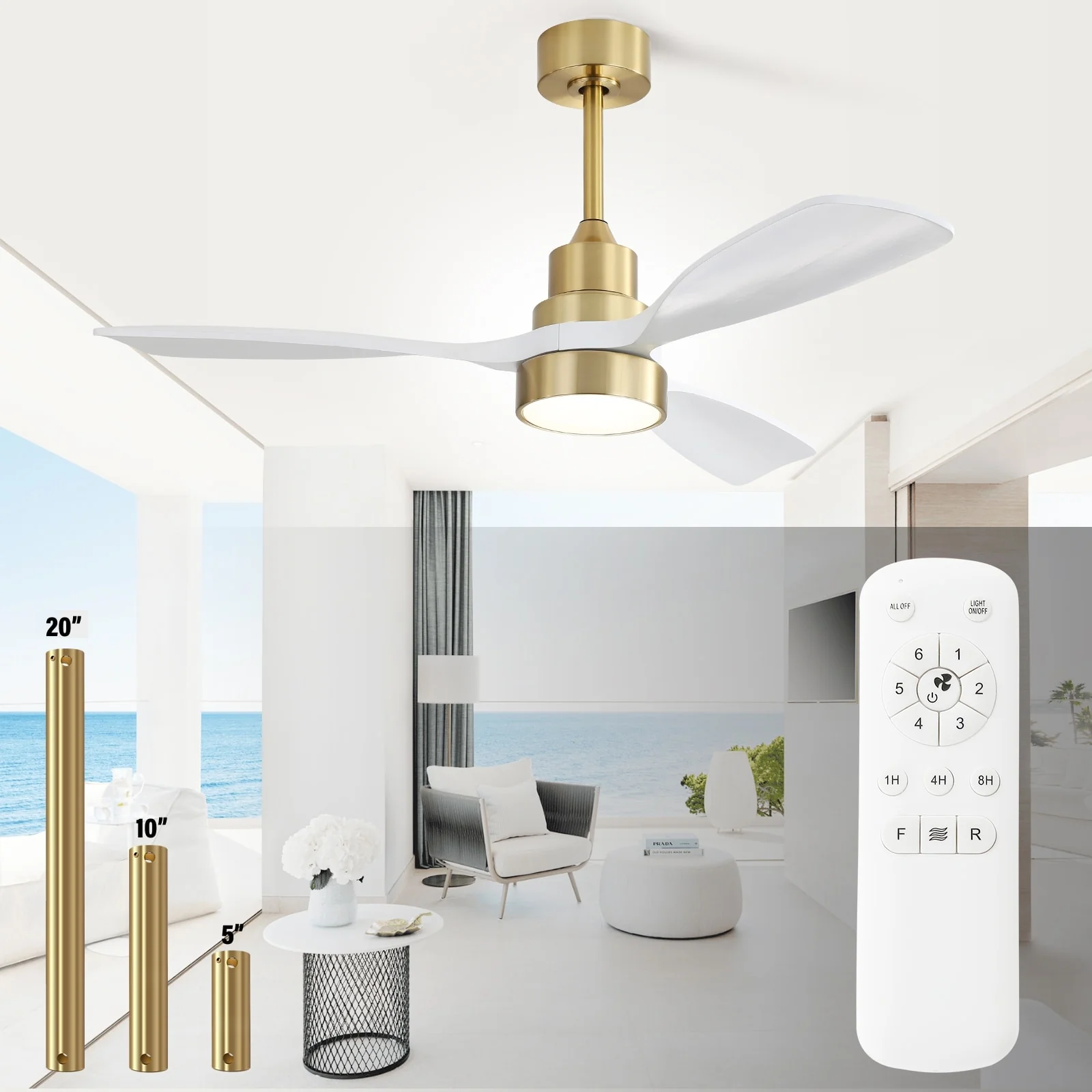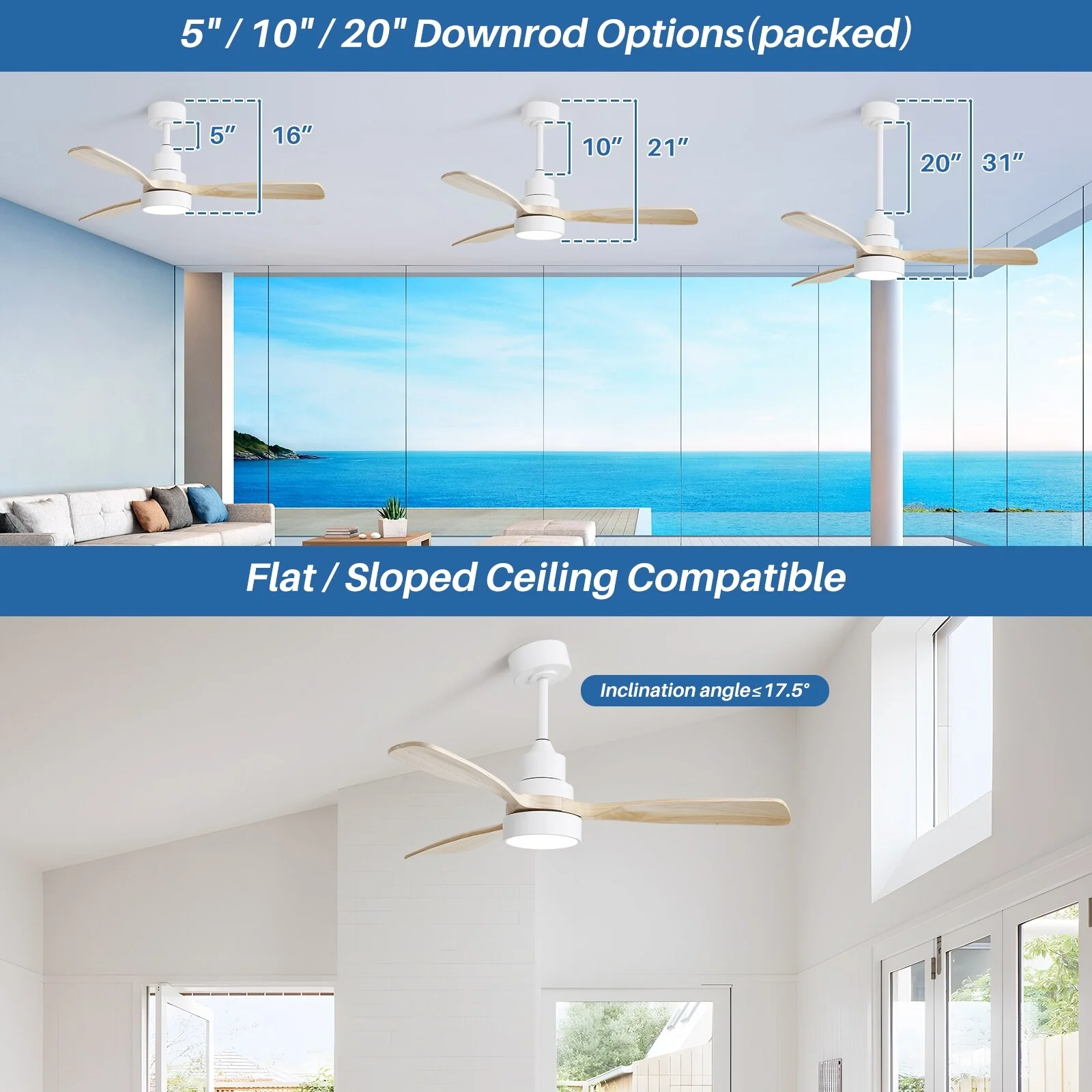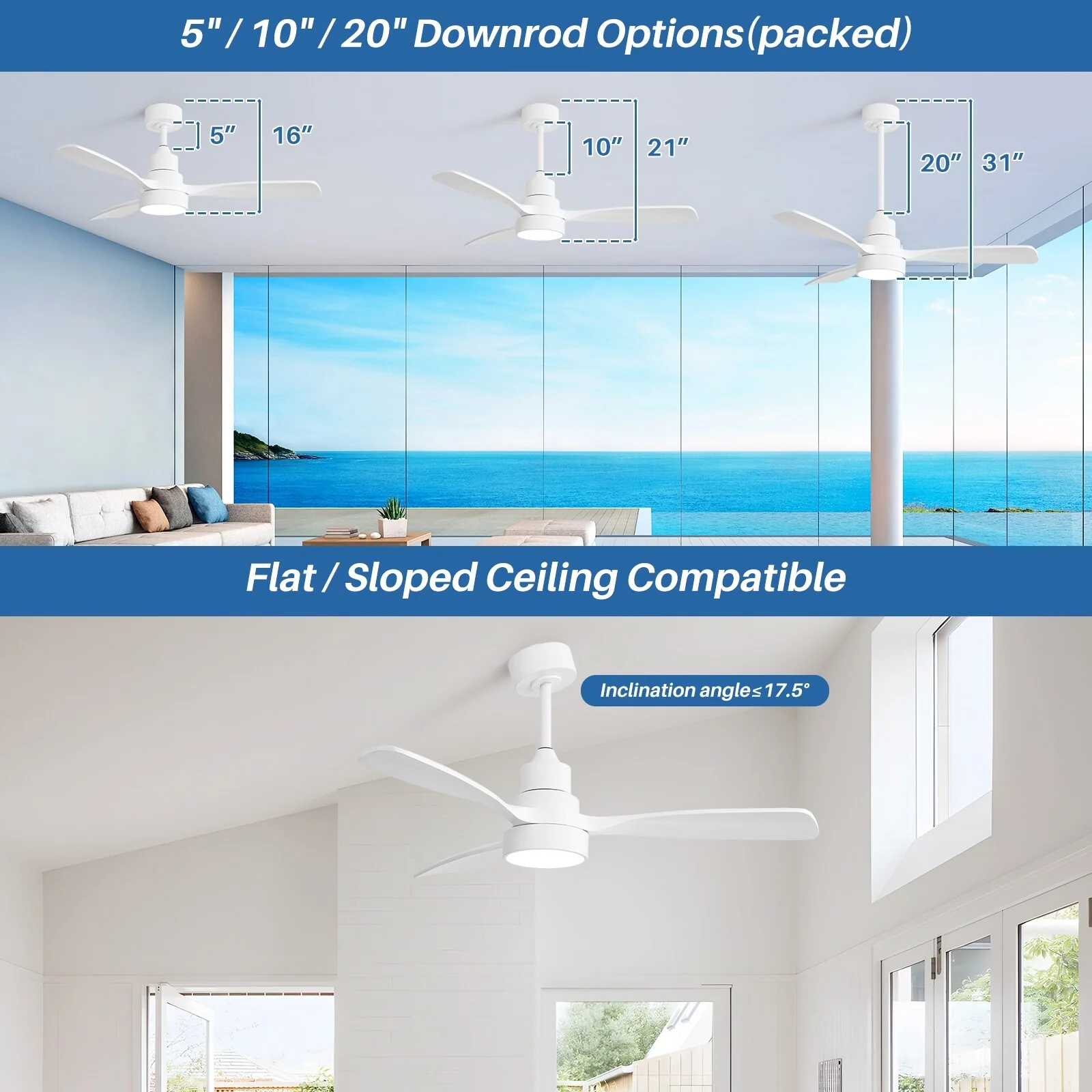 48" and 52" Integrated LED Ceiling Fan with Light and Remote, Reversible DC Motor