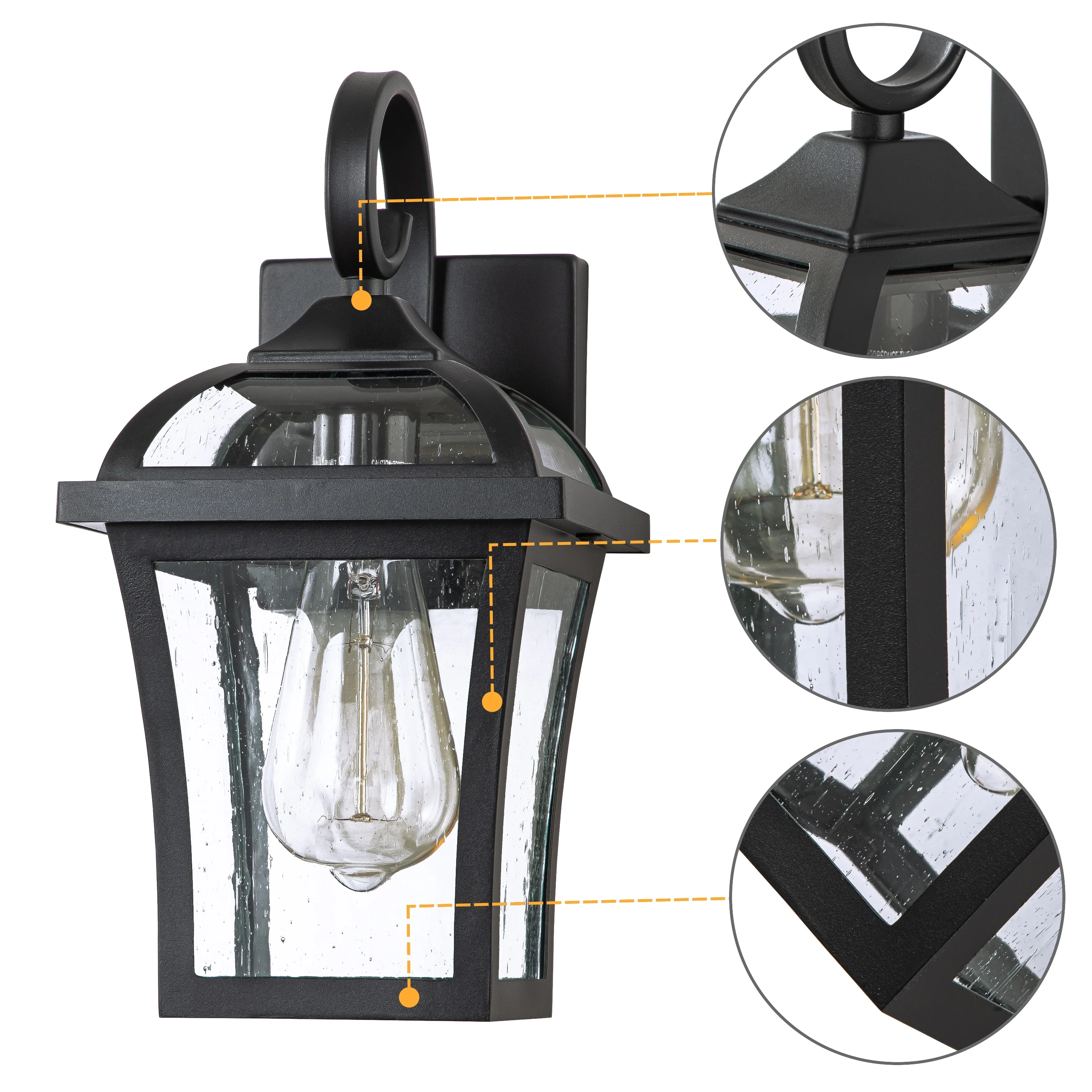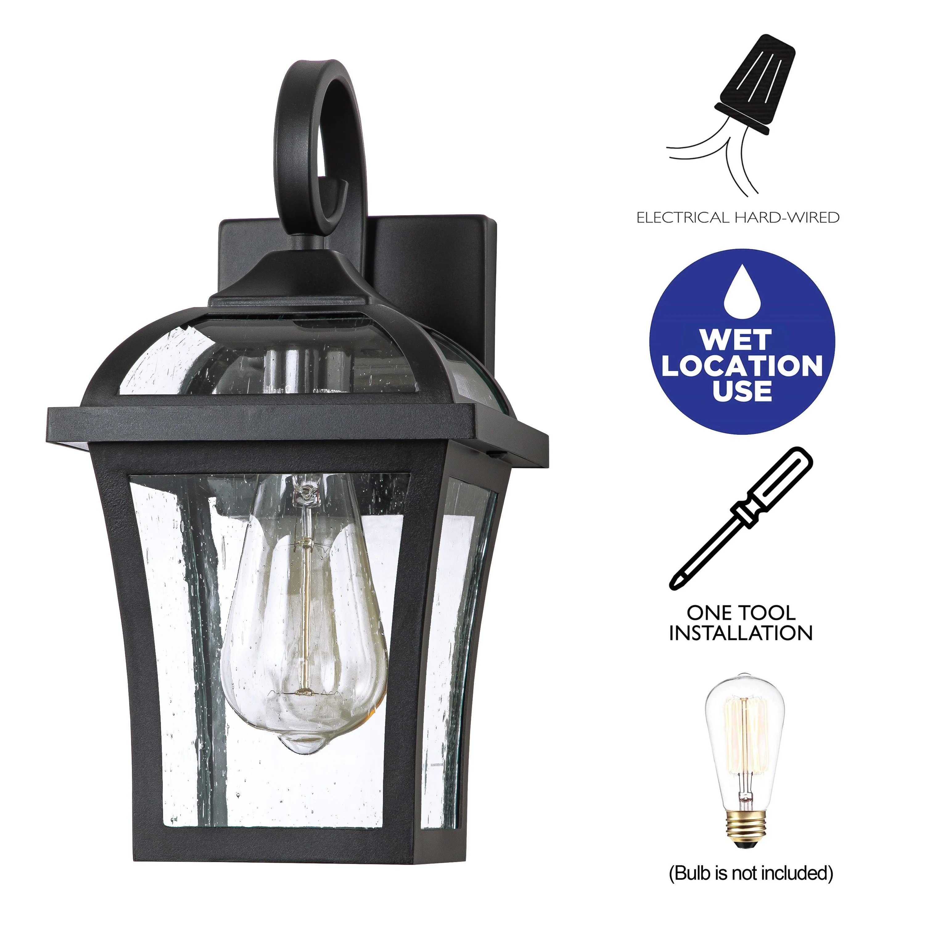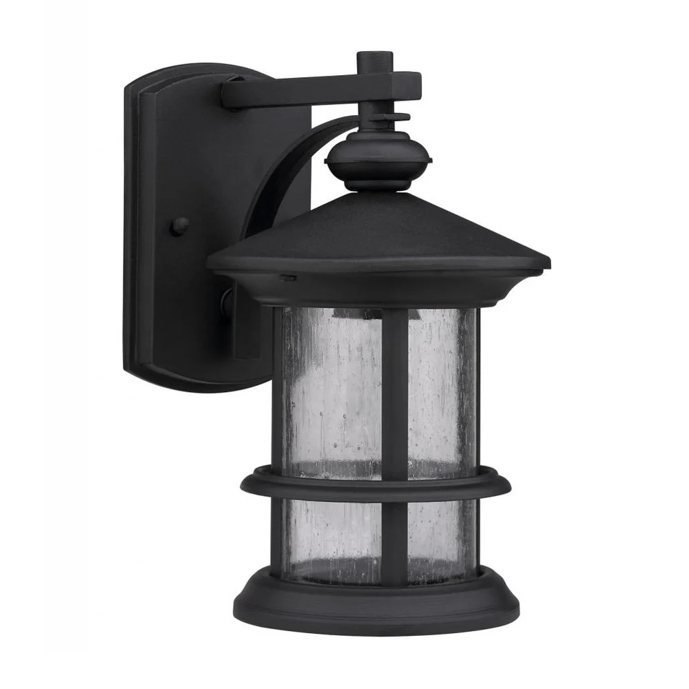 Transitional 1-light Black/Clear Seeded Glass Outdoor Wall Fixture