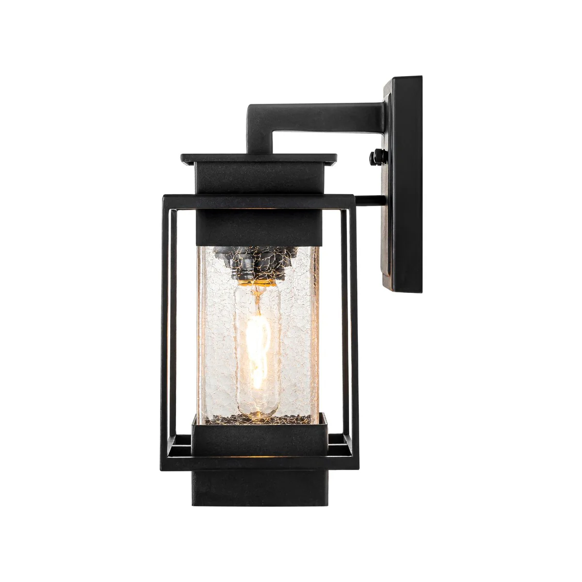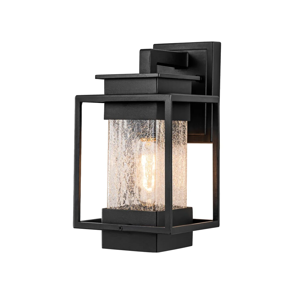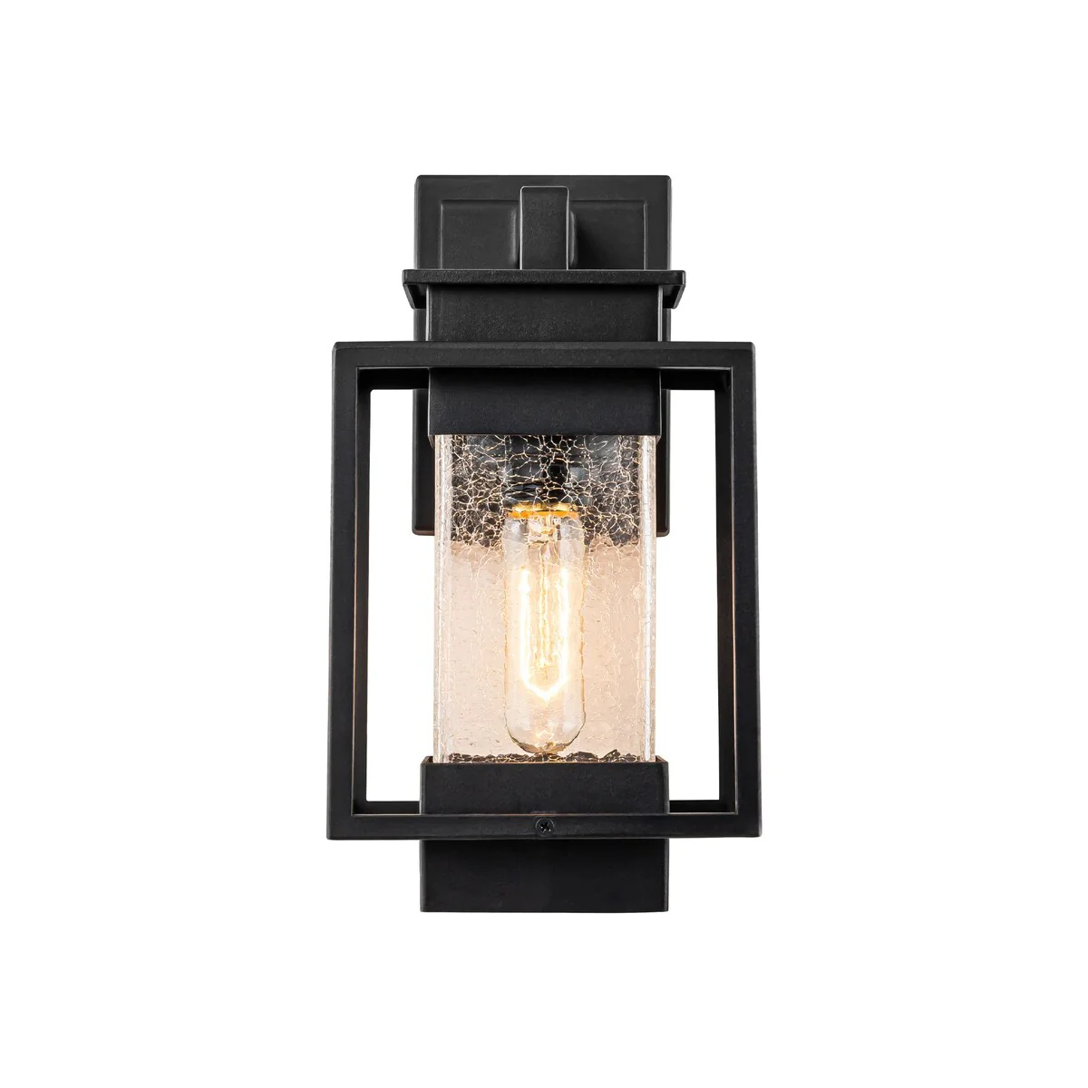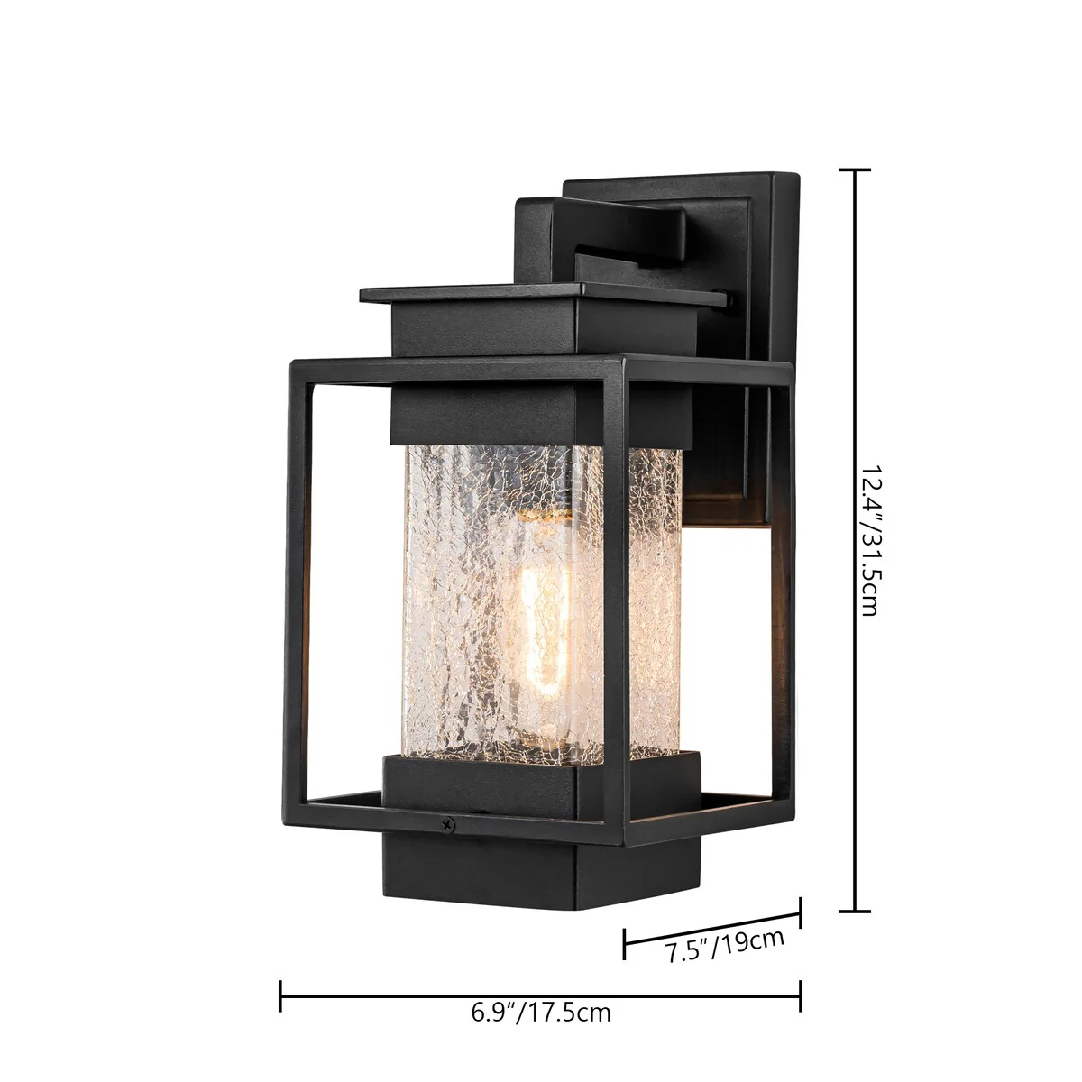 1-Light Satin Black Aluminum Lantern Waterproof Outdoor Wall Sconce Light - 6.9 in. W x 12.4 in. H x 7.5 in. D