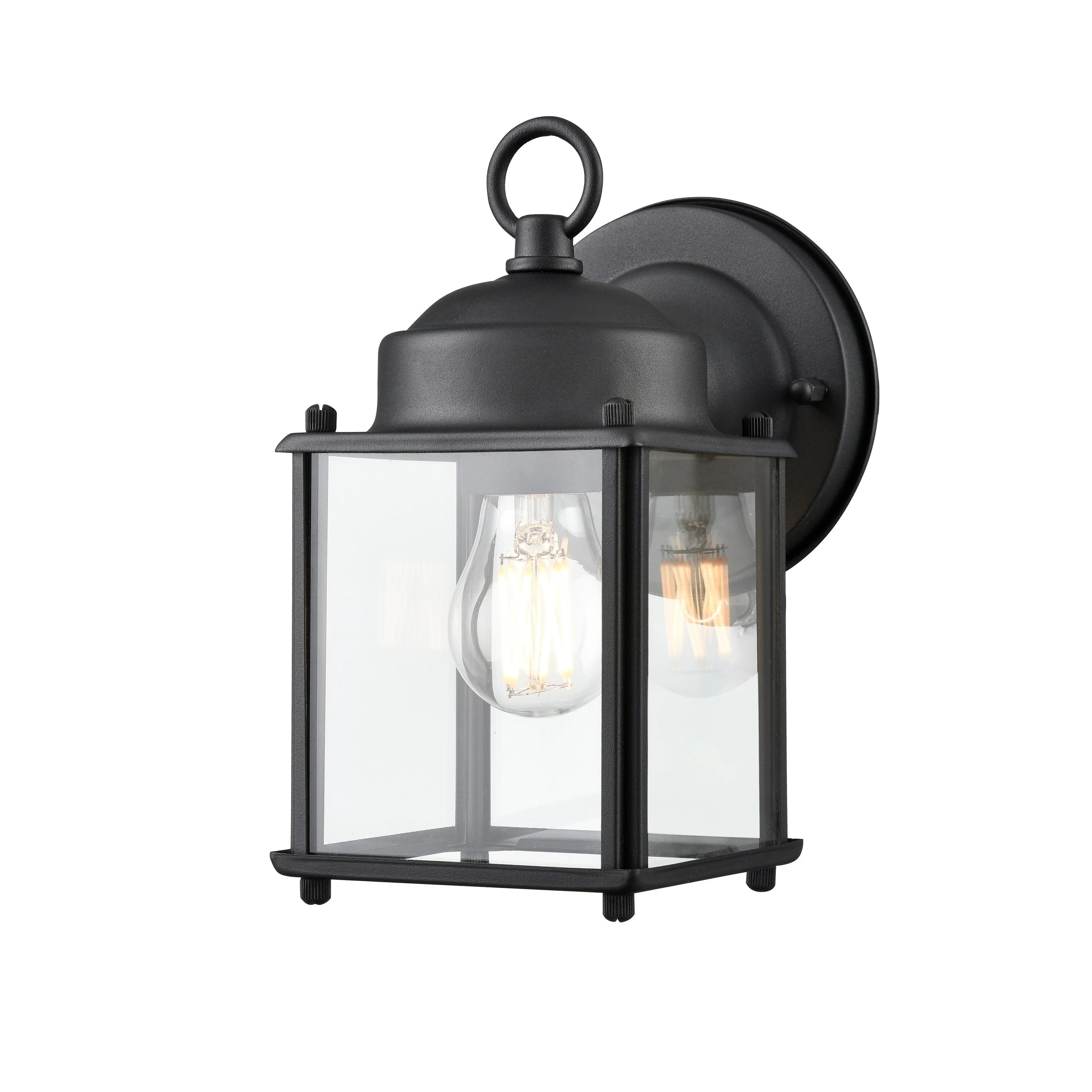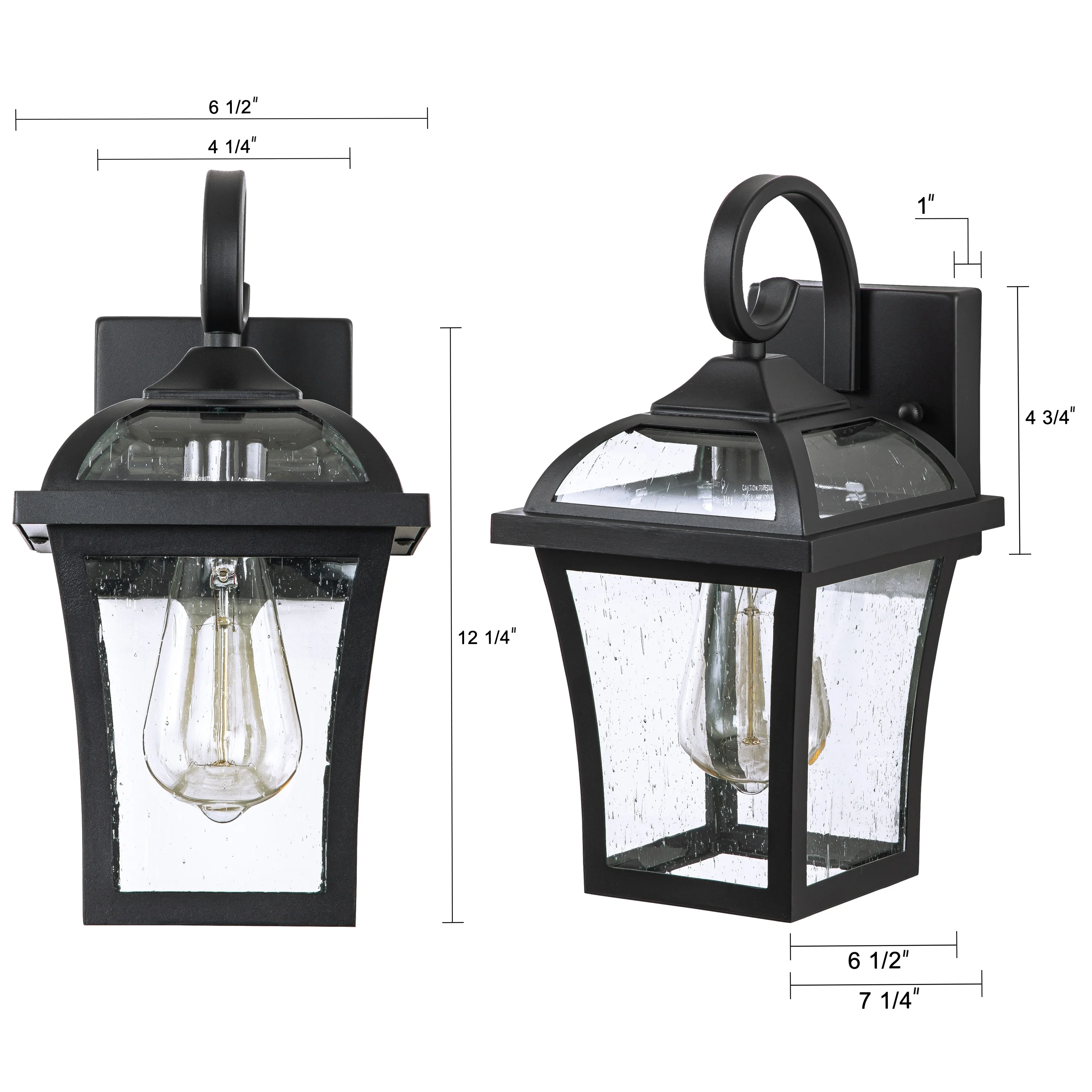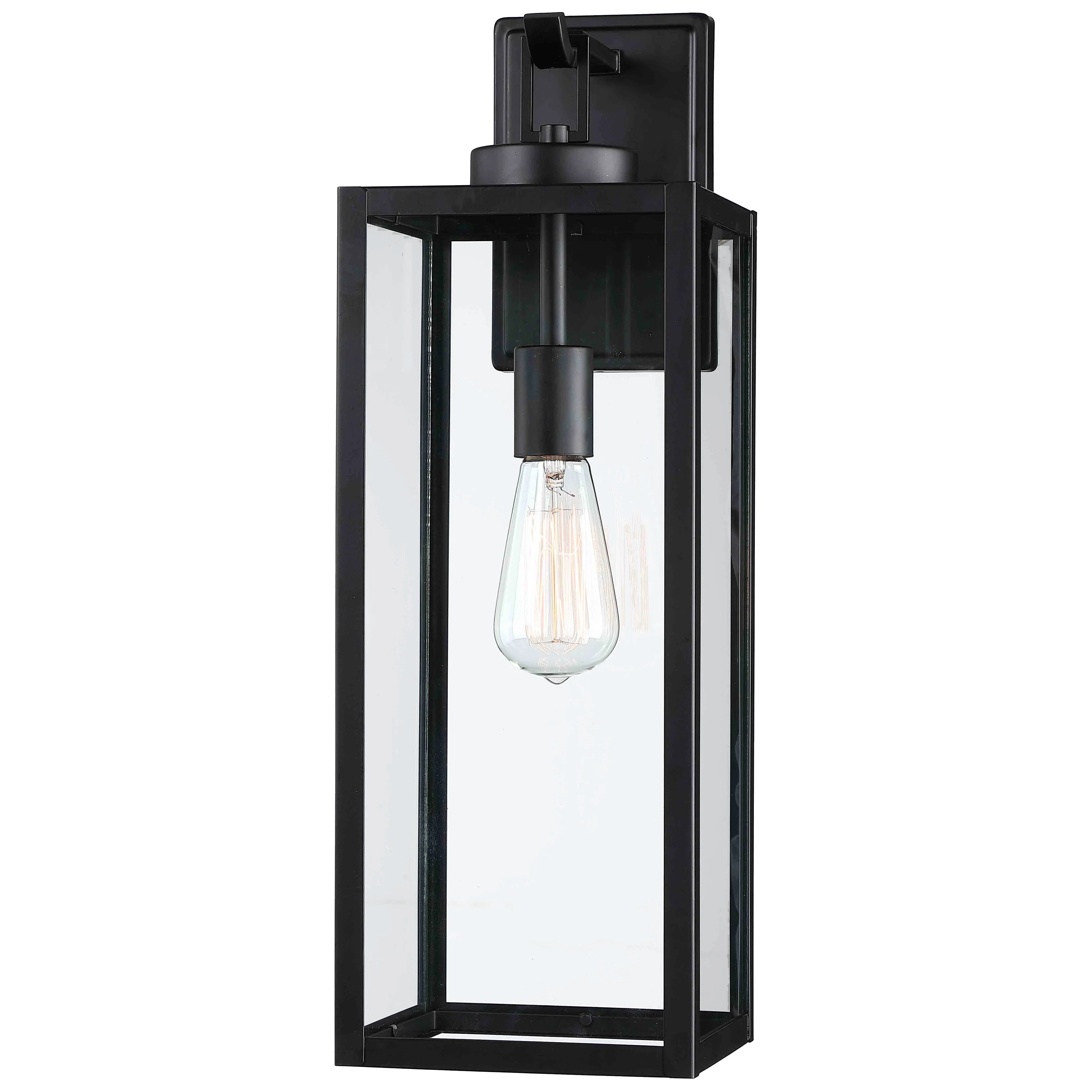 1-Light Satin Black Aluminum Lantern Waterproof Outdoor Wall Sconce Light - 6.9 in. W x 12.4 in. H x 7.5 in. D
