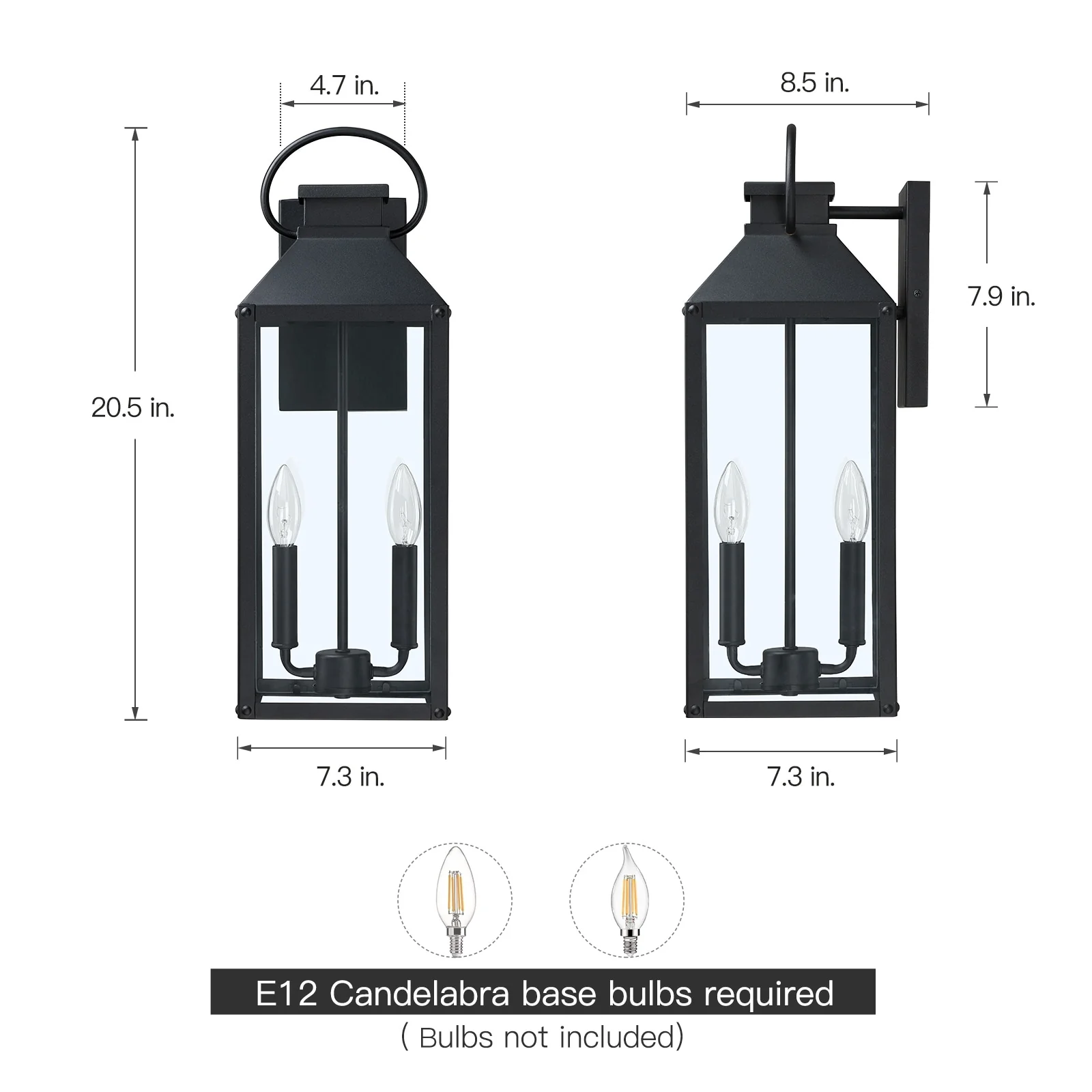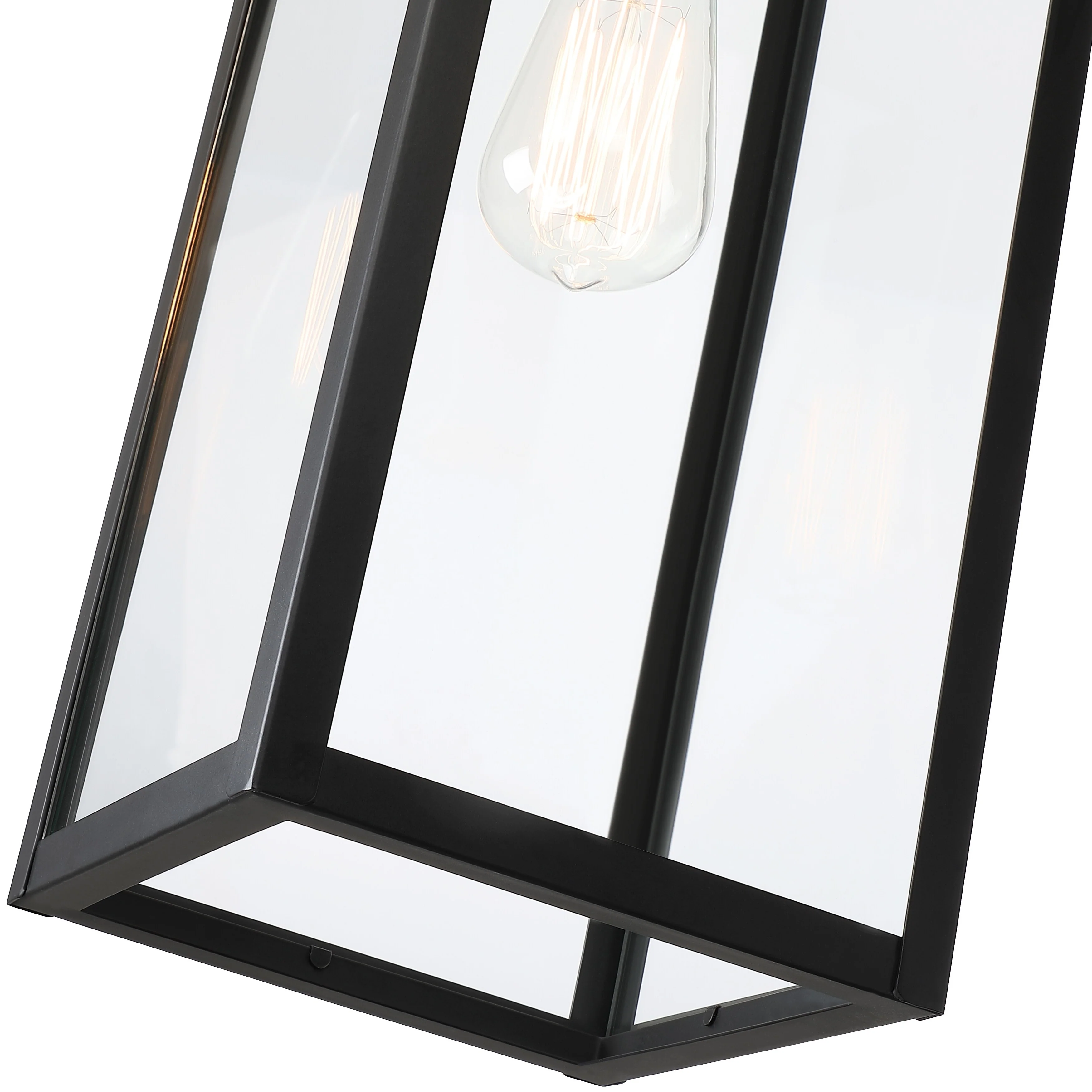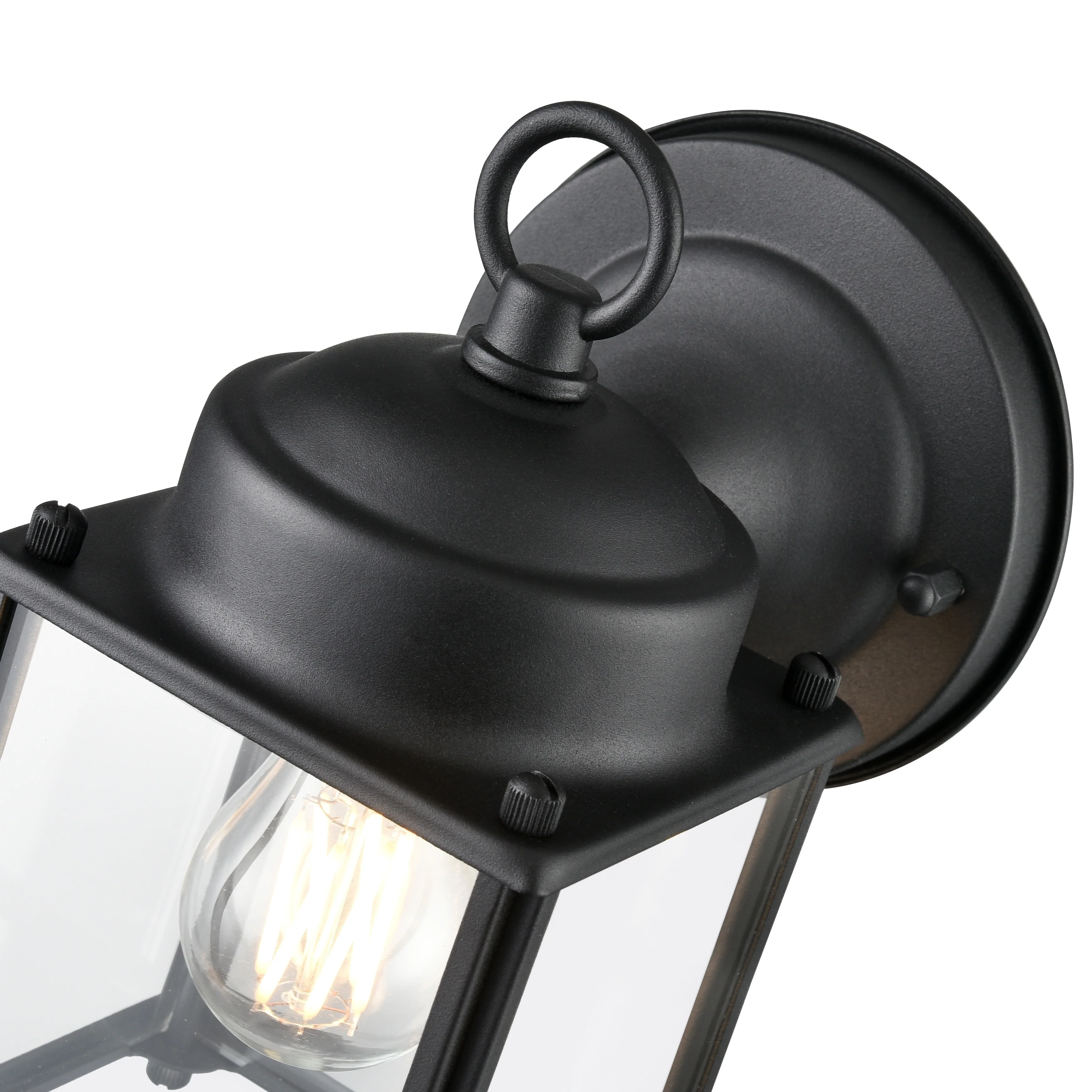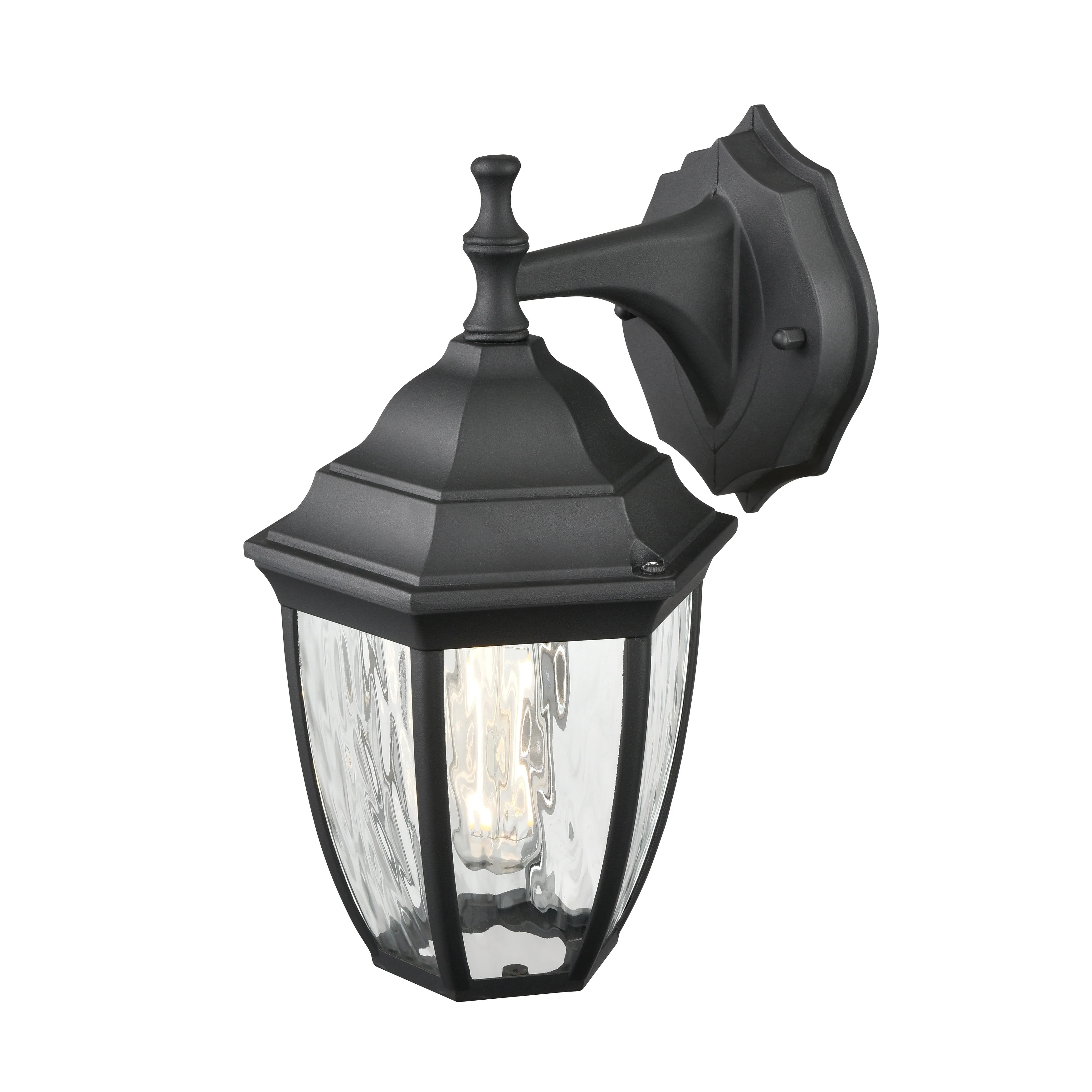 1-Light Satin Black Aluminum Lantern Waterproof Outdoor Wall Sconce Light - 6.9 in. W x 12.4 in. H x 7.5 in. D