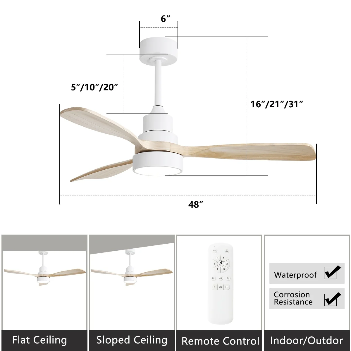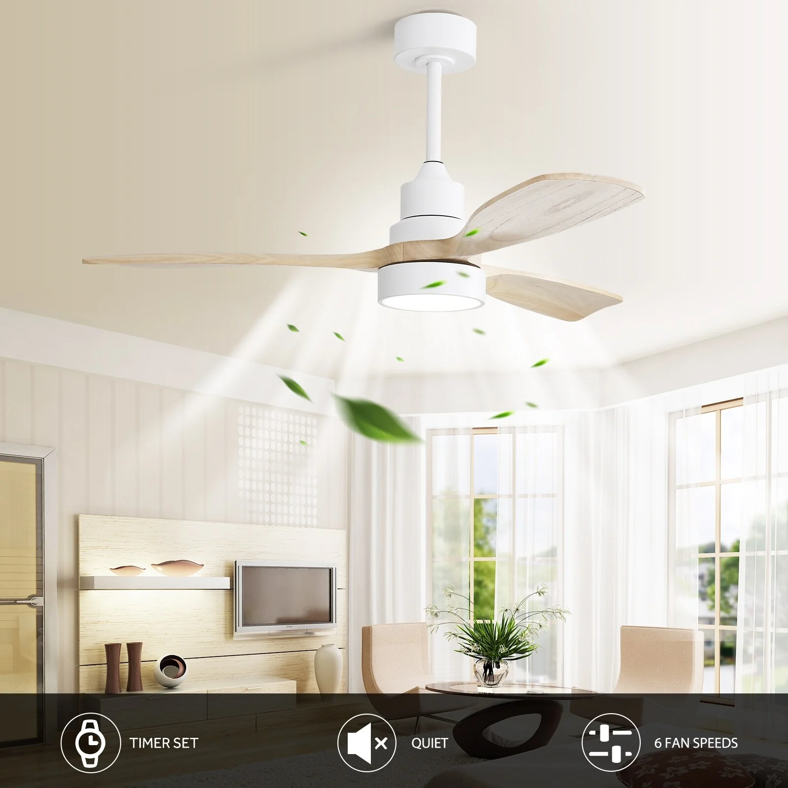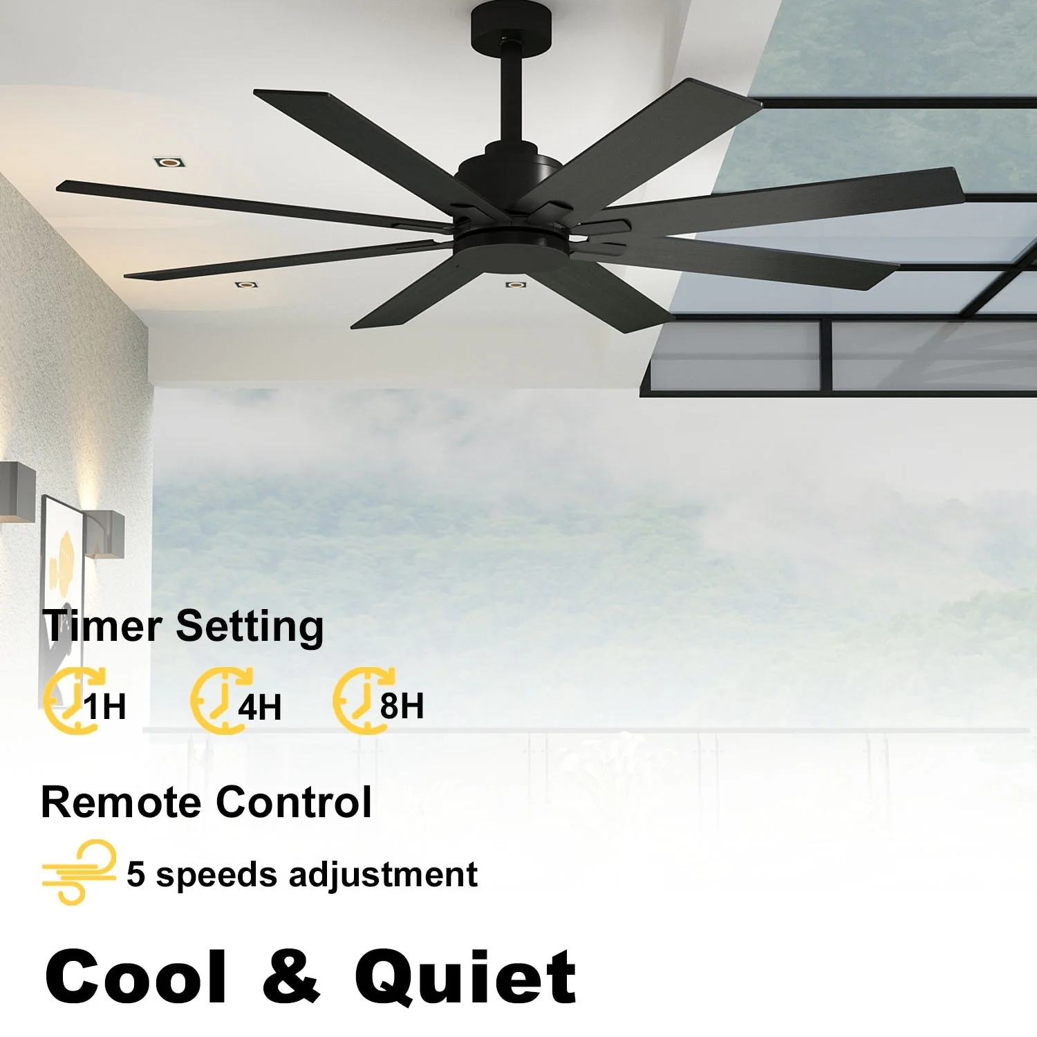 Timechee 65" Indoor 8-Blades Wood Ceiling Fan with Remote Control - 65 Inches
