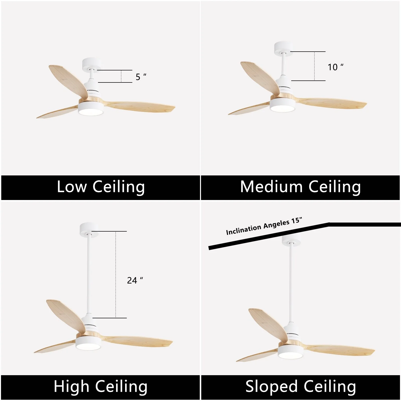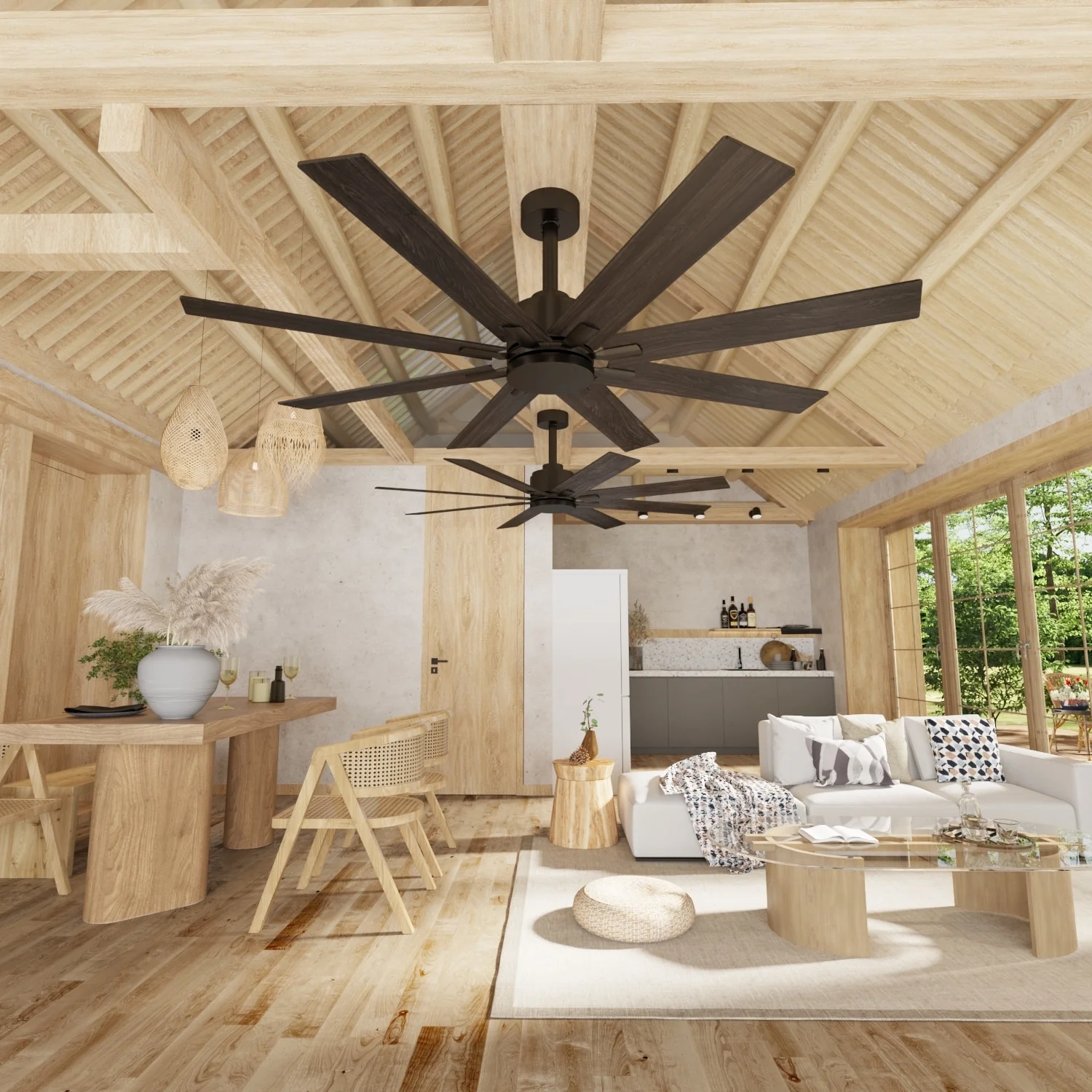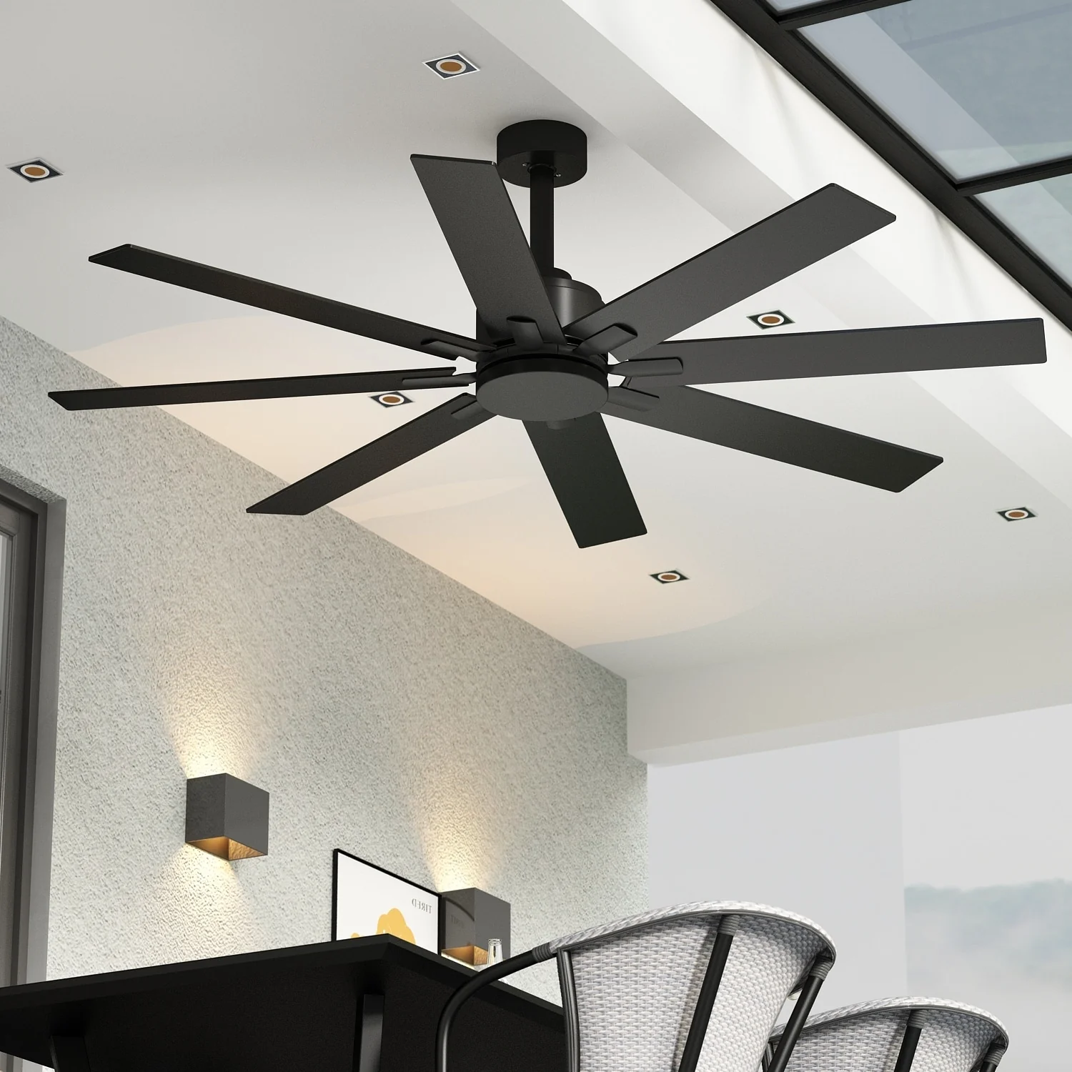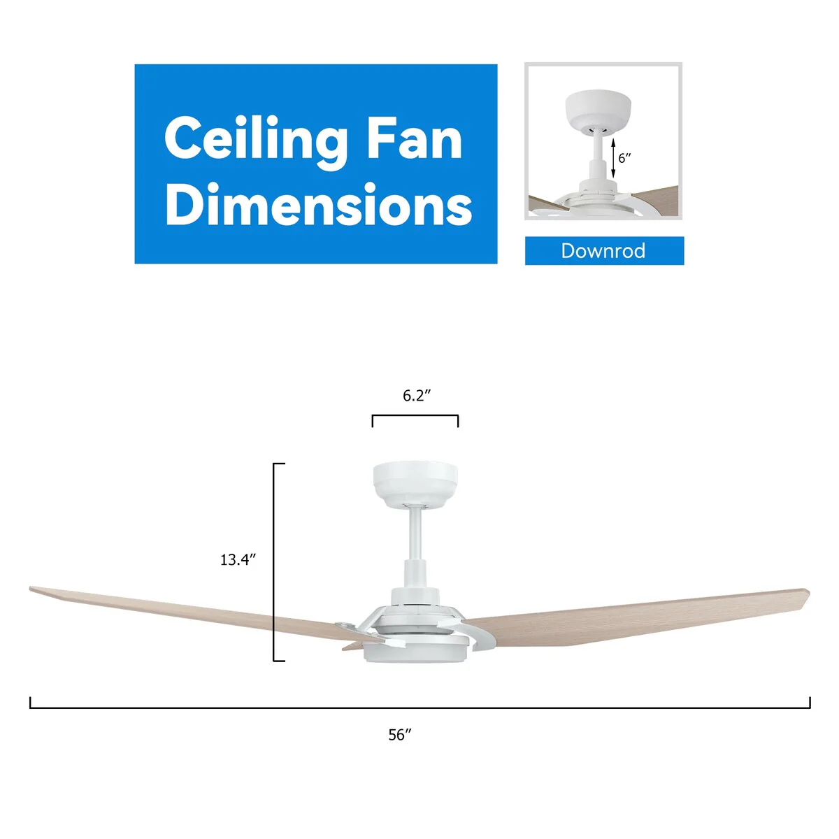 Timechee 65" Indoor 8-Blades Wood Ceiling Fan with Remote Control - 65 Inches