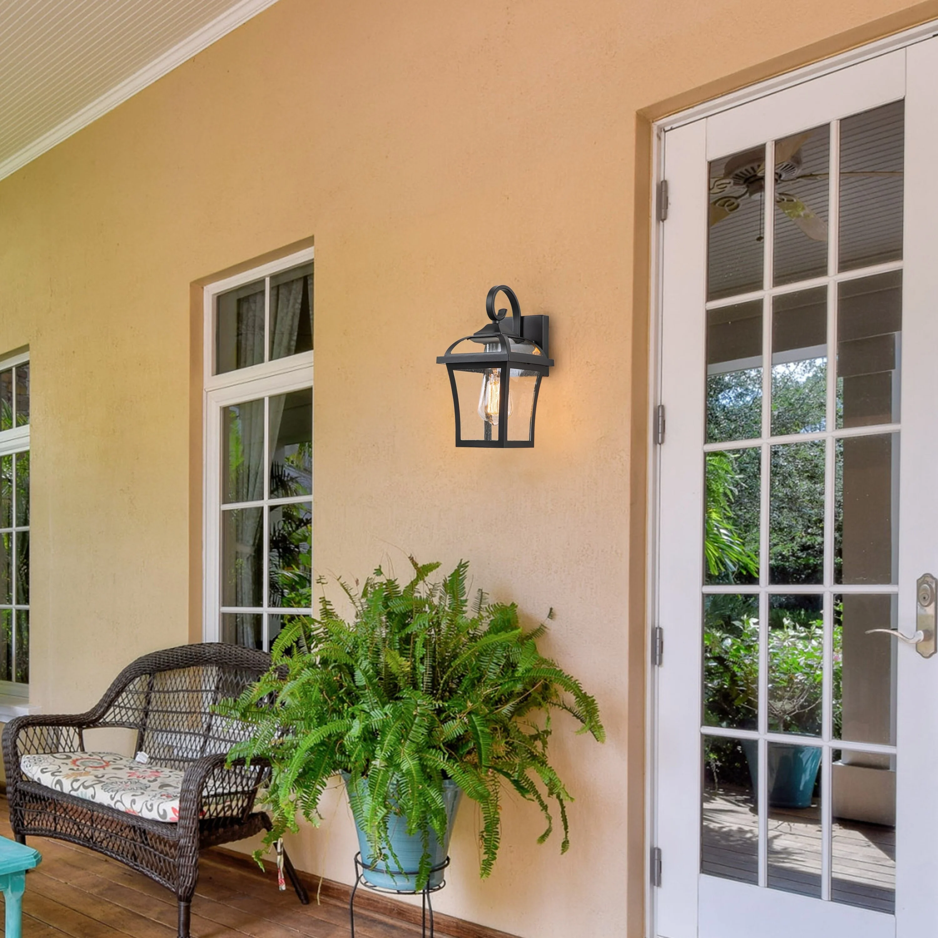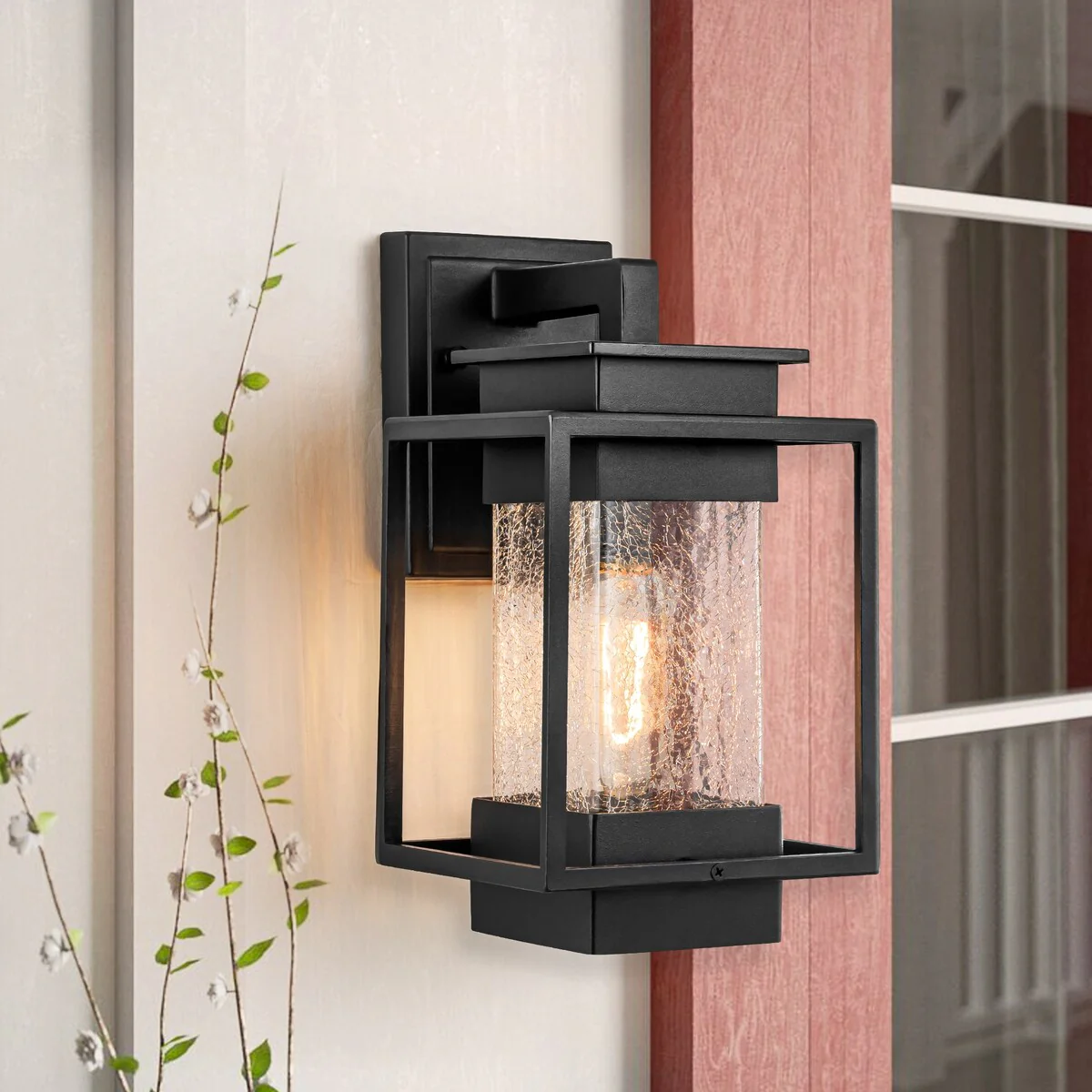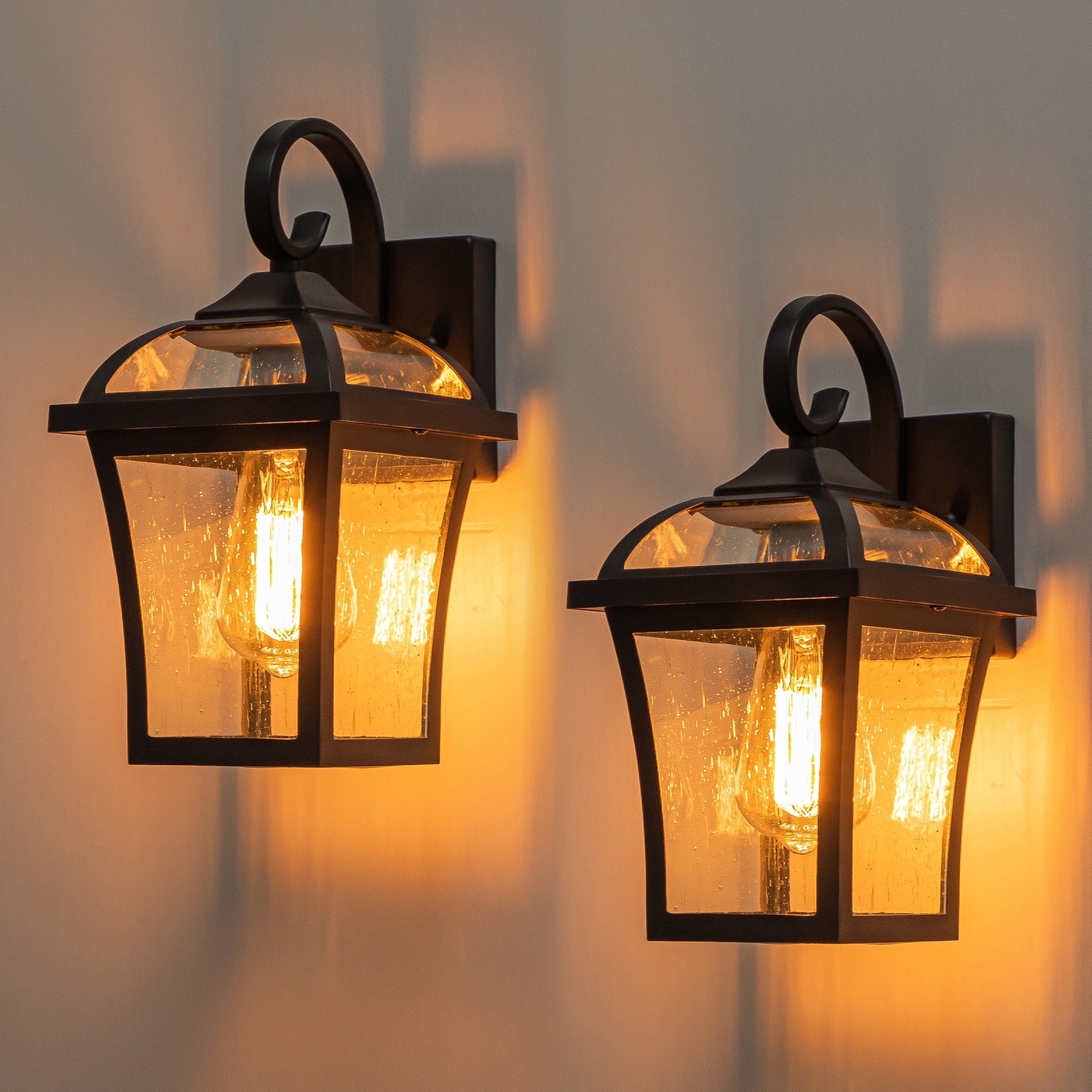C Cattleya 2-Pack Matte Black Outdoor Wall Light Sconces with Clear Seeded Glass
