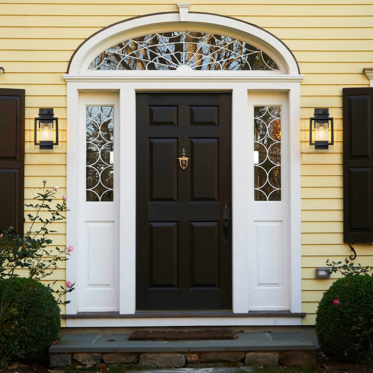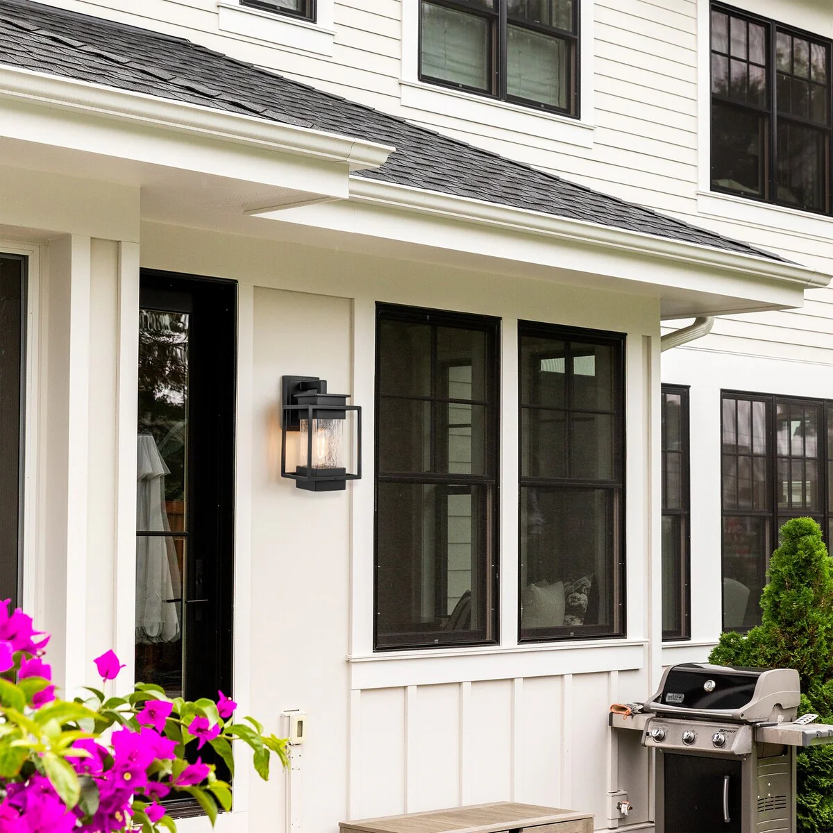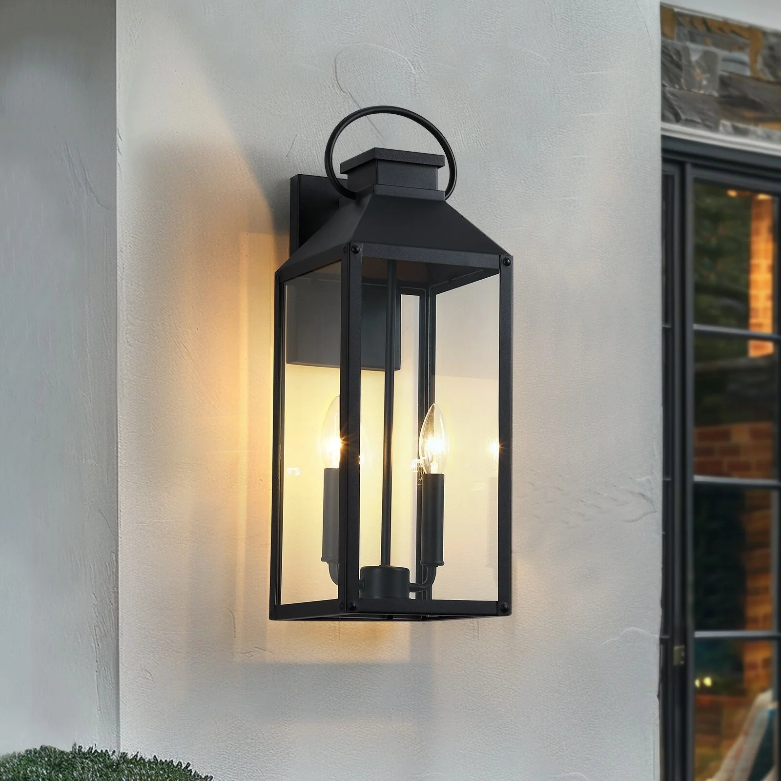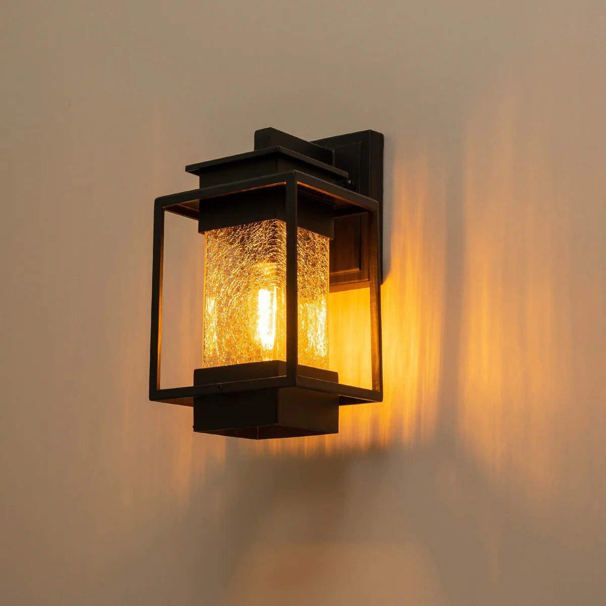 C Cattleya 2-Pack Matte Black Outdoor Wall Light Sconces with Clear Seeded Glass