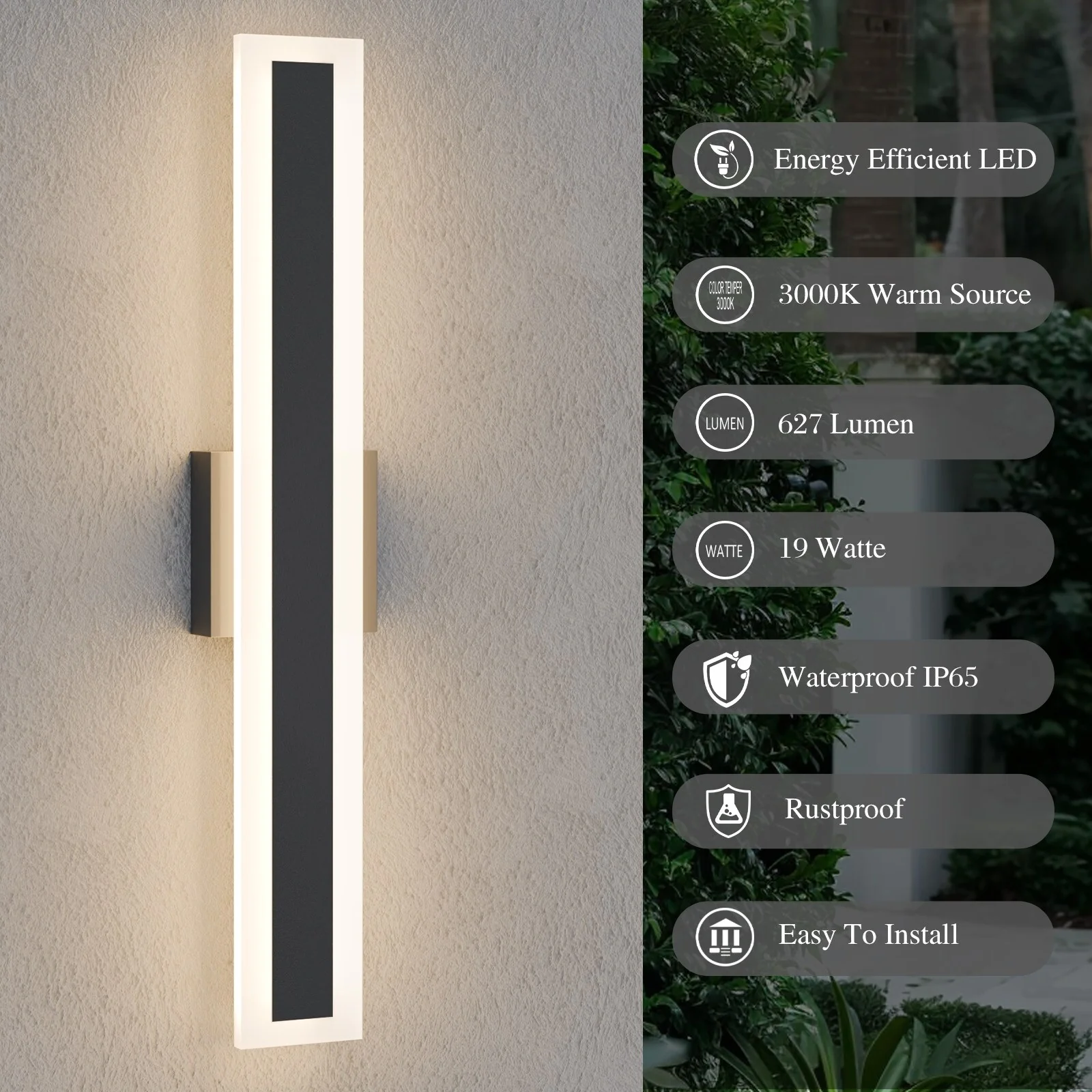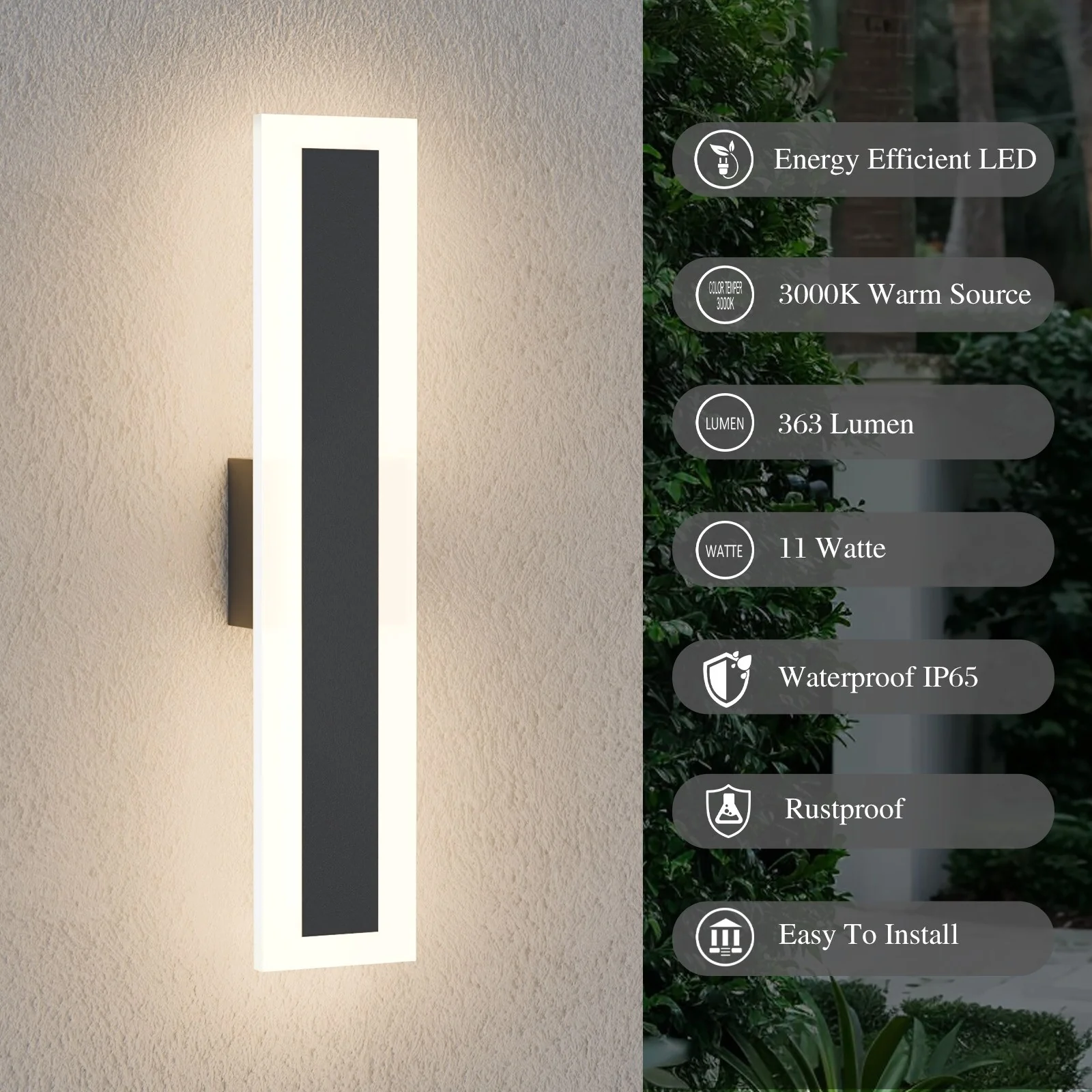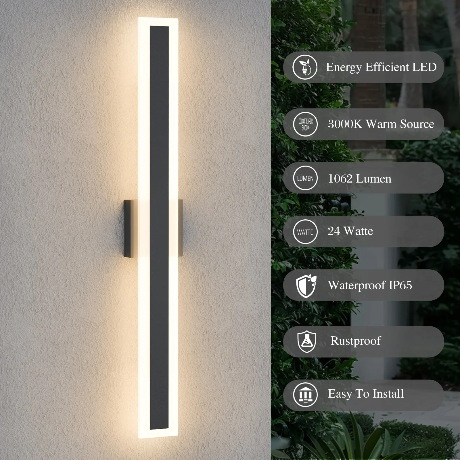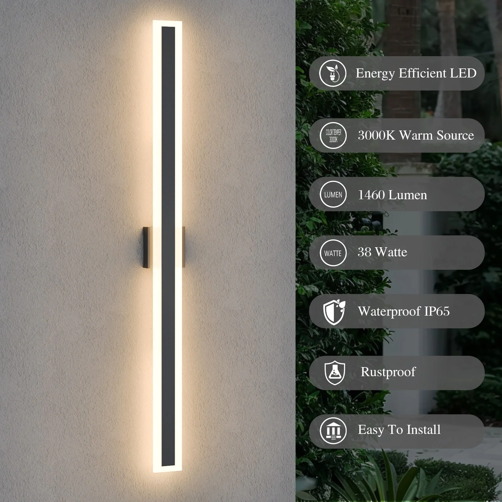 Outdoor Linear Integrated LED Wall Sconce Light Fixture with Bracket