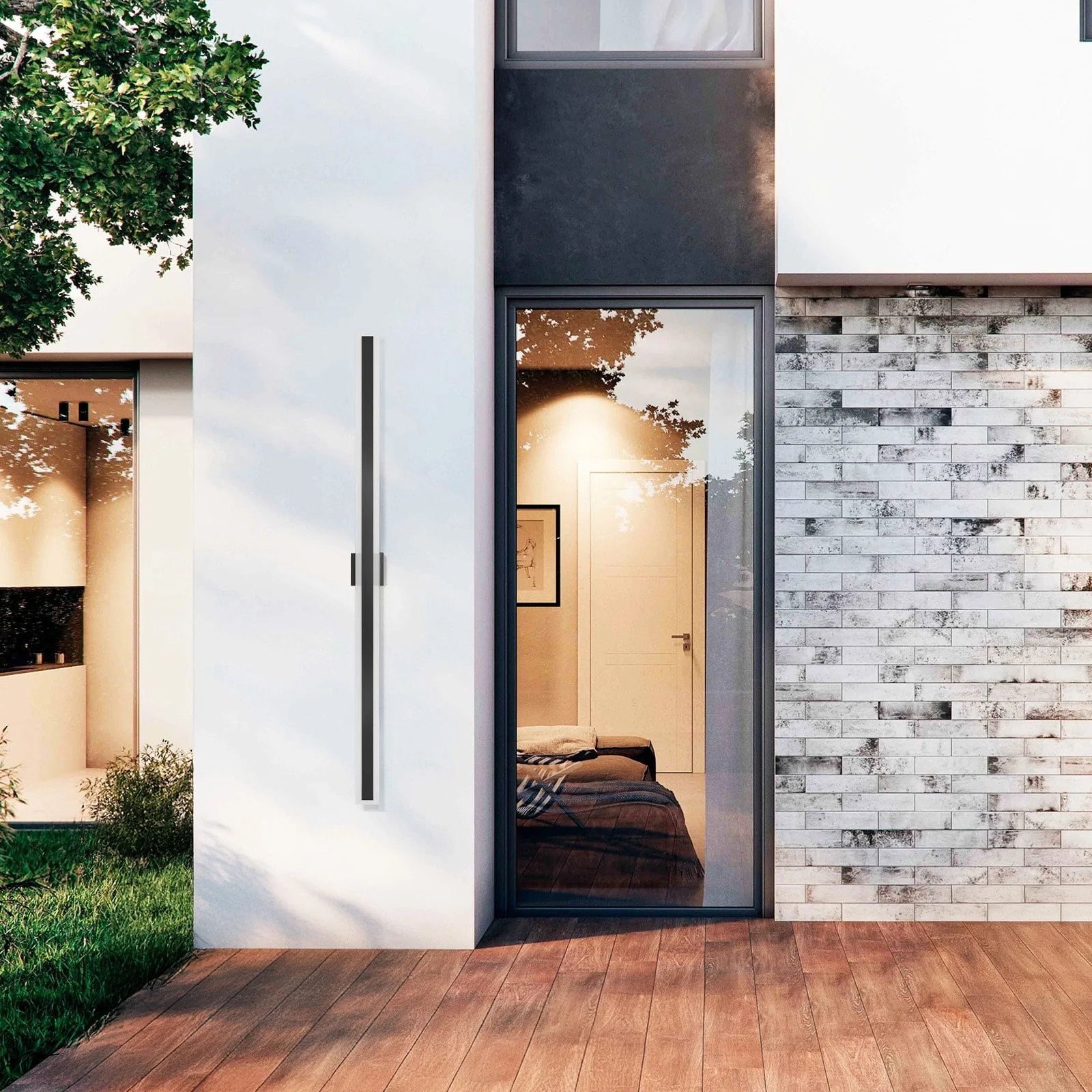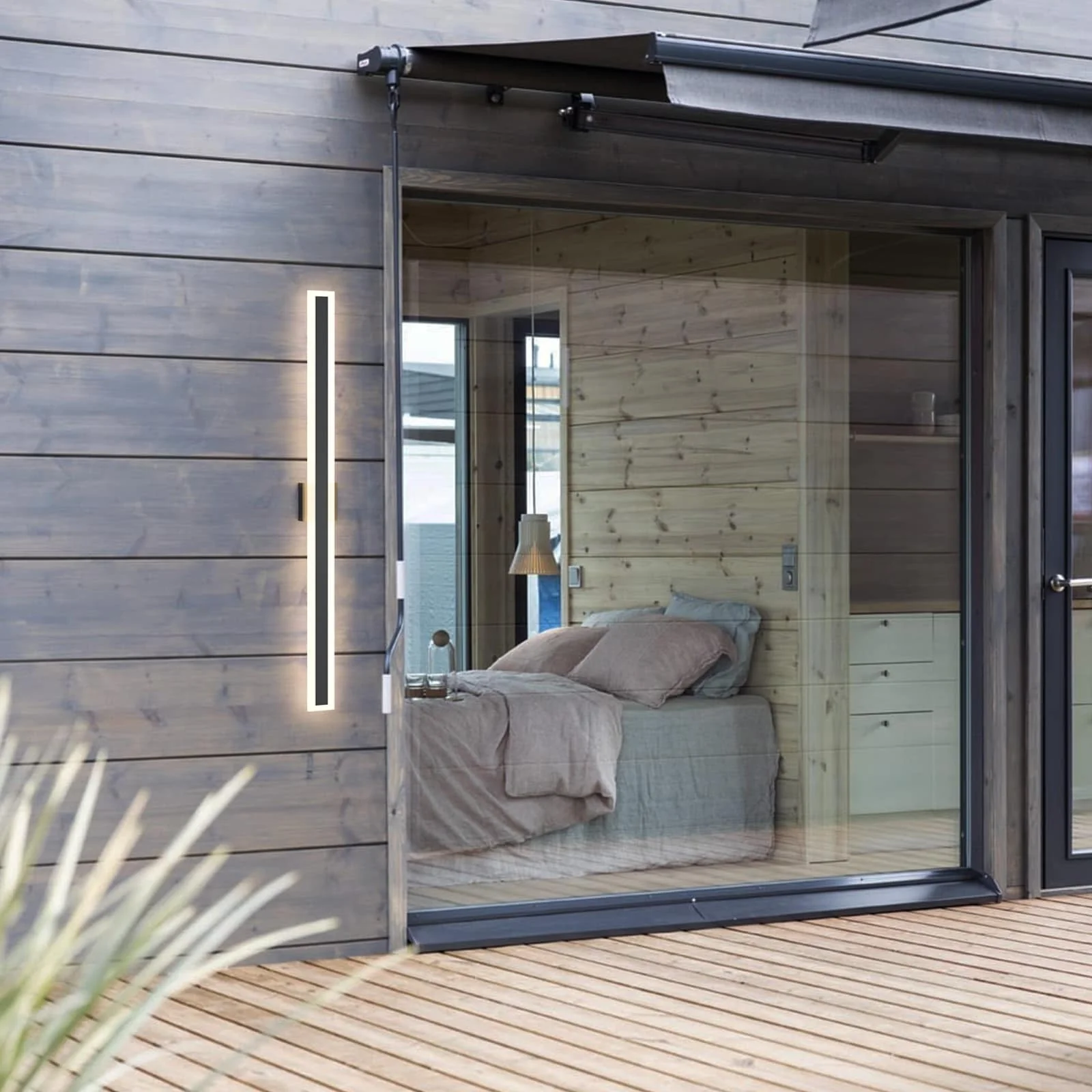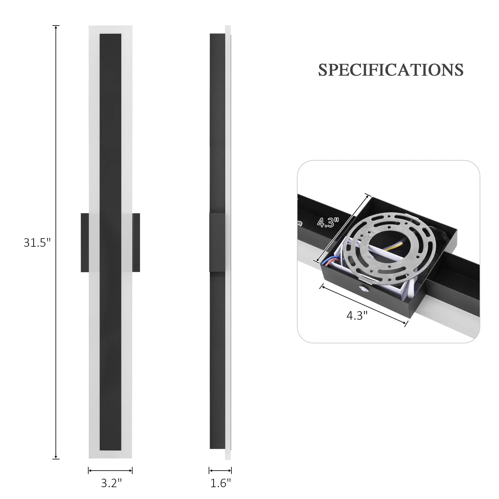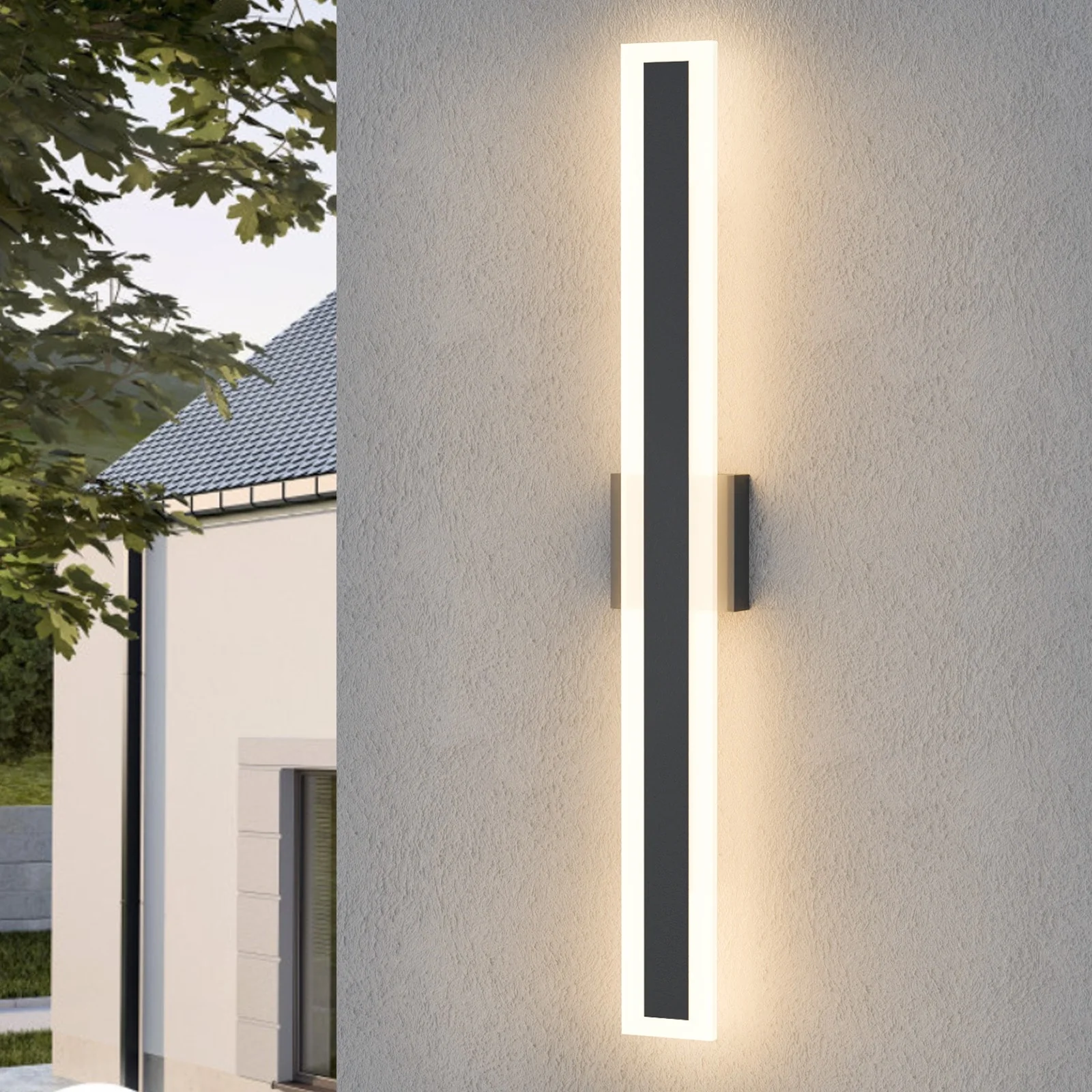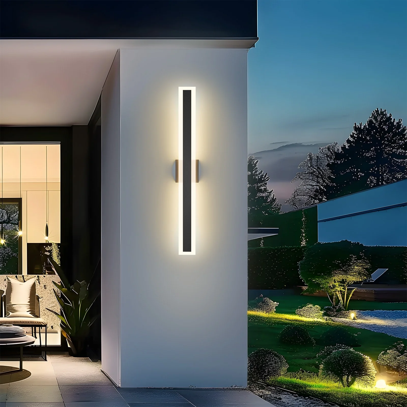 Outdoor Linear Integrated LED Wall Sconce Light Fixture with Bracket