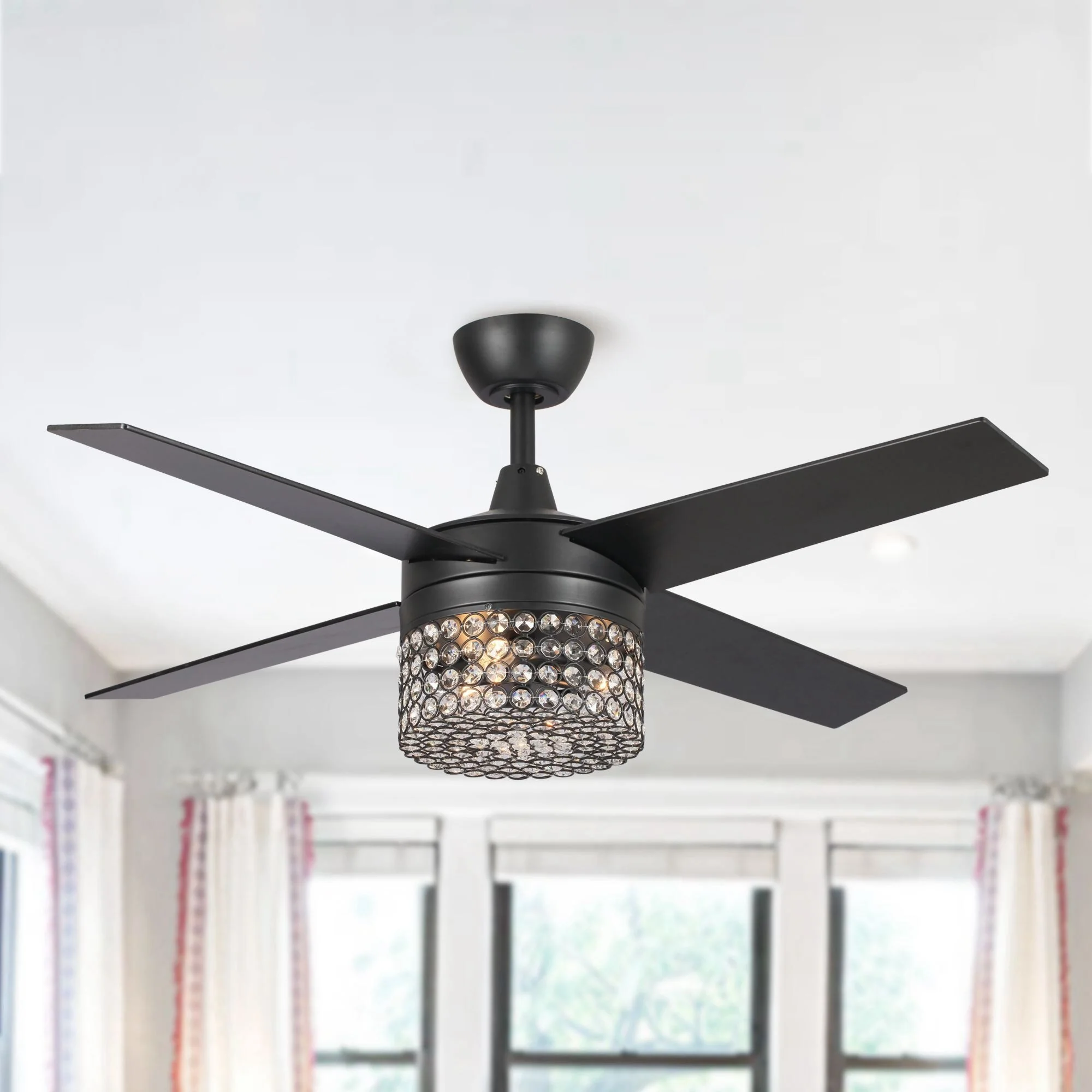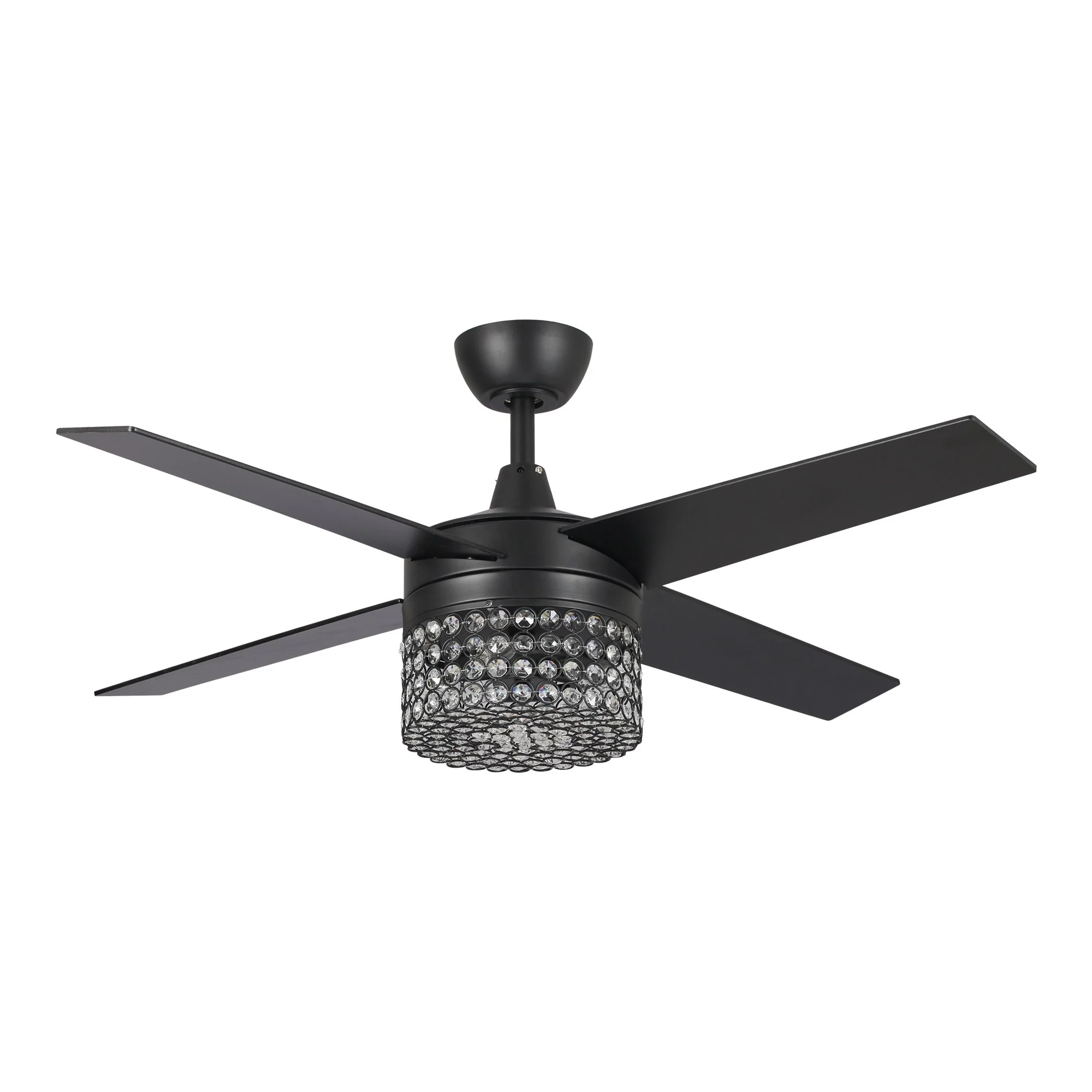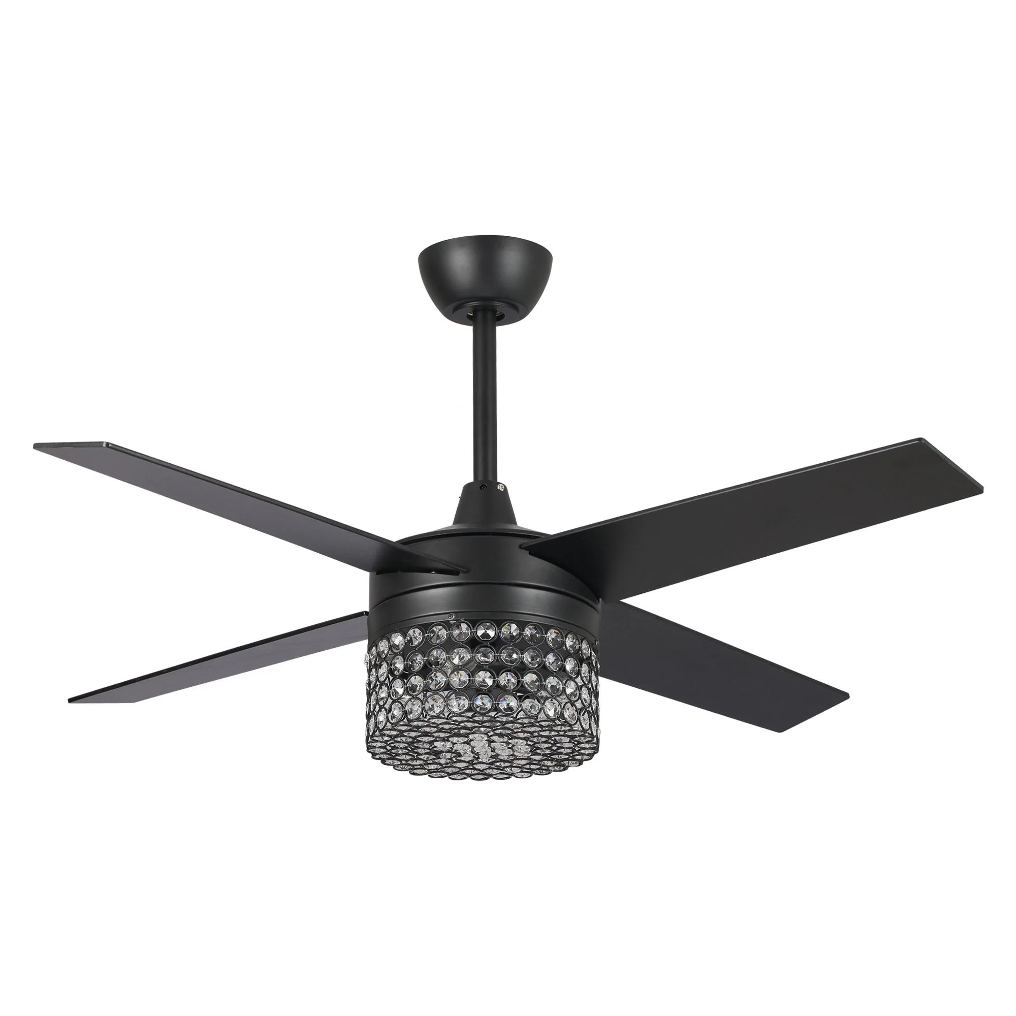 48" Black Wood 4-Blade Crystal Fandelier Ceiling Fan with Remote and Light
