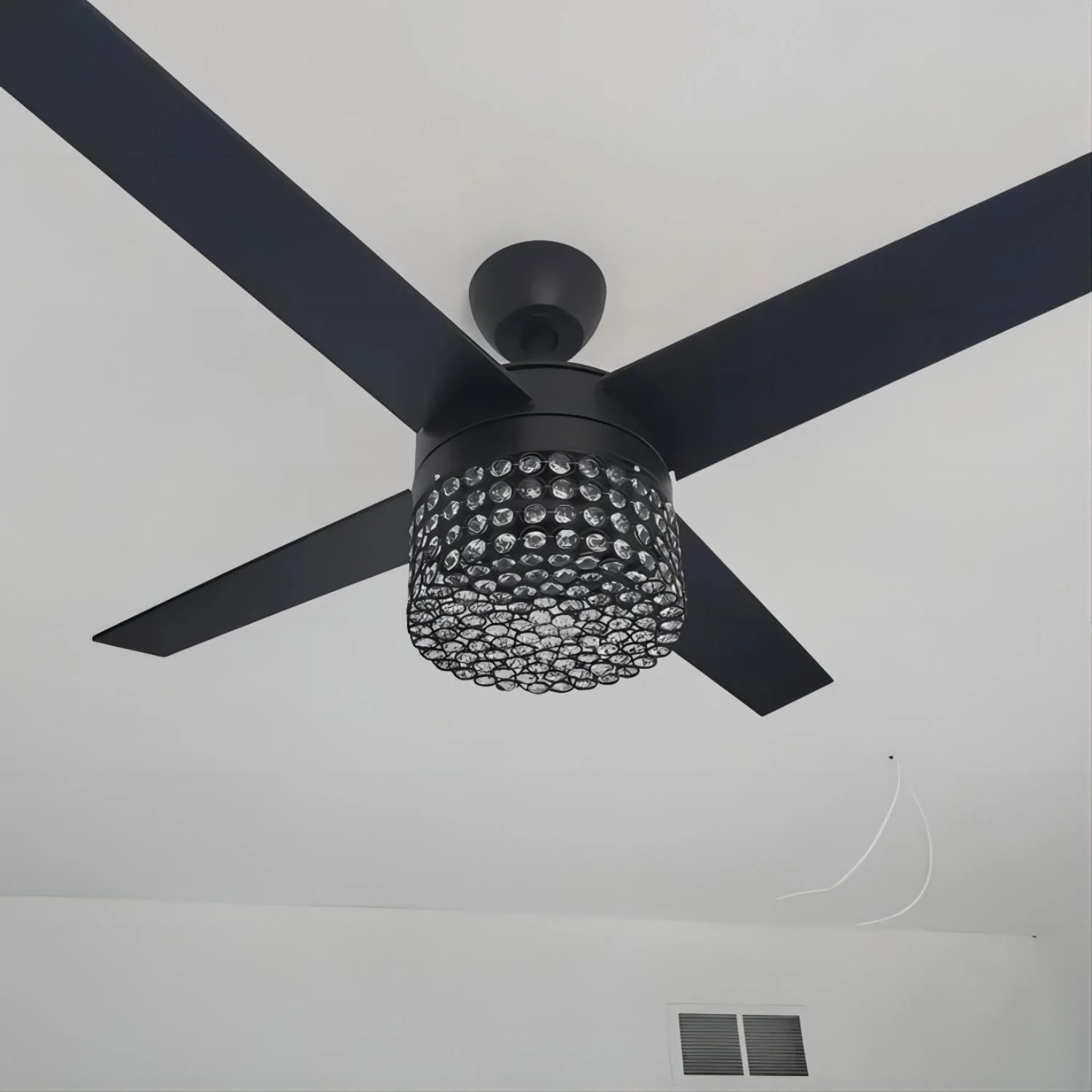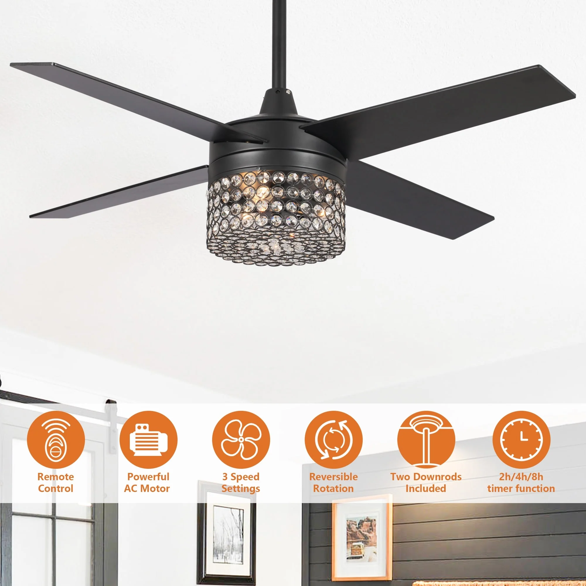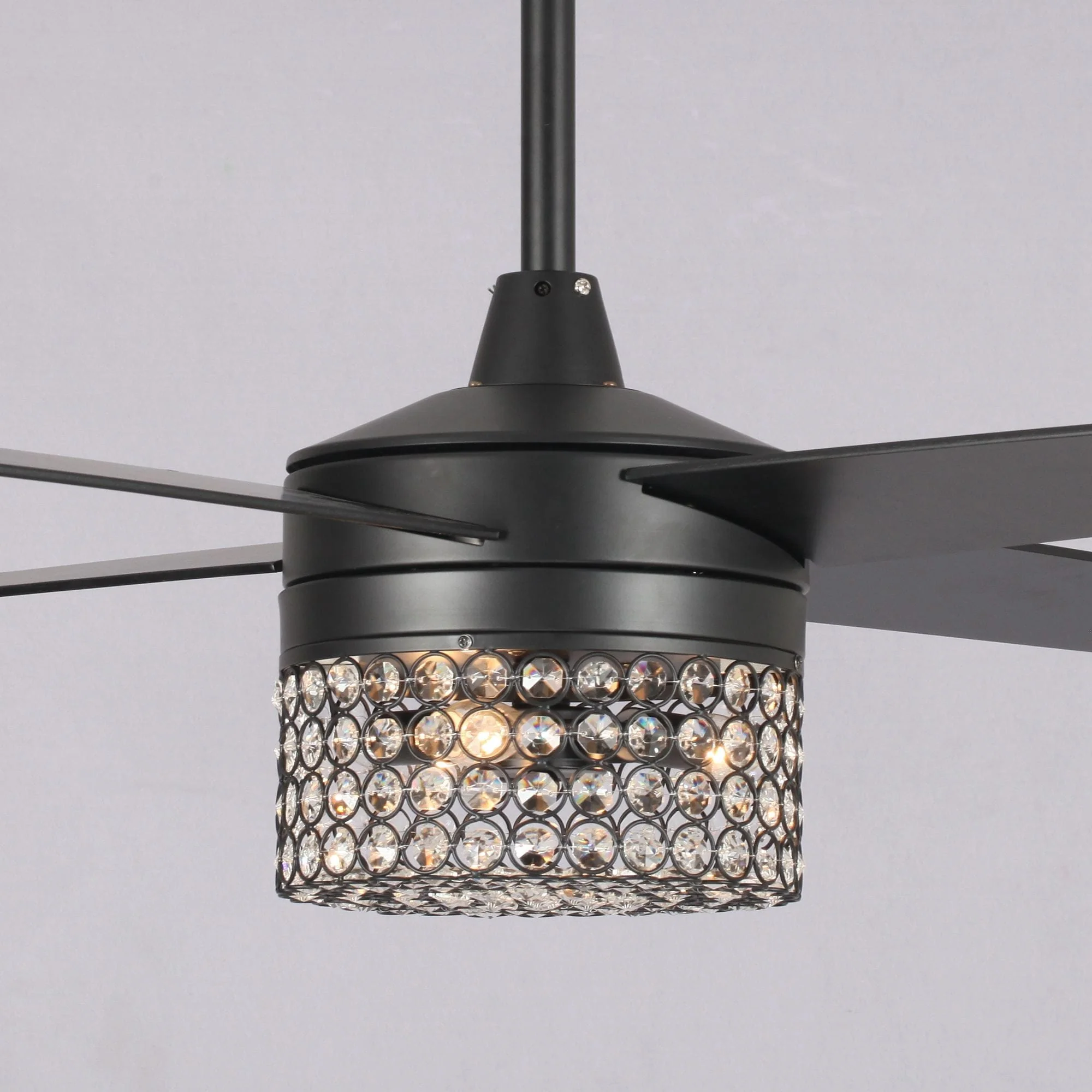 48" Black Wood 4-Blade Crystal Fandelier Ceiling Fan with Remote and Light