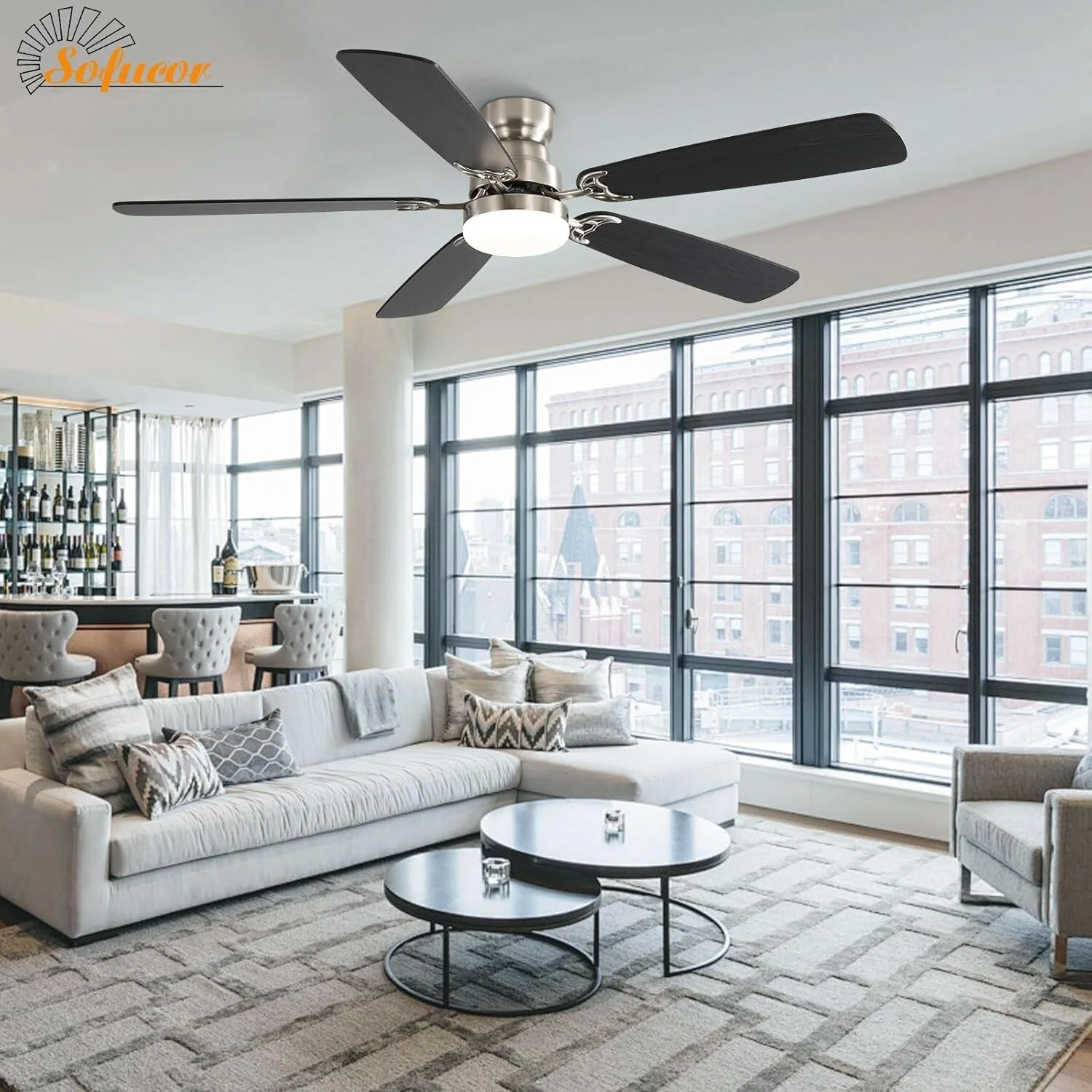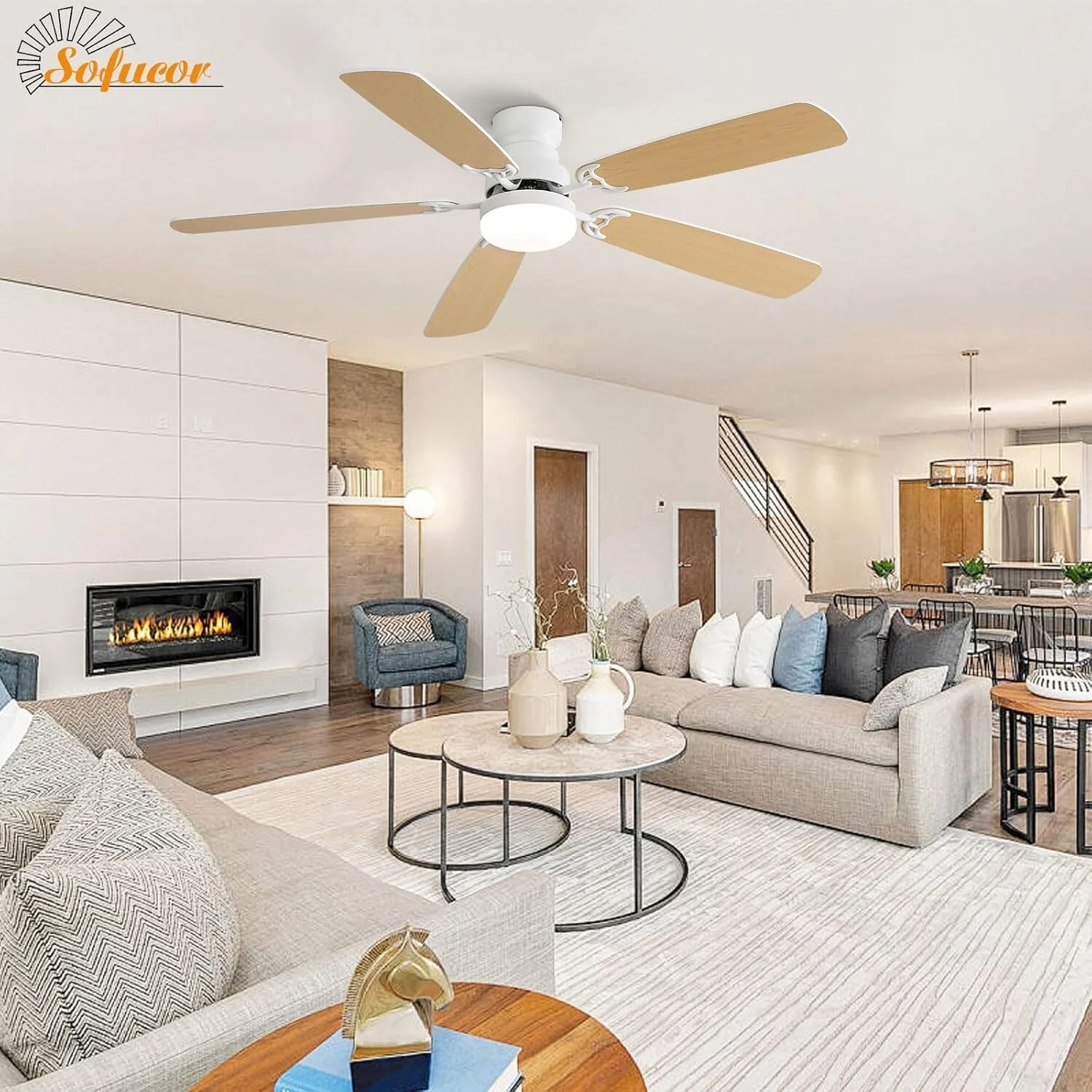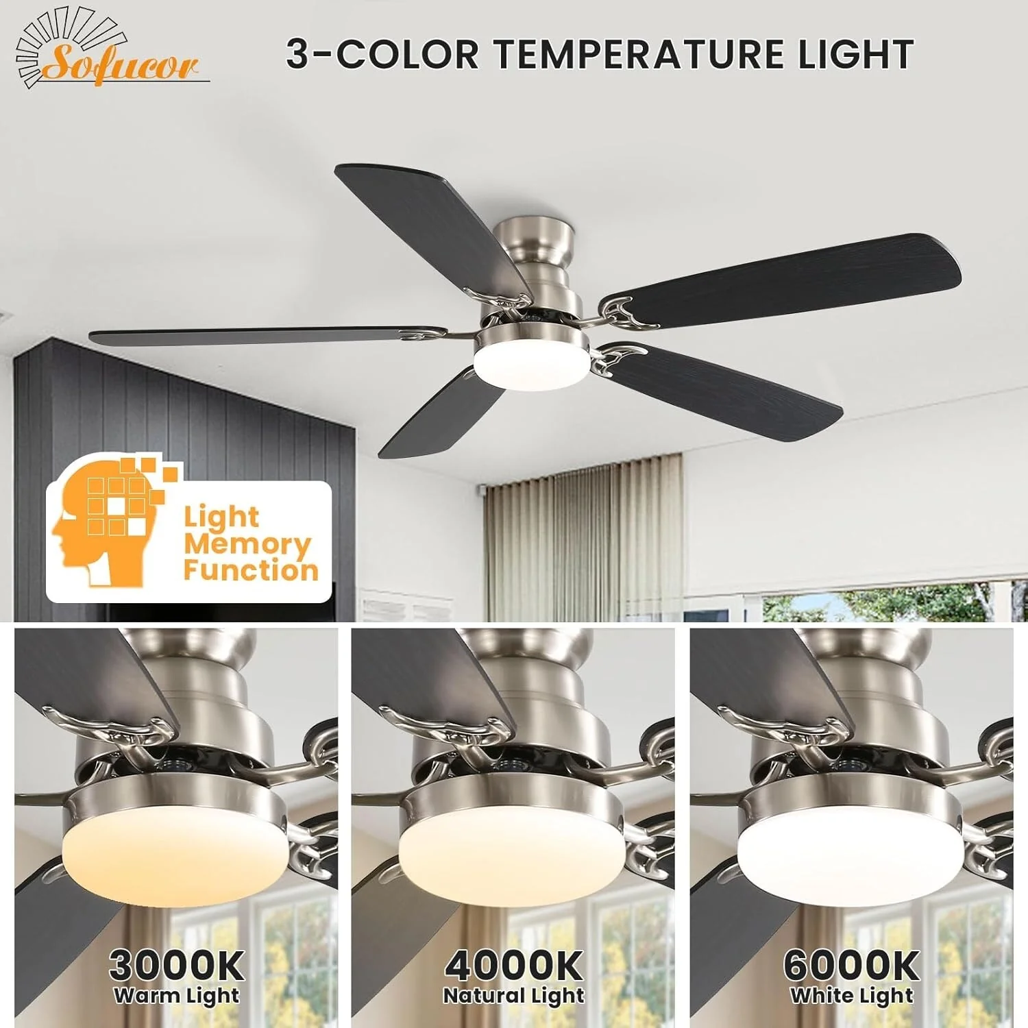 52 Inch Flush Mount & Downrod Ceiling Fan With Light and Remote Modern Ceiling Fan Bedroom - N/A
