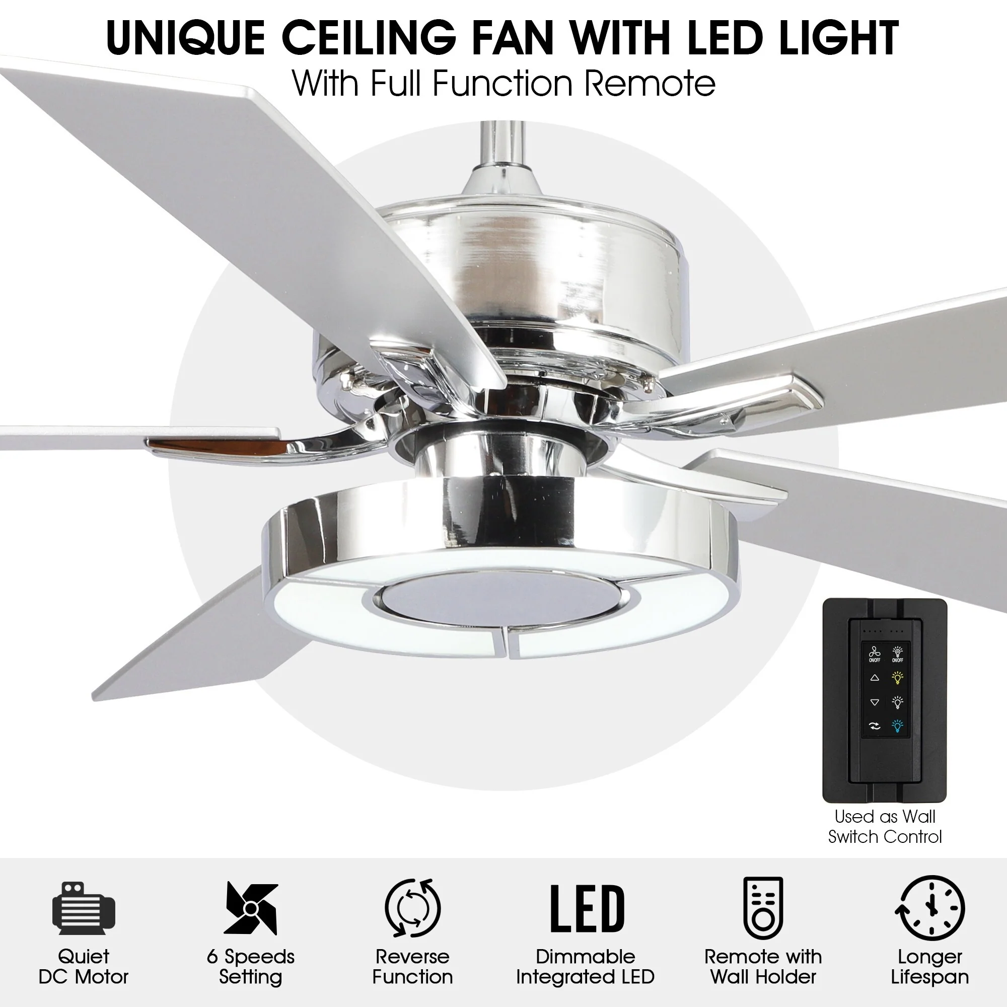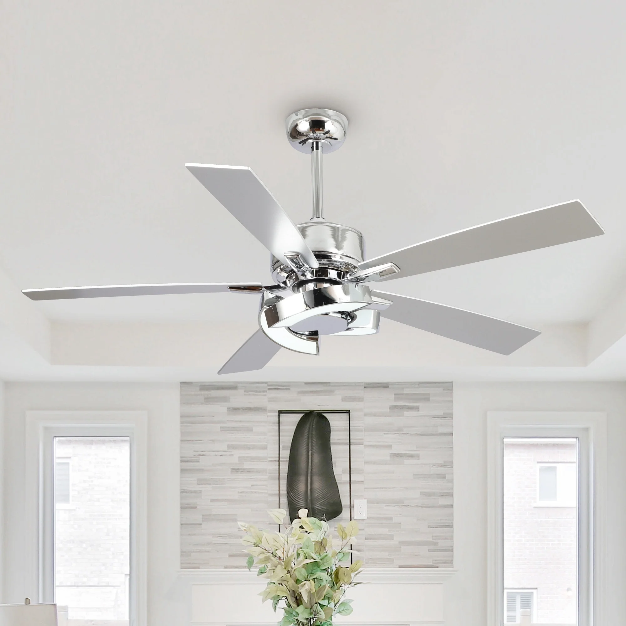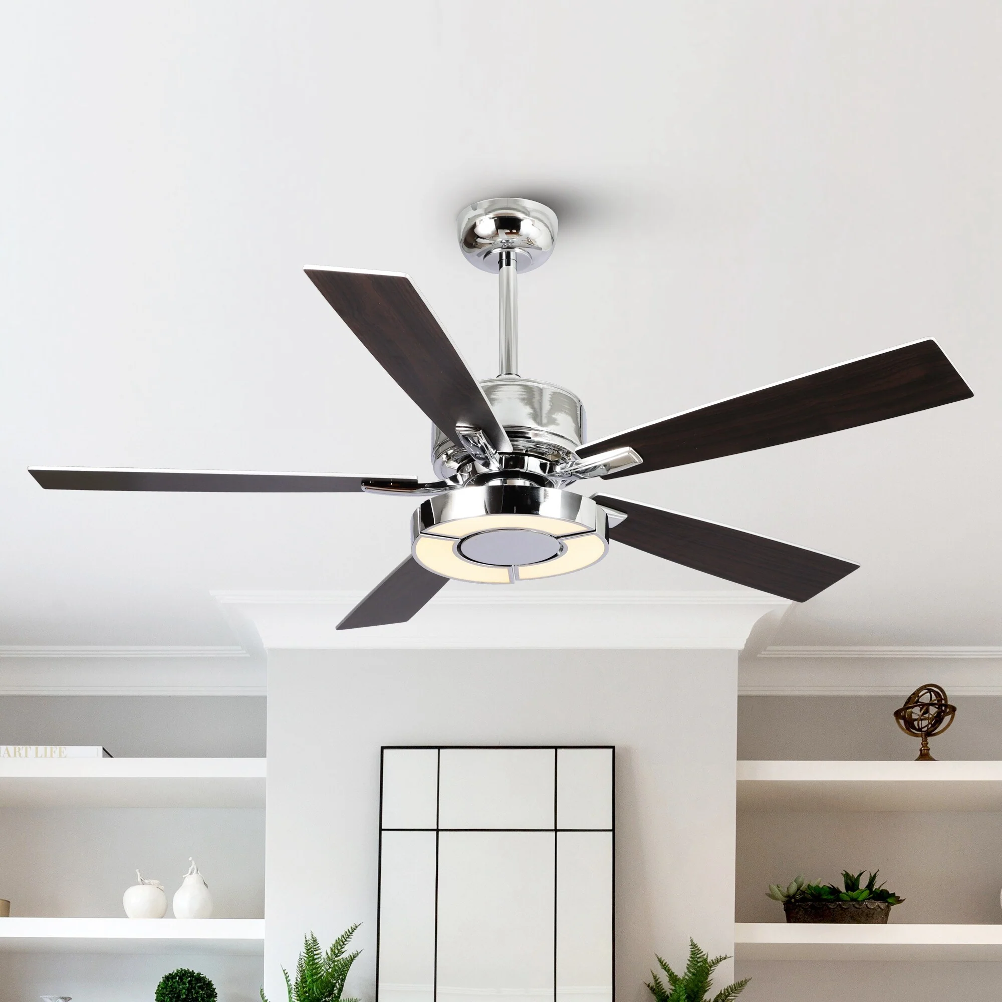 52" Chrome Wooden Modern Dimmable Ceiling Fan with LED Light