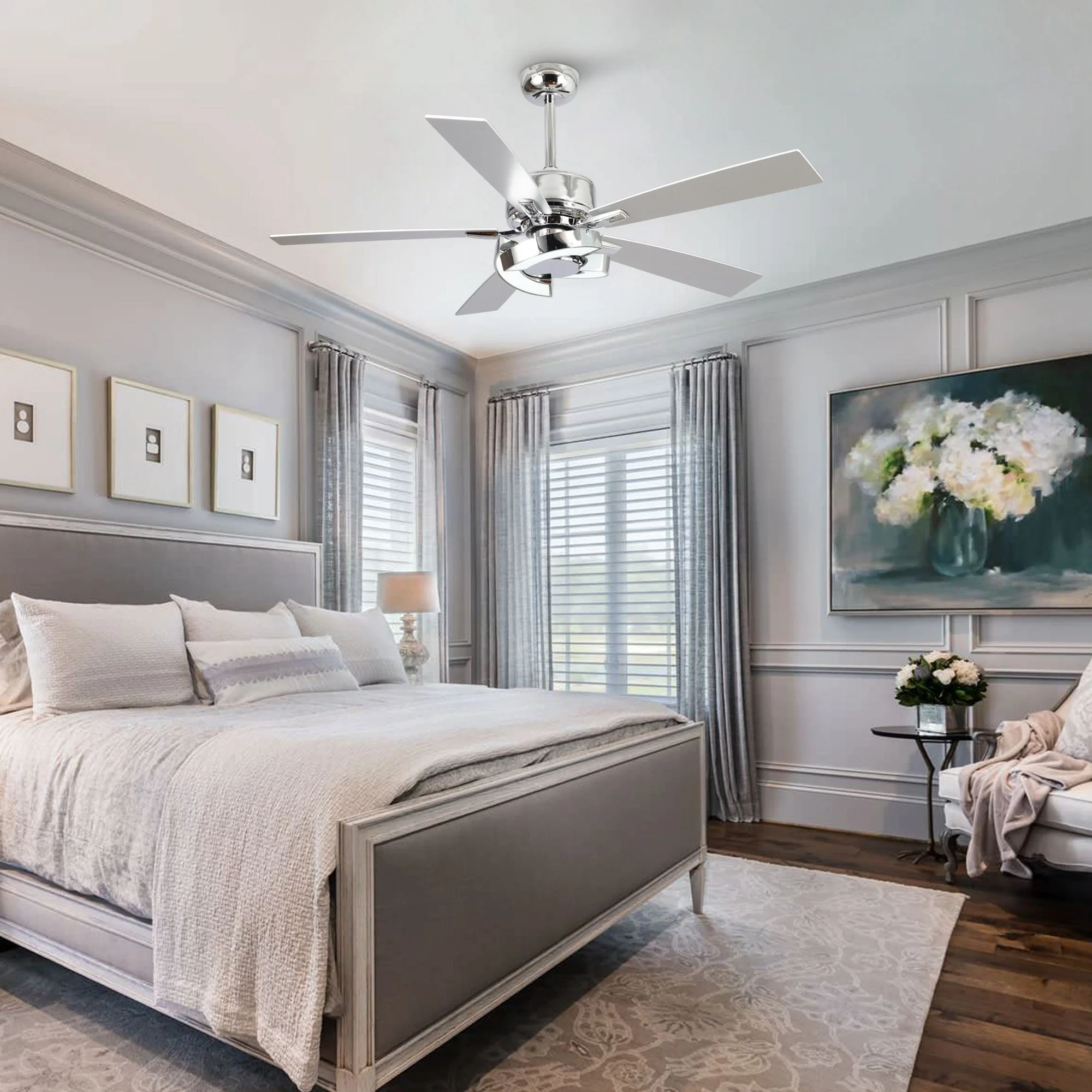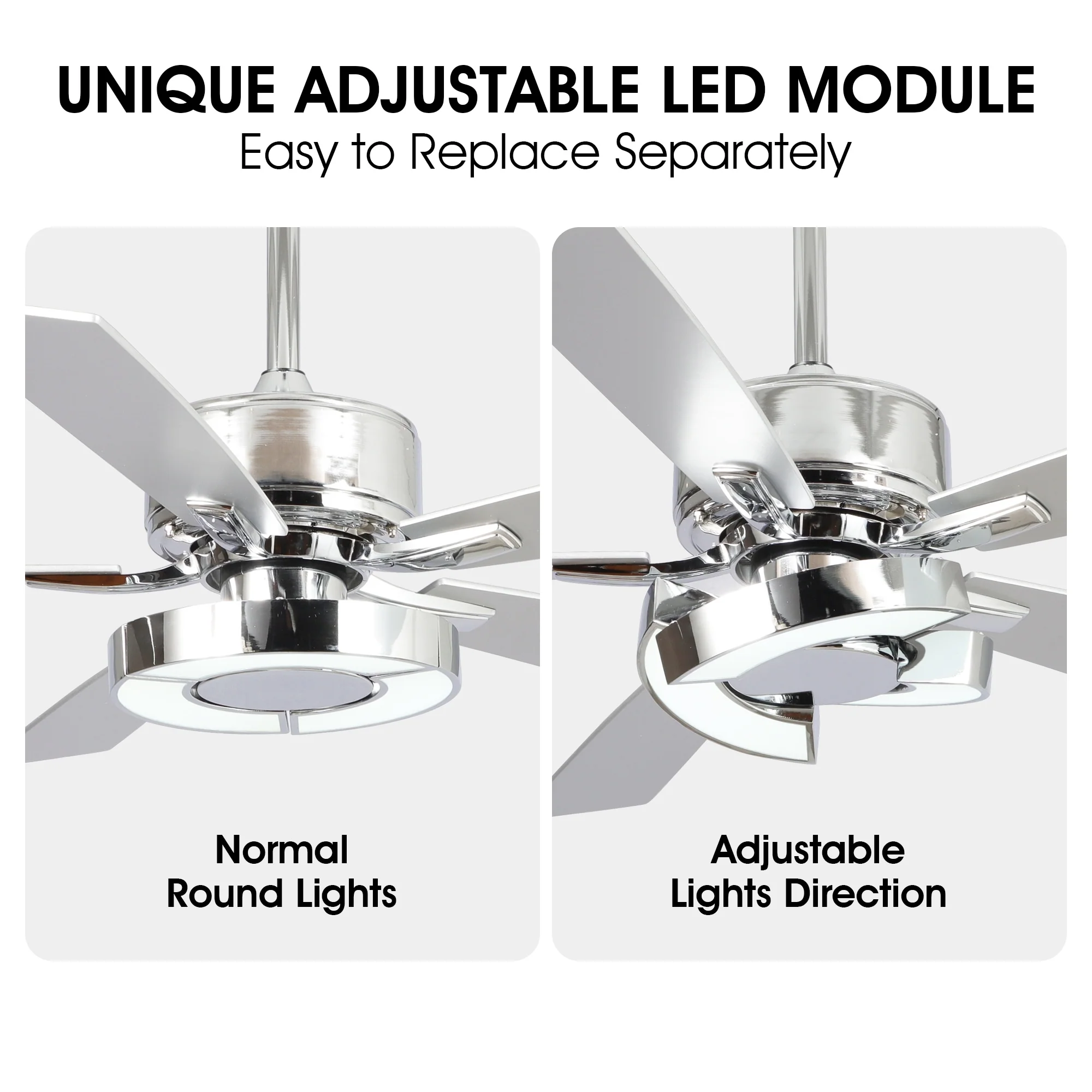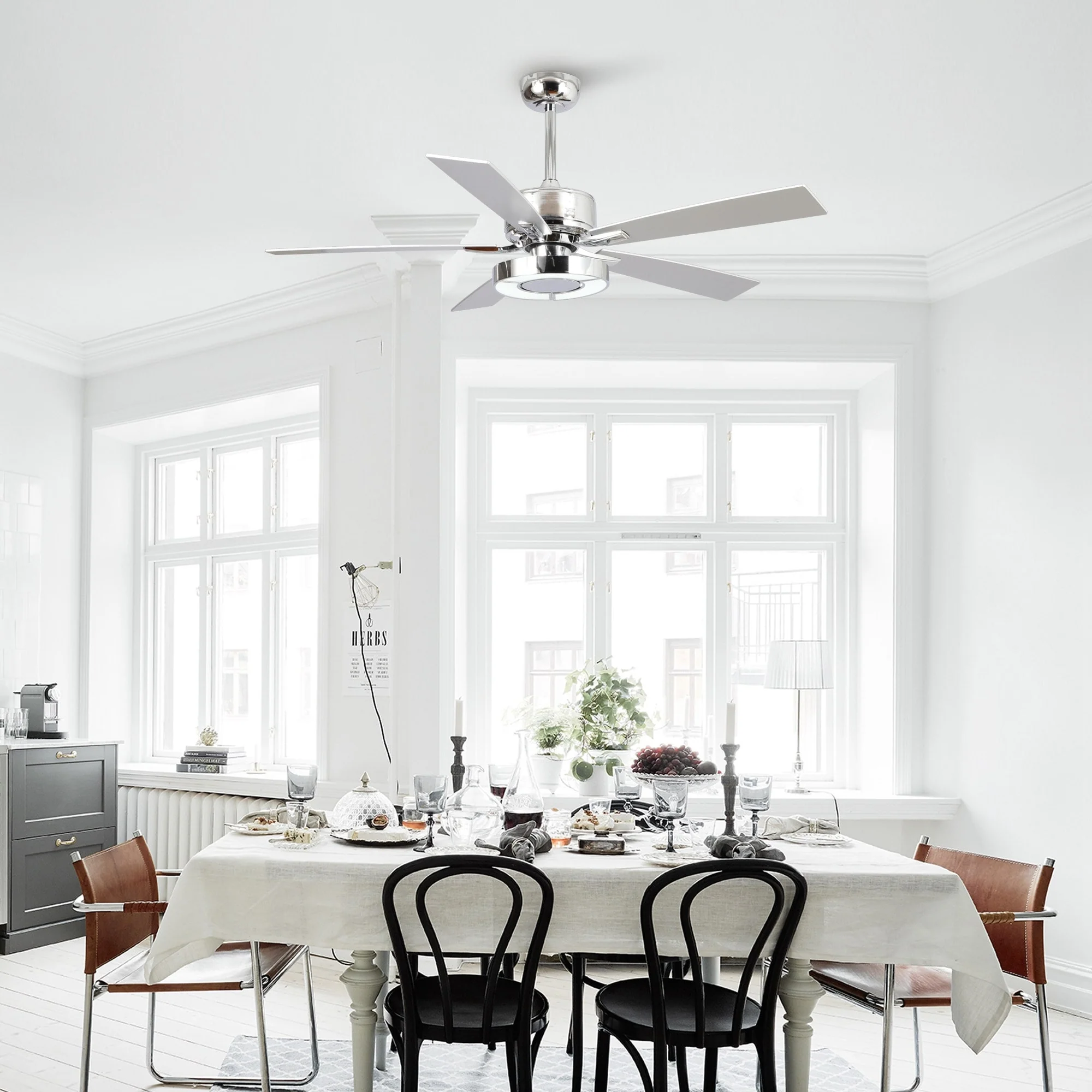 52" Chrome Wooden Modern Dimmable Ceiling Fan with LED Light