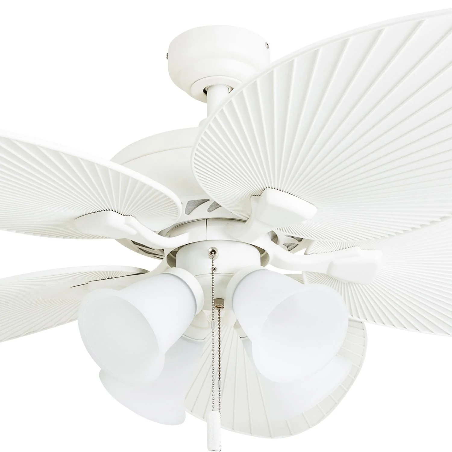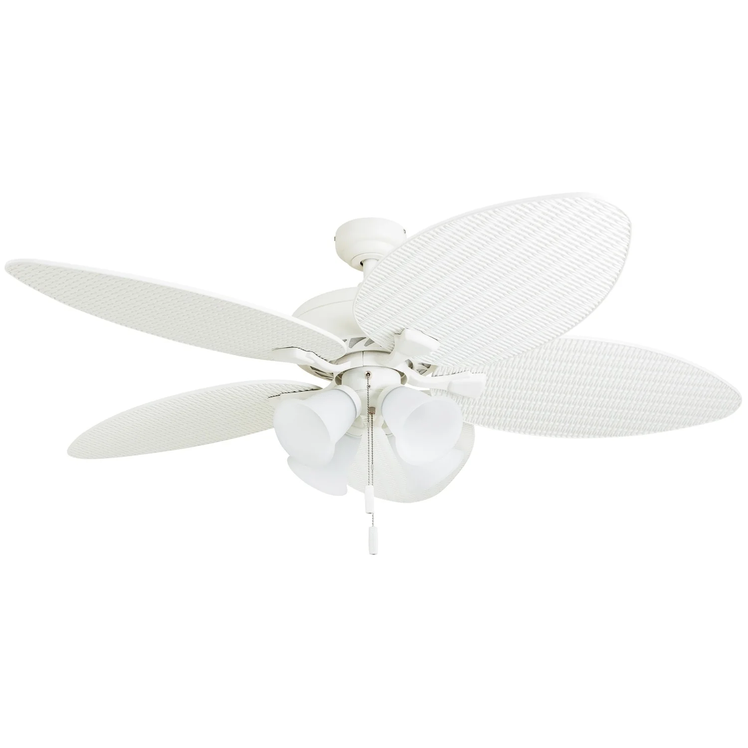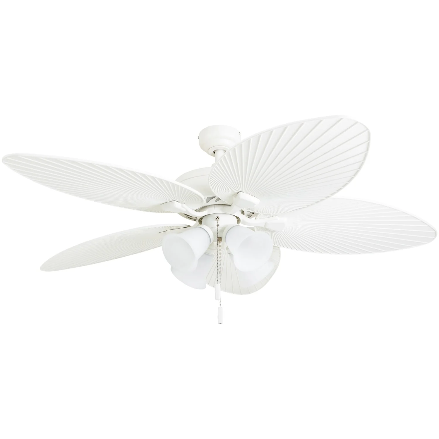 52" Honeywell Palm Lake White Indoor/Outdoor Ceiling Fan with Light, Pull Chain, 5 Palm Leaf Blade