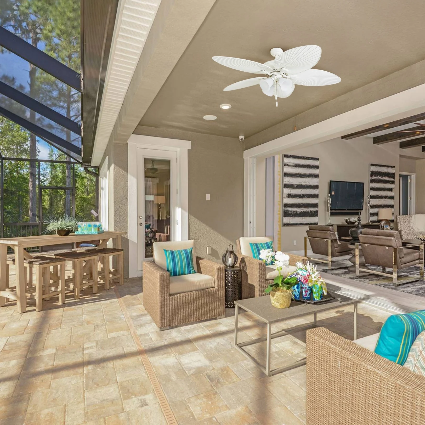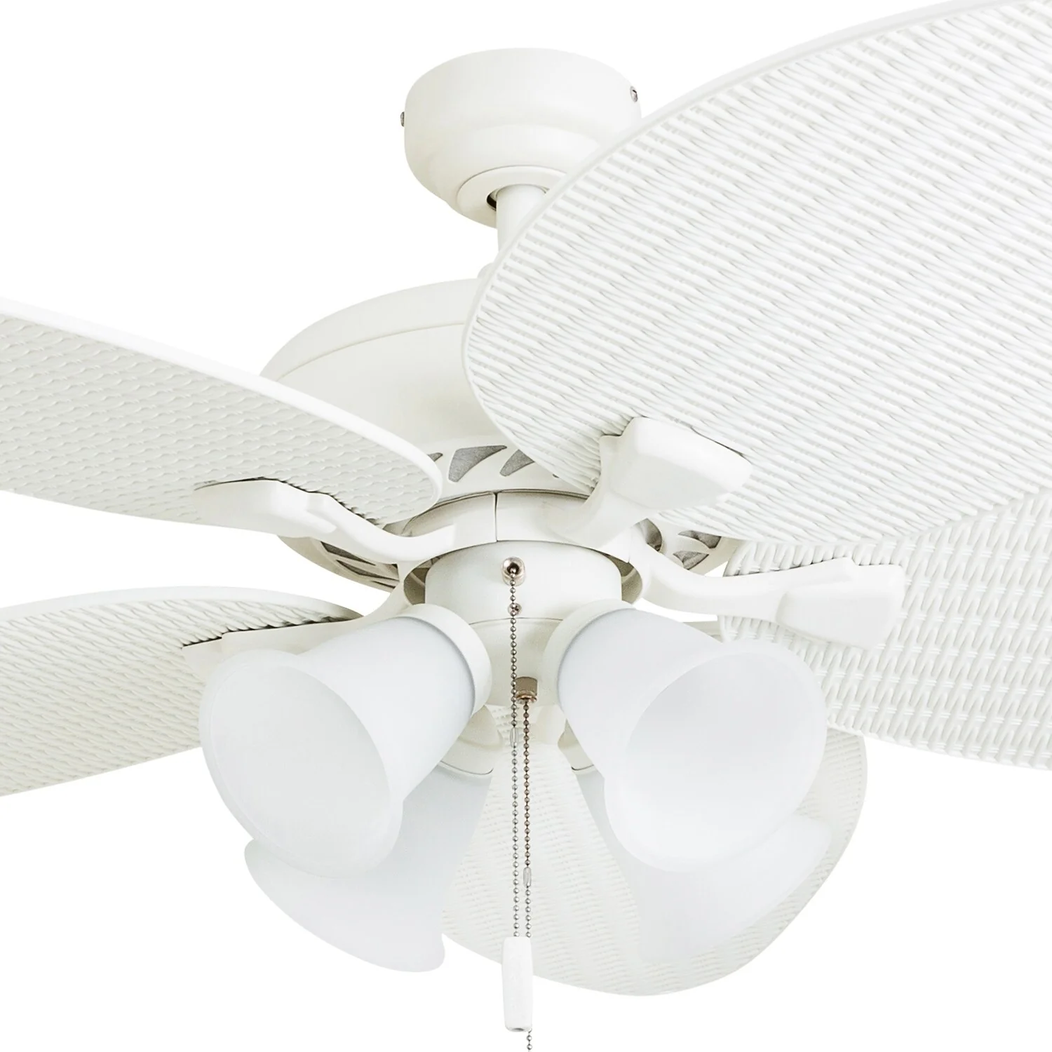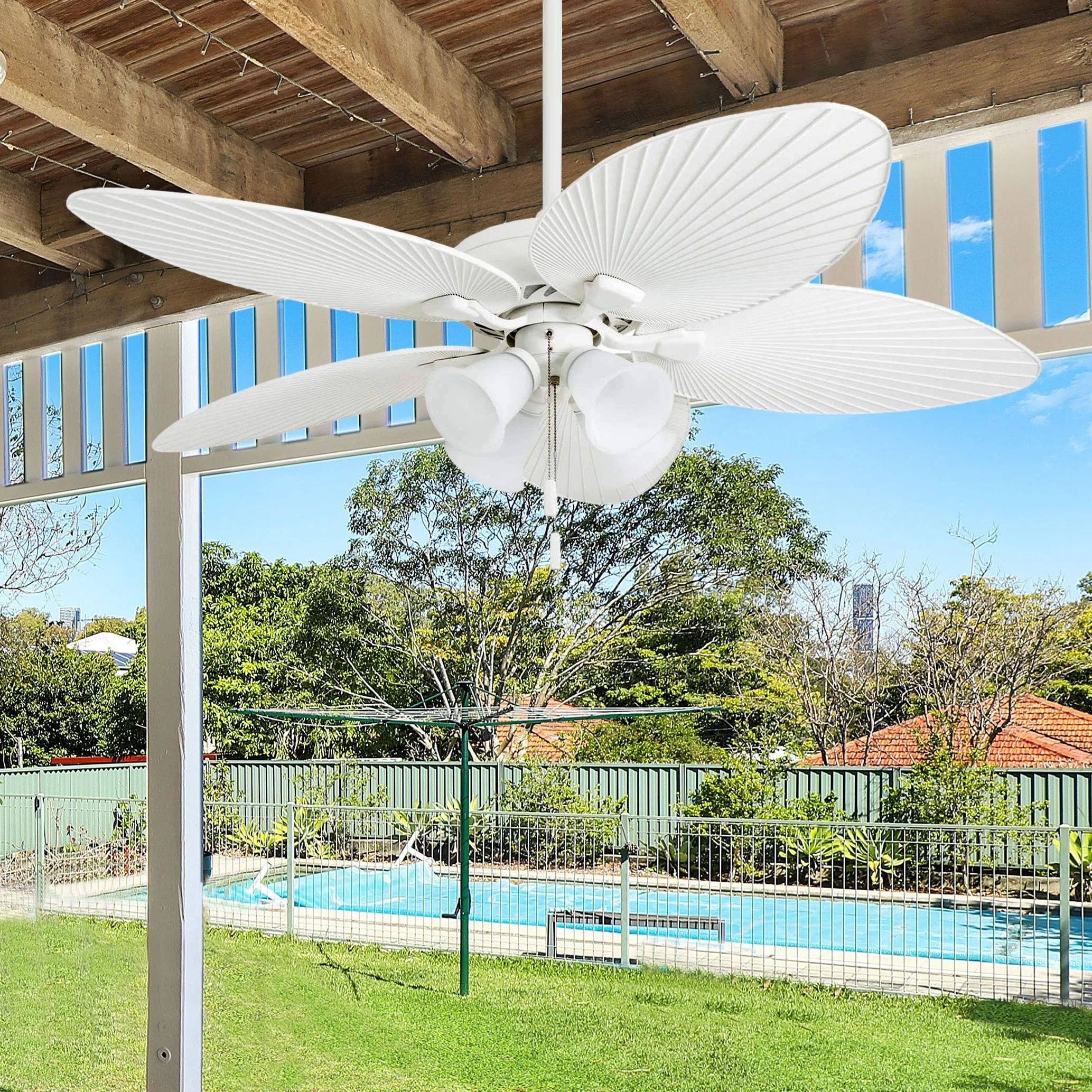 52" Honeywell Palm Lake White Indoor/Outdoor Ceiling Fan with Light, Pull Chain, 5 Palm Leaf Blade