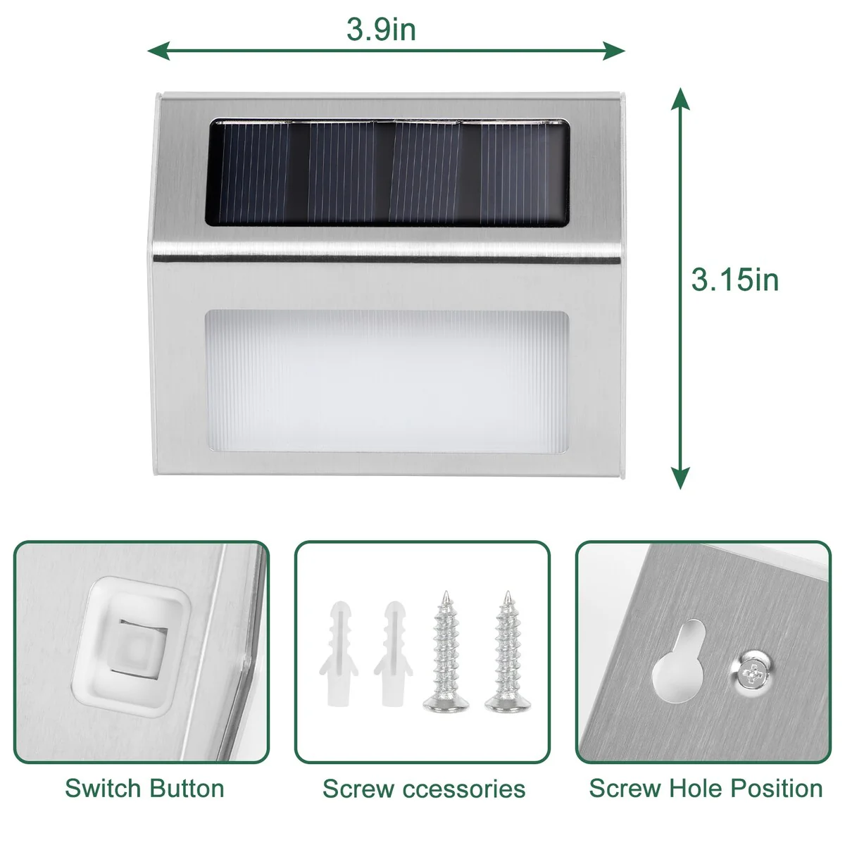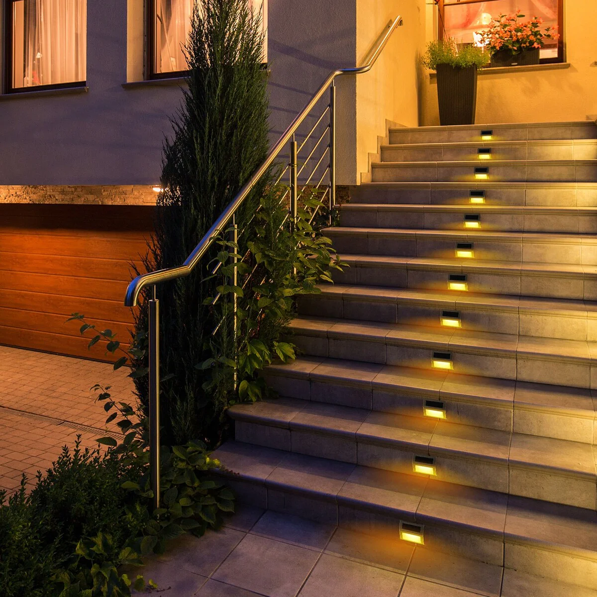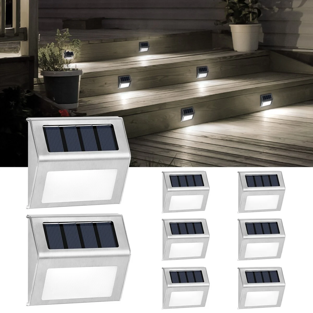 8 PCS LED Solar Outdoor Lights Stainless Steel Solar Step Light