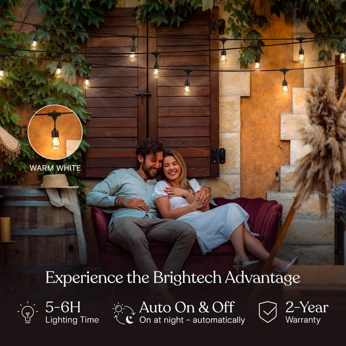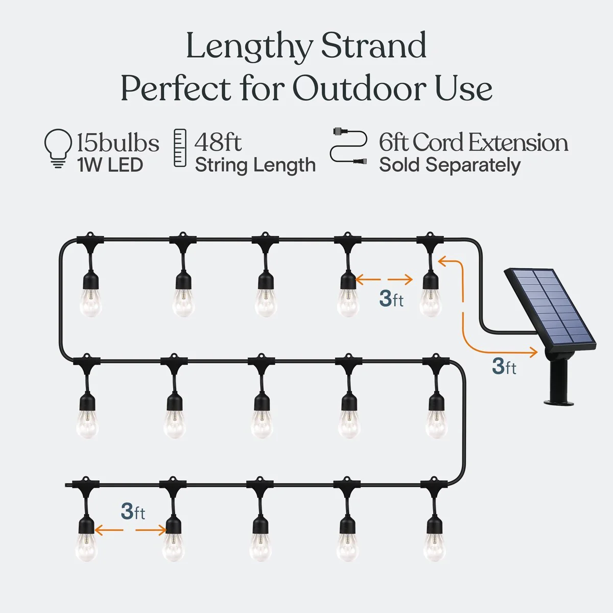 Brightech Ambience Pro 15-Light 48 ft. Outdoor Solar 1W 2700k LED S14 Hanging Edison Bulb String-Light