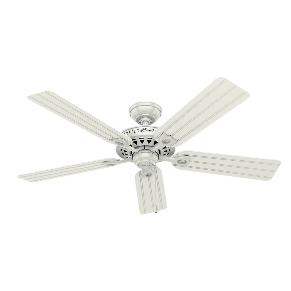 Hunter 52" Beachcomber Outdoor Ceiling Fan with LED Light Kit and Pull Chain, DAMP RATED - White - Coastal