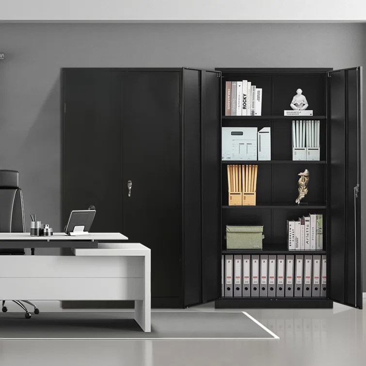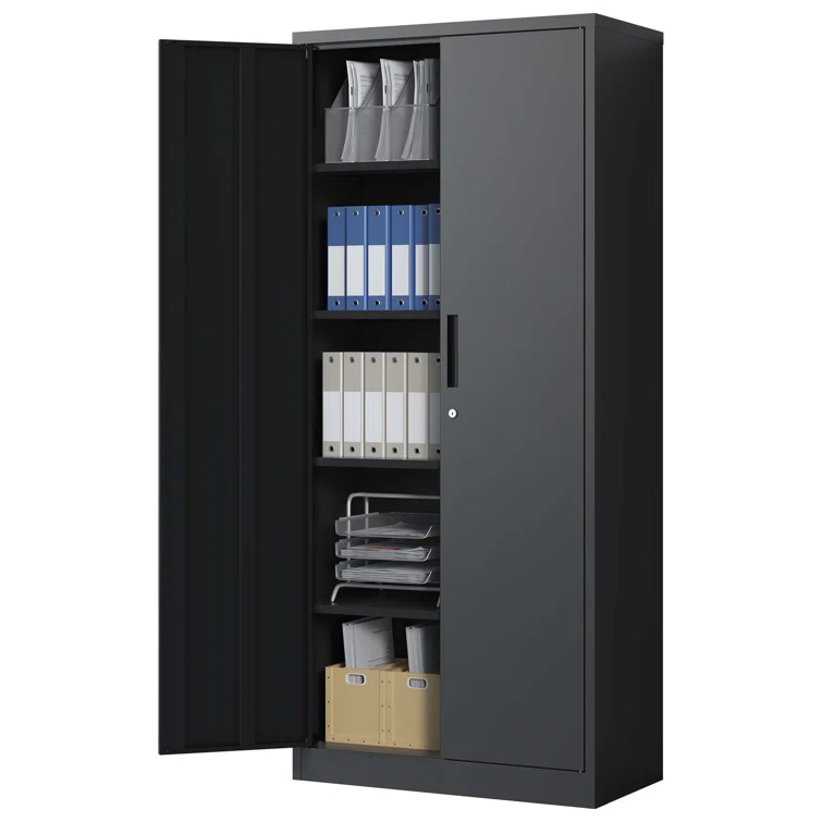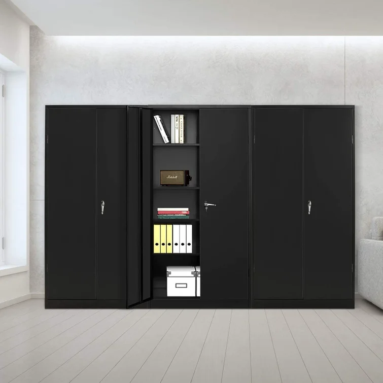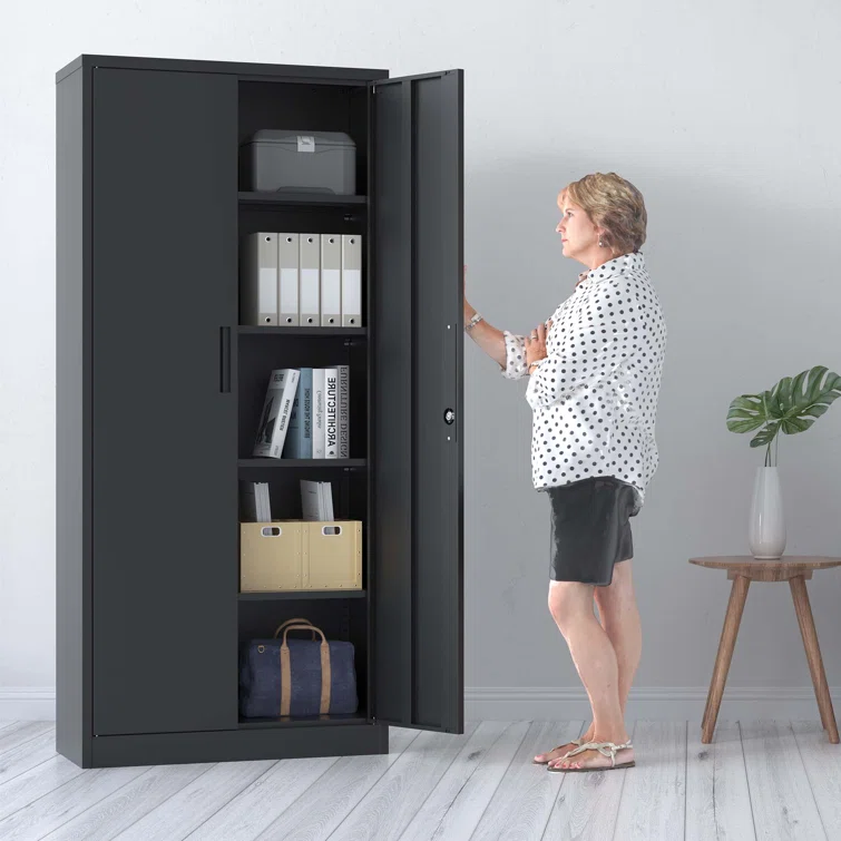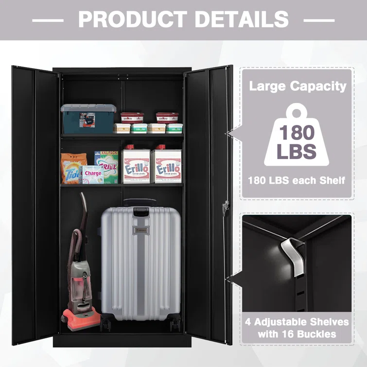 72" Metal Garage Storage Cabinets with Lock,Black Storage Cabinet with Doors and Shelves