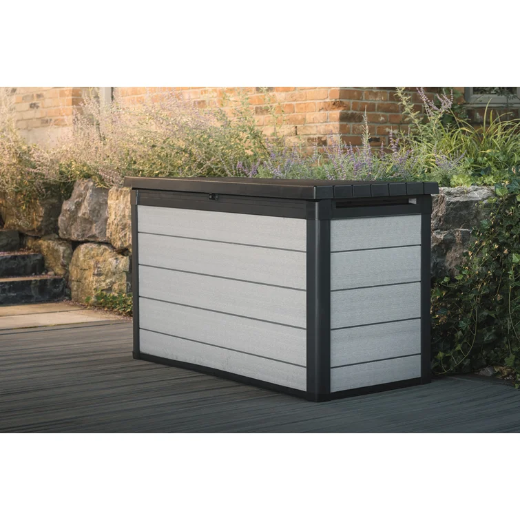 Suncast 130 Gallon Water Resistant Deck Box in Dove Gray