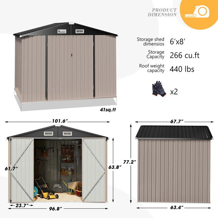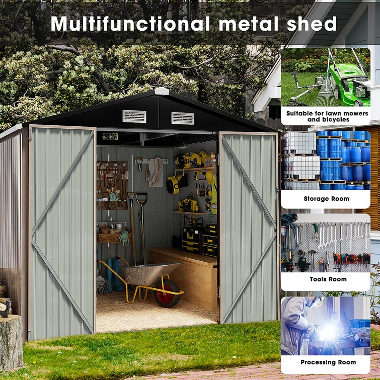 8 ft. W x 6 ft. D Galvanized Steel Storage Shed