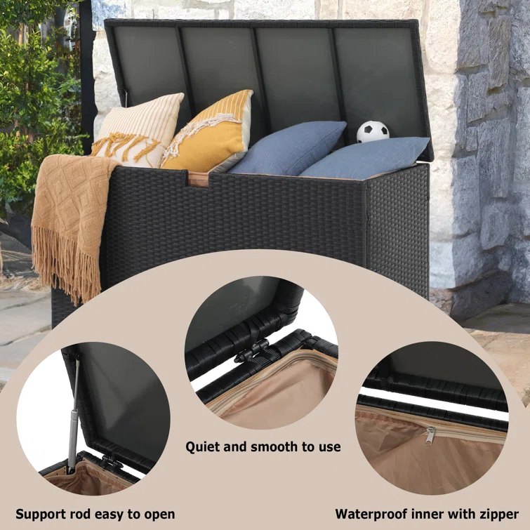 Quartey 120 Gallons Resin Deck Box with Soft Close Mechanism