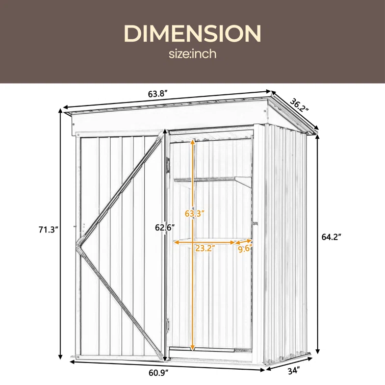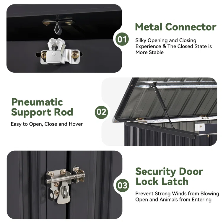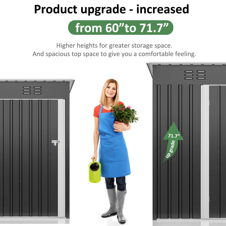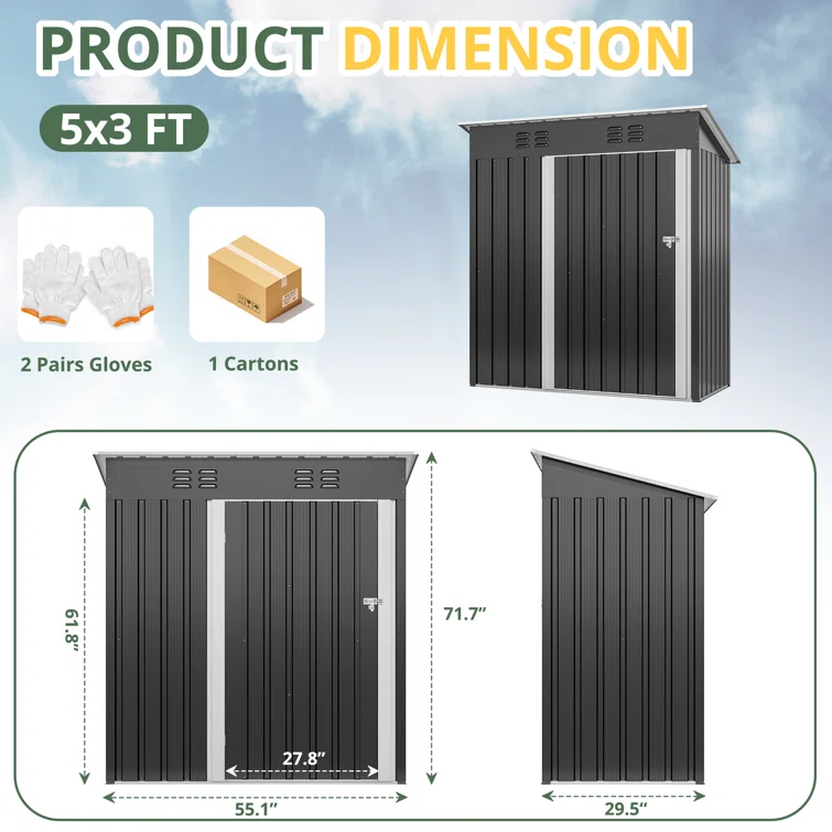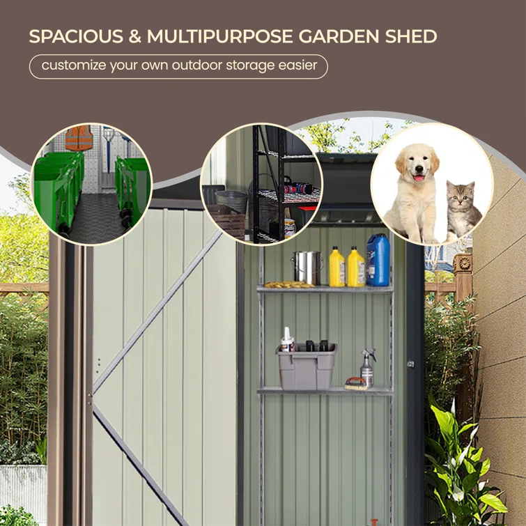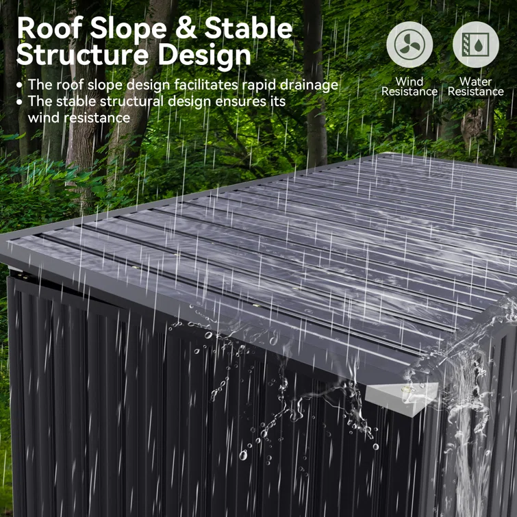 Storage Shed 3.3 X 5.6 Ft Metal Trash Shed Waterproof Outside Storage