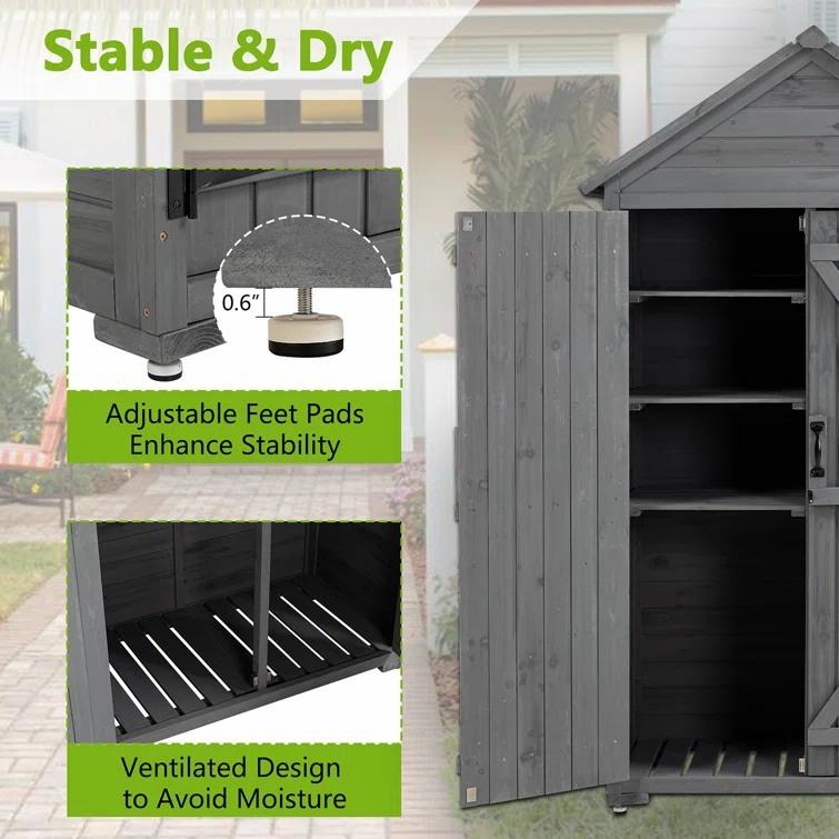 5 ft. W x 2 ft. D Solid Wood Vertical Tool Shed