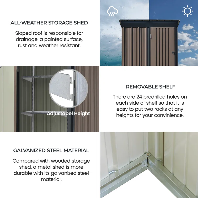 5 ft. W x 3 ft. D Metal Horizontal Garage Shed