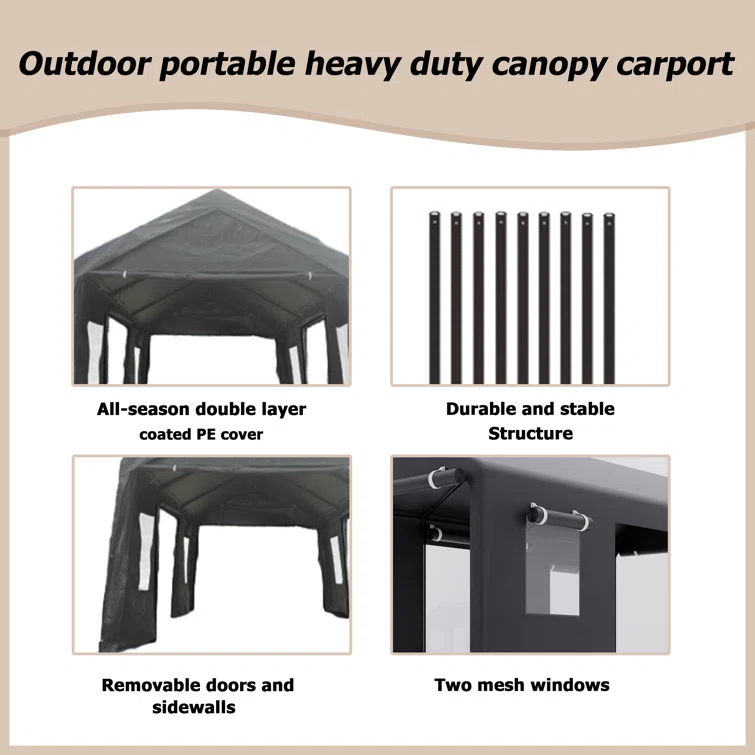 10 ft. W x 20 ft. D Polypropylene and Iron Garage Shed