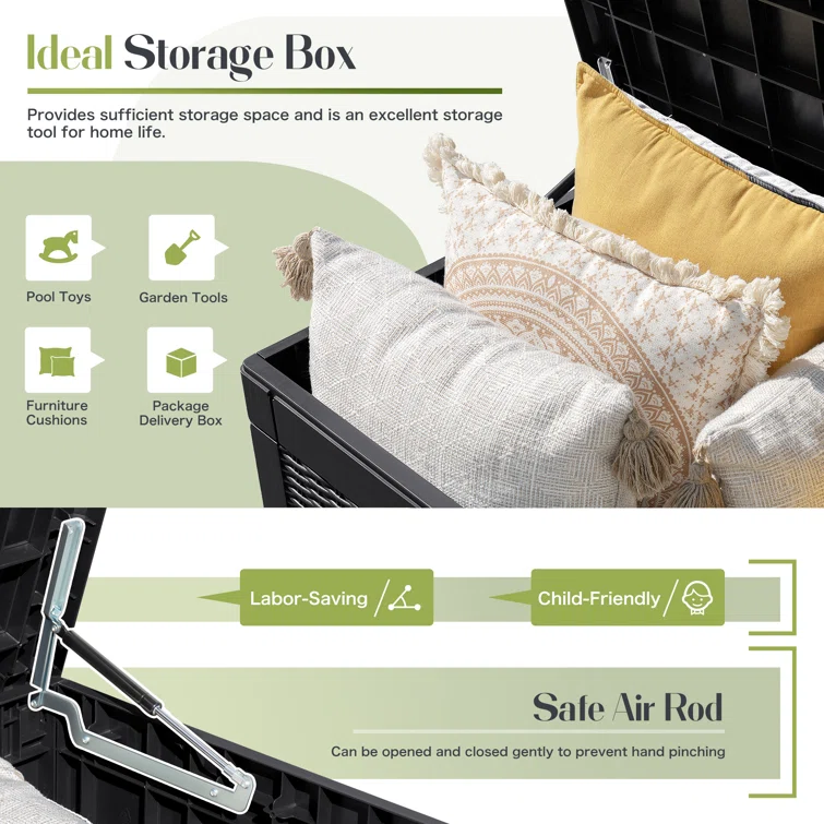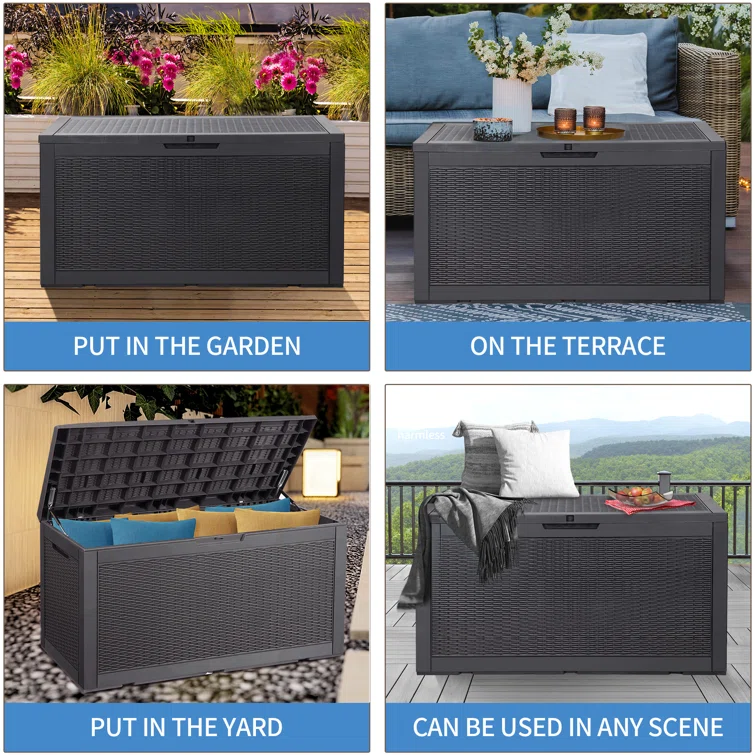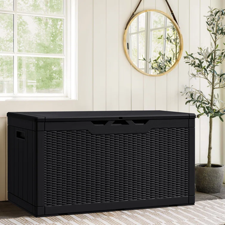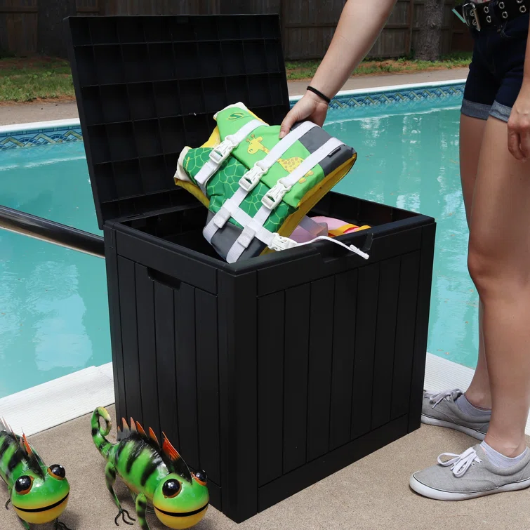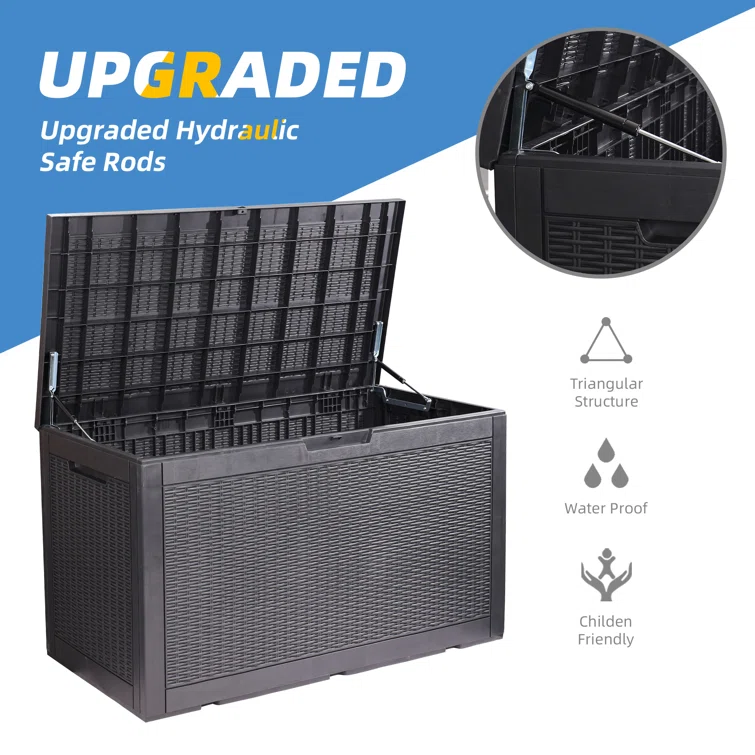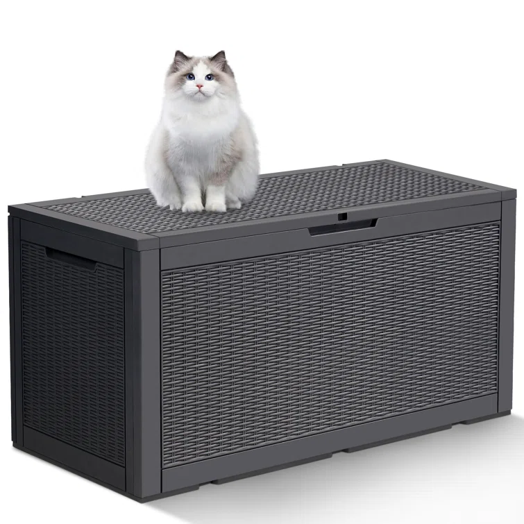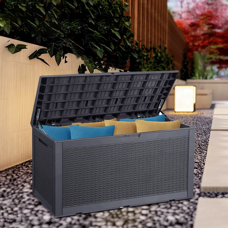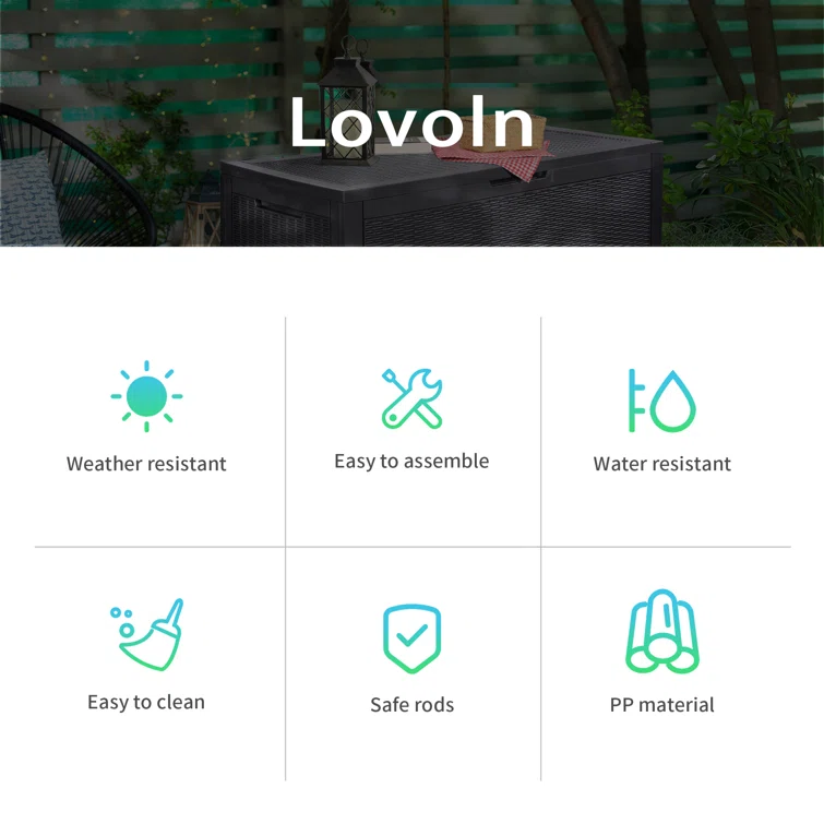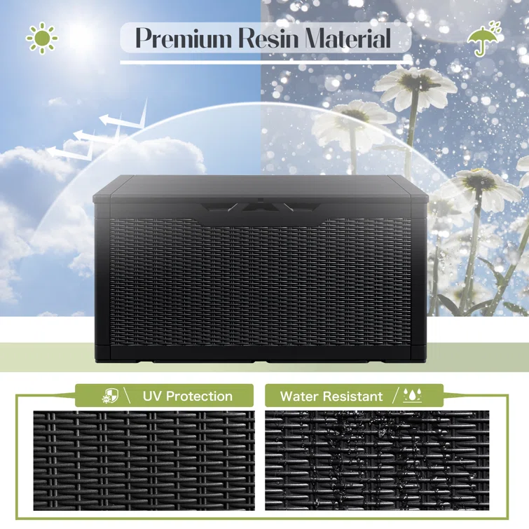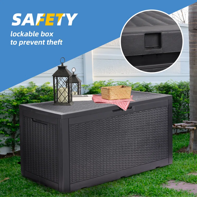 Lovoin 100 Gallons Gallon Water Resistant Resin Lockable Deck Box Without Cushion
