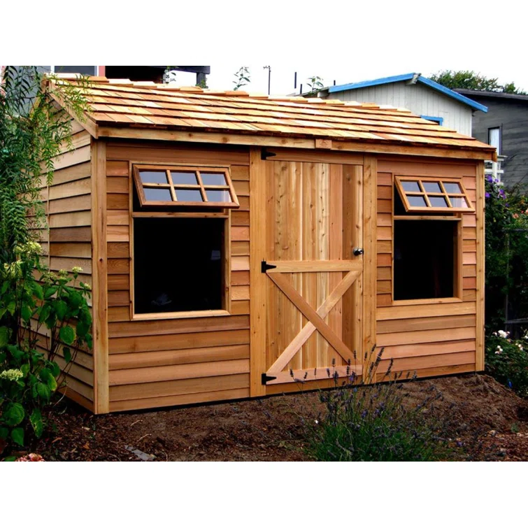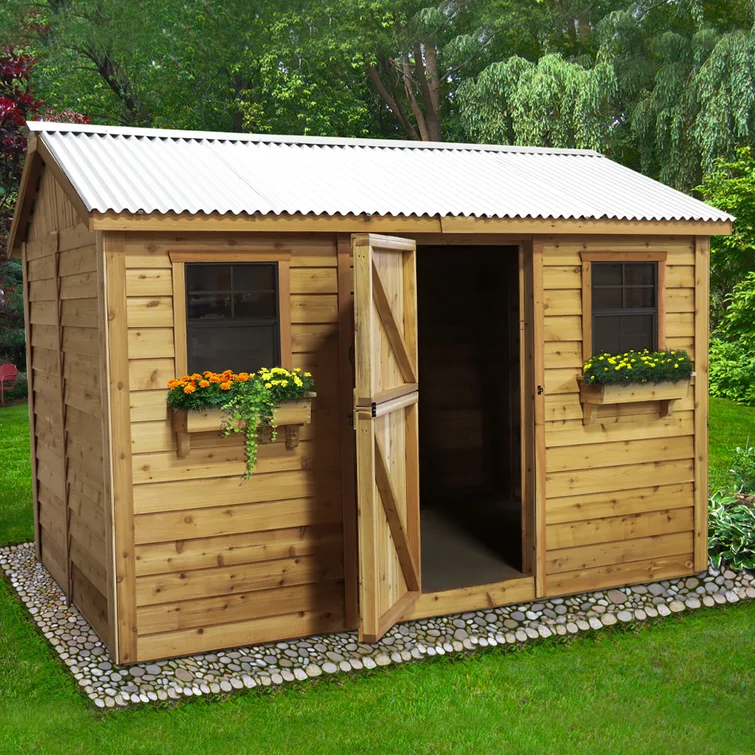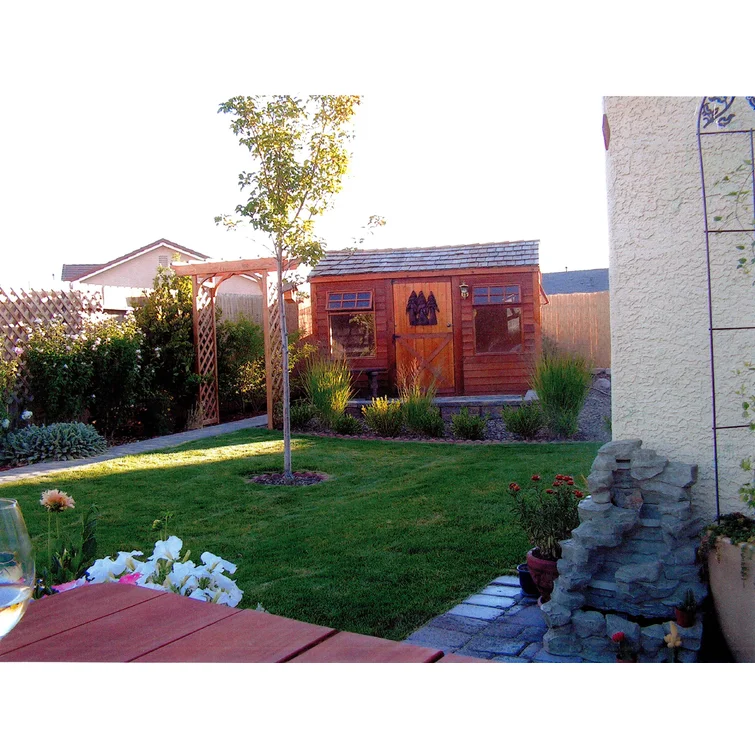12 ft. W x 8 ft. D Cabana Cedar Wood Garden Shed with Metal Roof