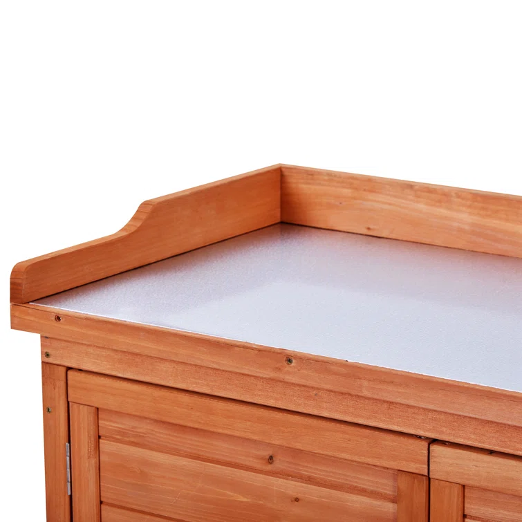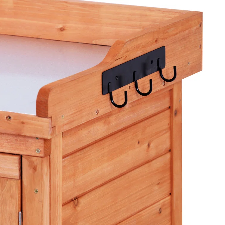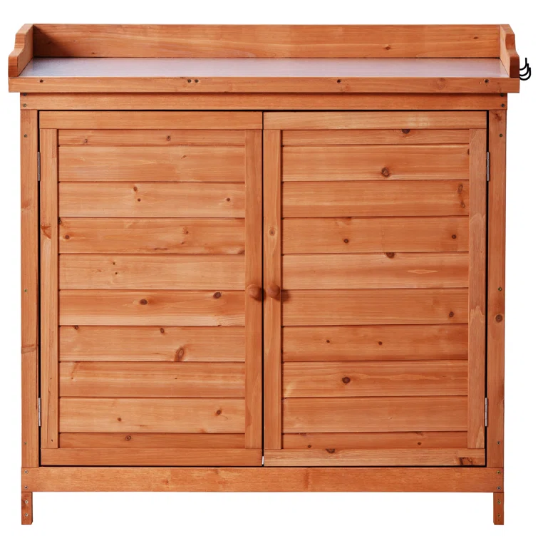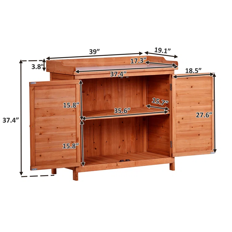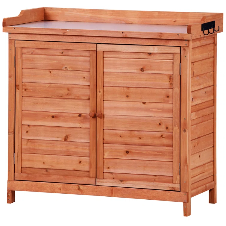 Garbage Shed, 39" Potting Bench Table, Wood Cabinet with 2-Tier Shelves and Side Hook