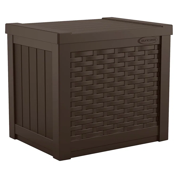 Suncast Wicker 22 Gallon Water Resistant Resin Deck Box in Java