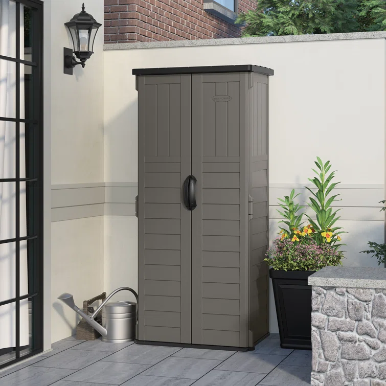 Suncast Outdoor Vanilla 32.25 in. W x 24.75 in. D x 72 in. H Resin Vertical Tool Shed