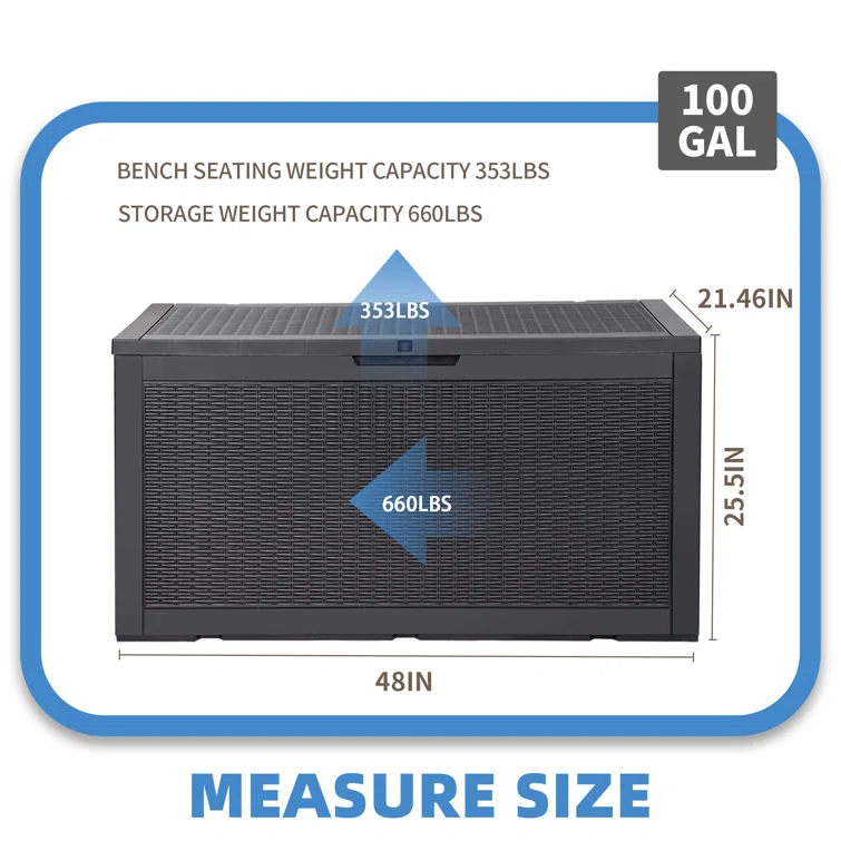 GUNJI 48'' W 100 Gallons Water Resistant Resin Lockable Deck Box