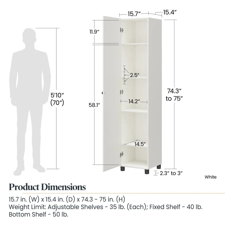 Bromell Single Storage Cabinet ( 74'' H x 15'' W x 15'' D)