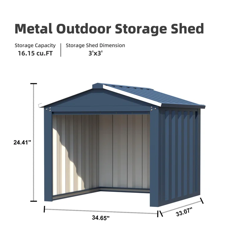 3 ft. W x 3 ft. D Metal Storage Shed