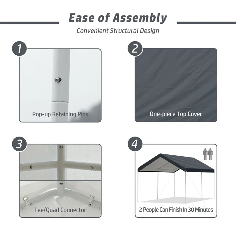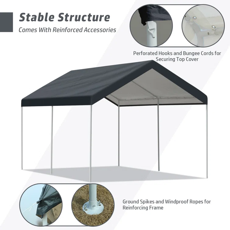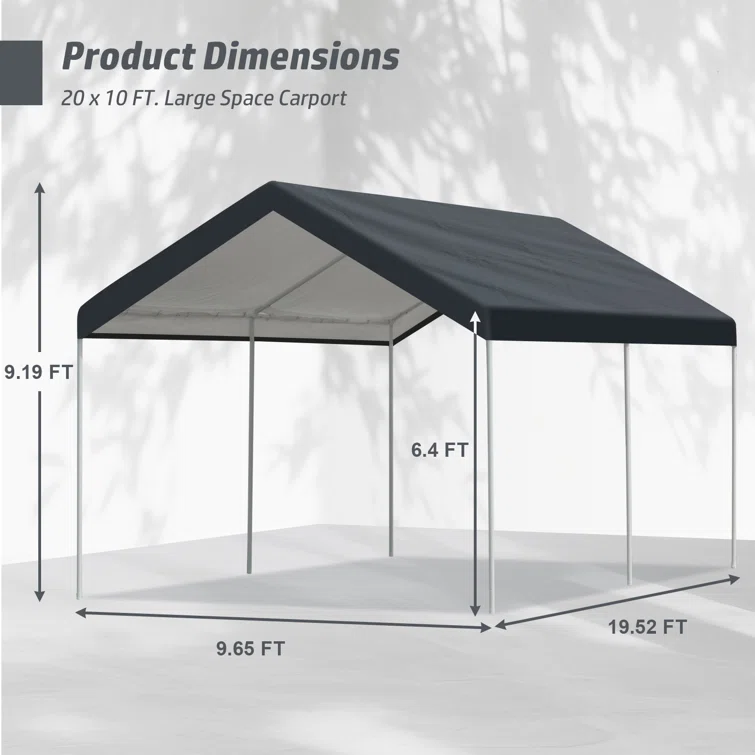 10 ft. W x 20 ft. D Metal Portable Garage Shed
