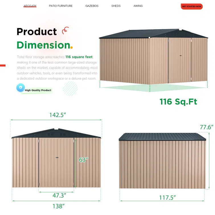 10 ft. W x 12 ft. D Metal Storage Shed