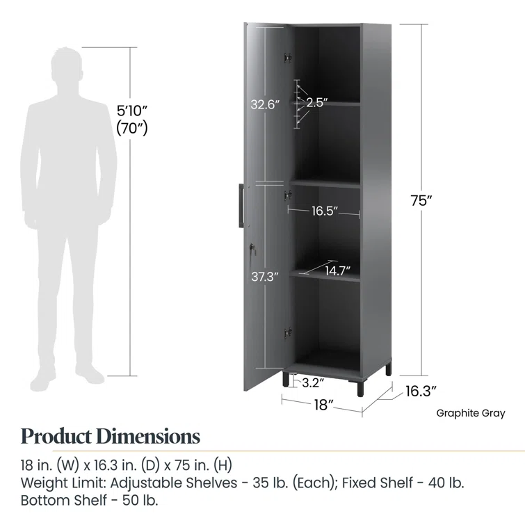 Reichard 18" W x 16.34" D x 74.92" H Tall Garage Cabinet