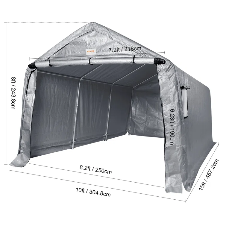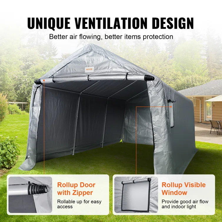 Heavy Duty 10 ft. W x 15 ft. D Polyethylene Portable Garage Shed