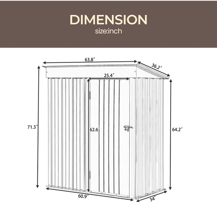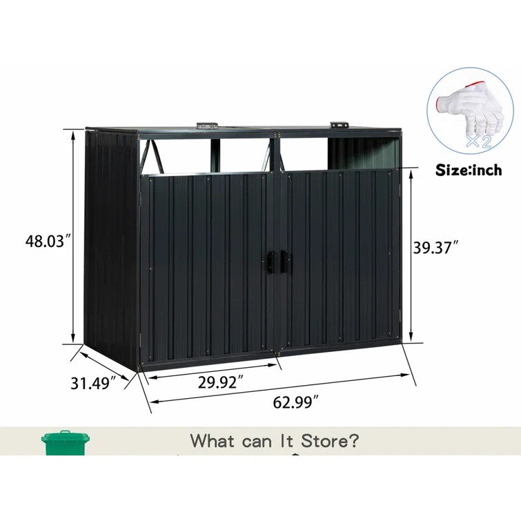 5 ft. W x 3 ft. D Metal Vertical Garbage Shed
