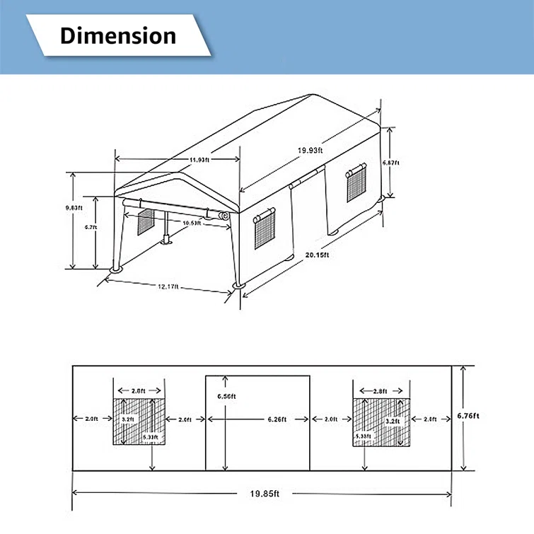 12x20 ft Heavy Duty Metal Carport w/Roll-up Vent Windows&Sidewalls Canopy Garage Boat Shelter