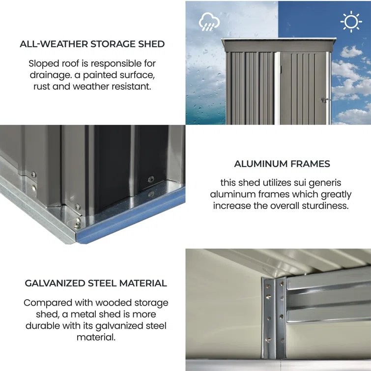 5 ft. W x 3 ft. D Aluminum Lean-to Storage Shed