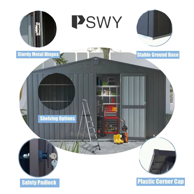 8 ft. W x 10 ft. D Metal Corner Tool Shed