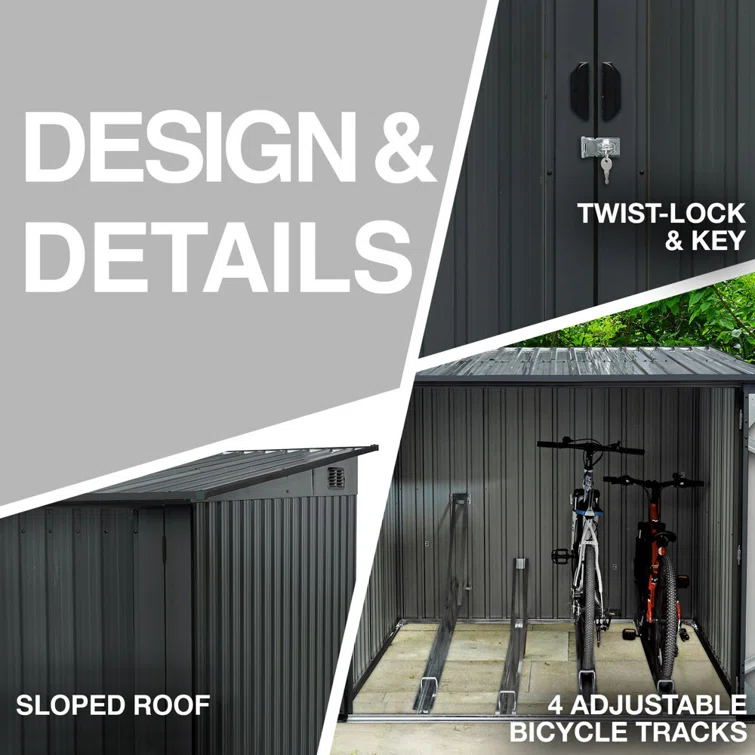 6.4 ft. W x 3 ft. D Metal Horizontal Bike Shed