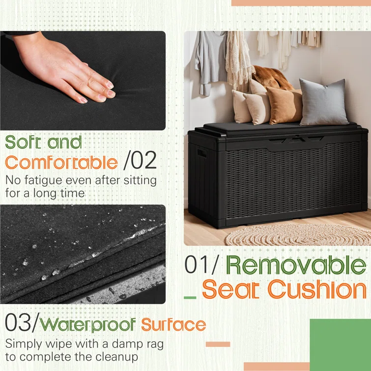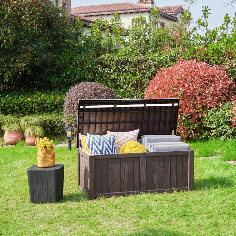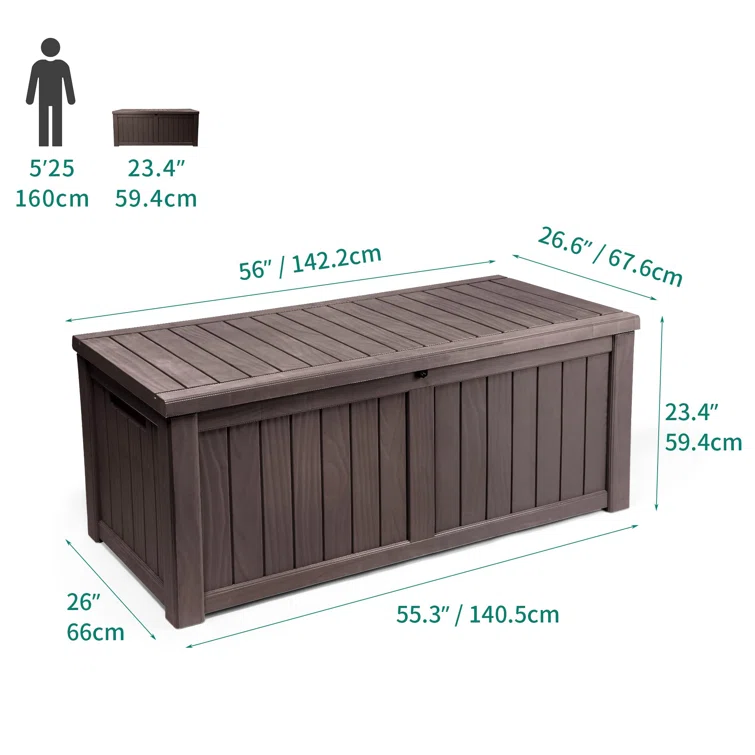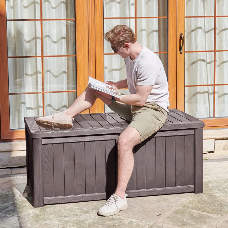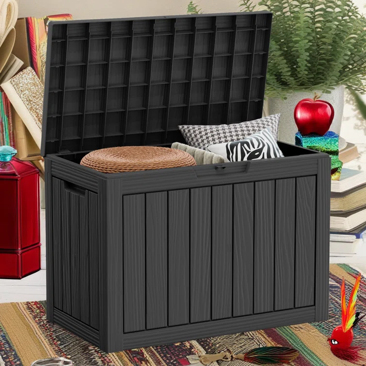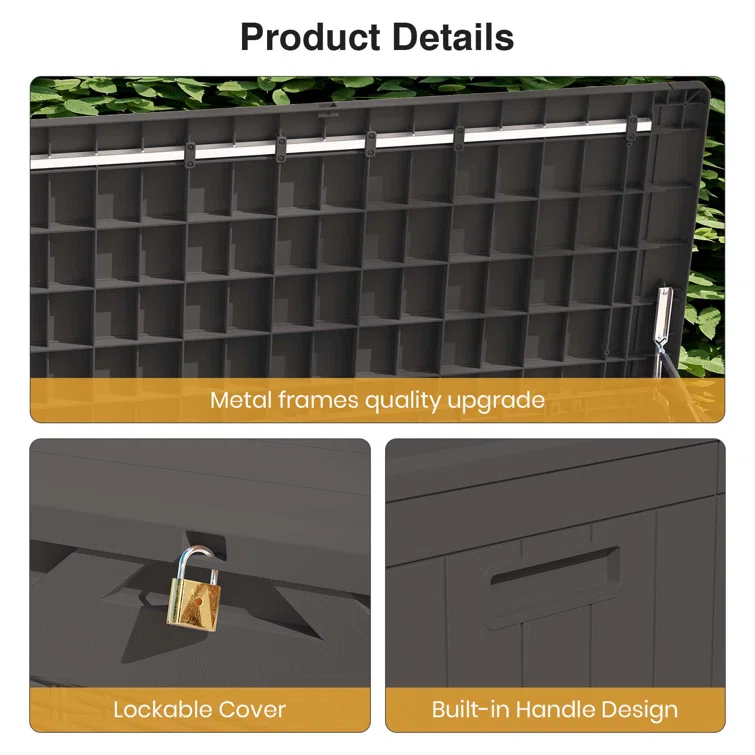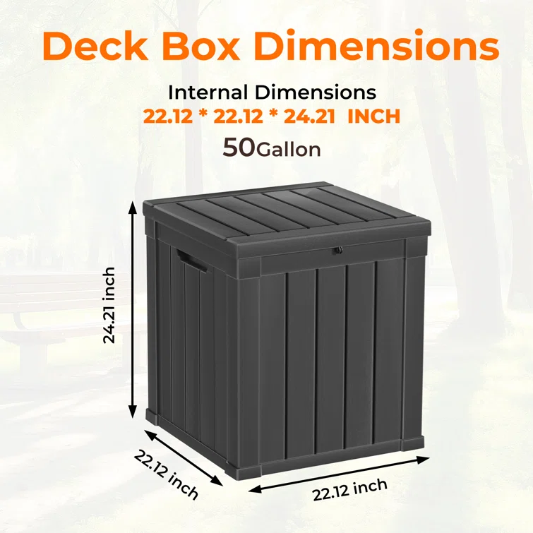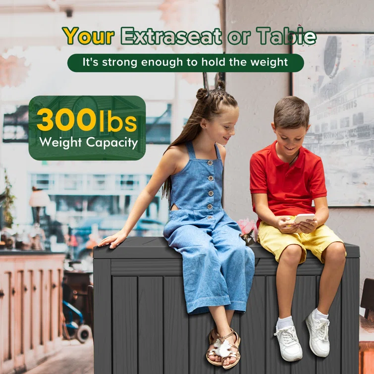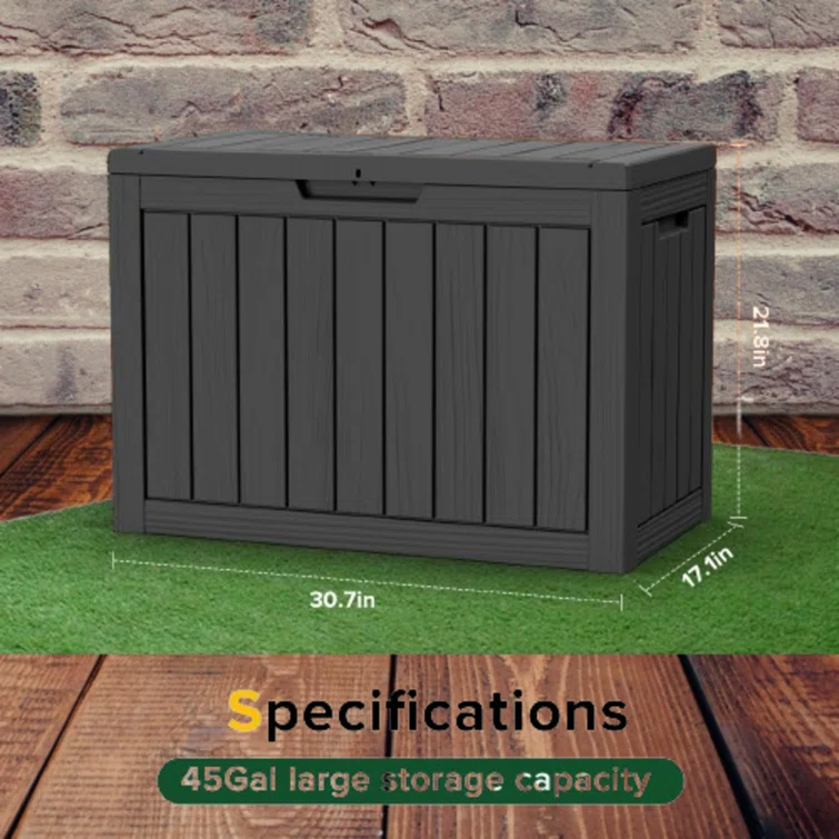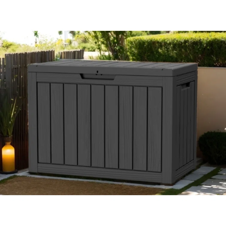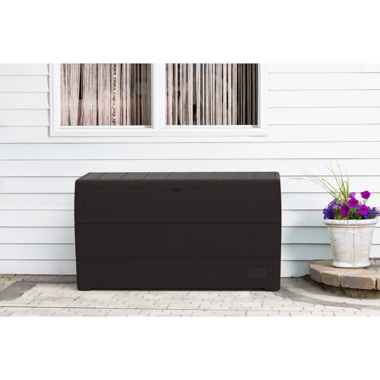 Lovoin 100 Gallons Gallon Water Resistant Resin Lockable Deck Box Without Cushion
