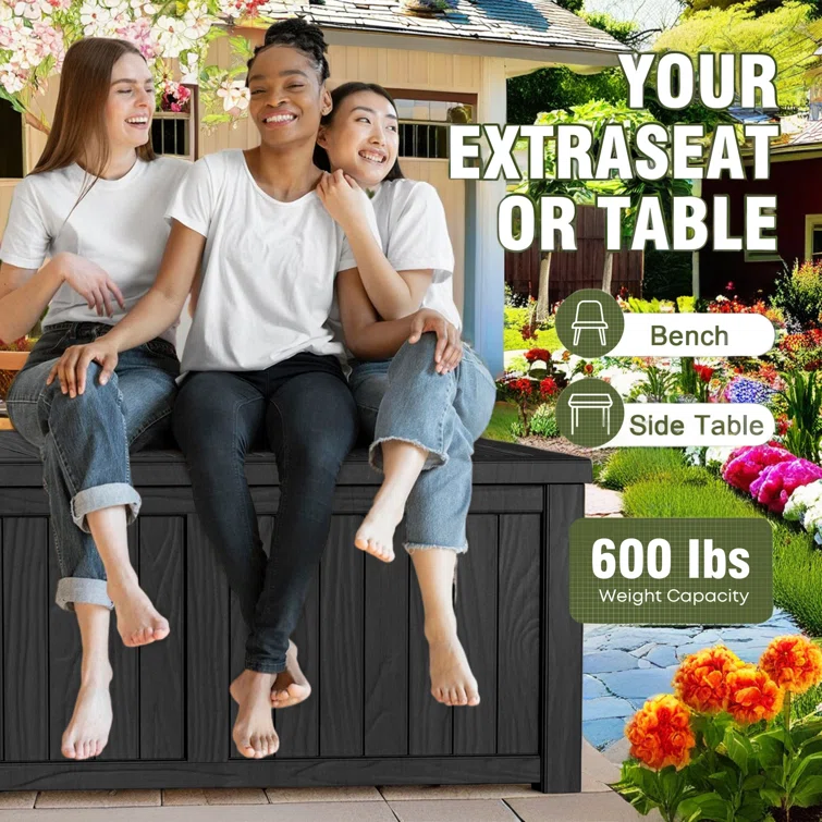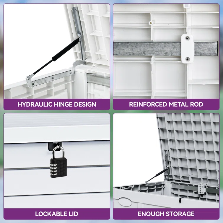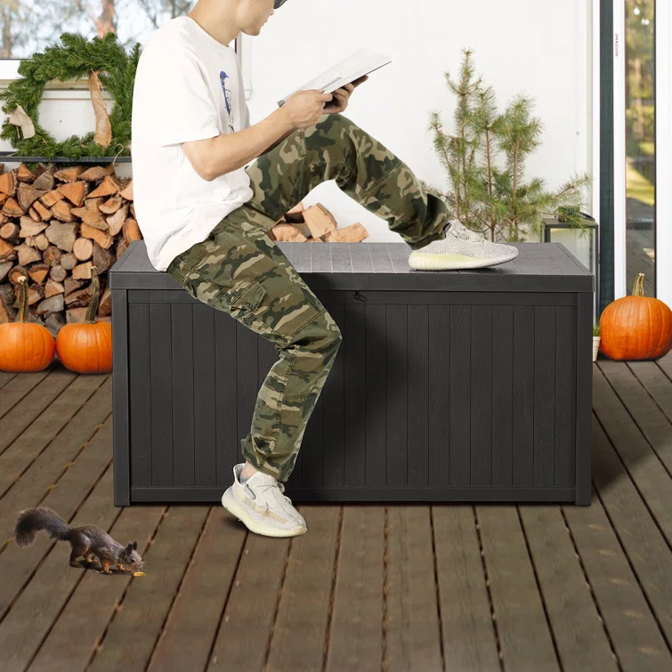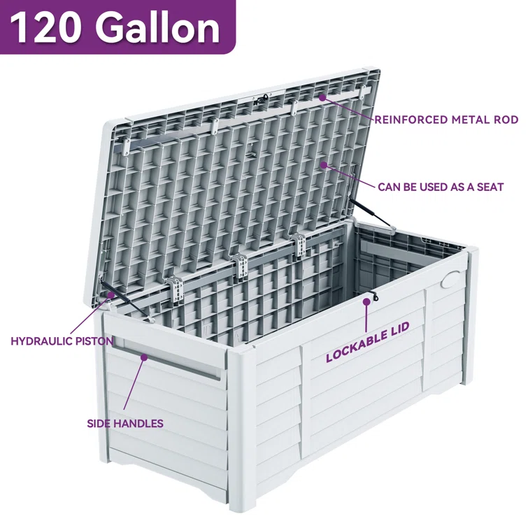 Quartey 120 Gallons Resin Deck Box with Soft Close Mechanism