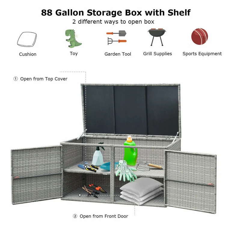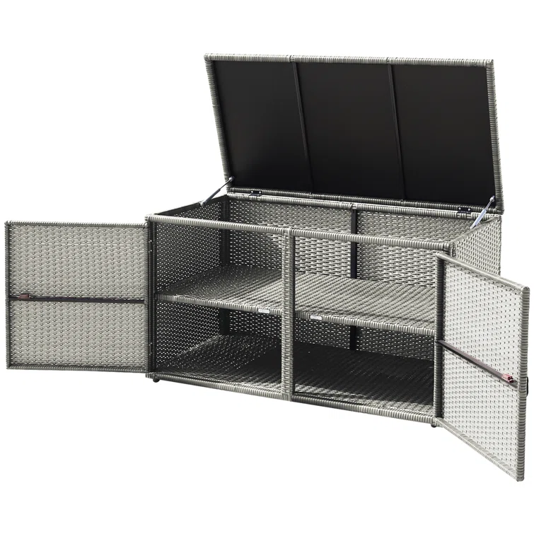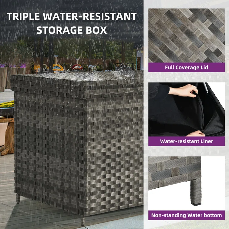 FORCLOVER 45'' W 88 Gallons Wicker Deck Box in Gray