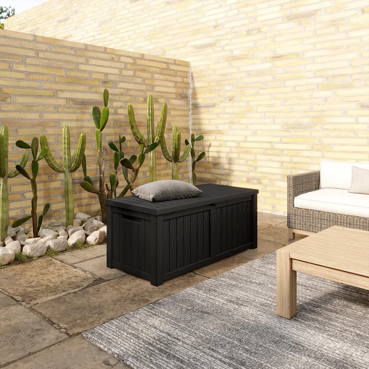 FOREST HOME 120 Gallon Water Resistant Resin Lockable Deck Box in Black